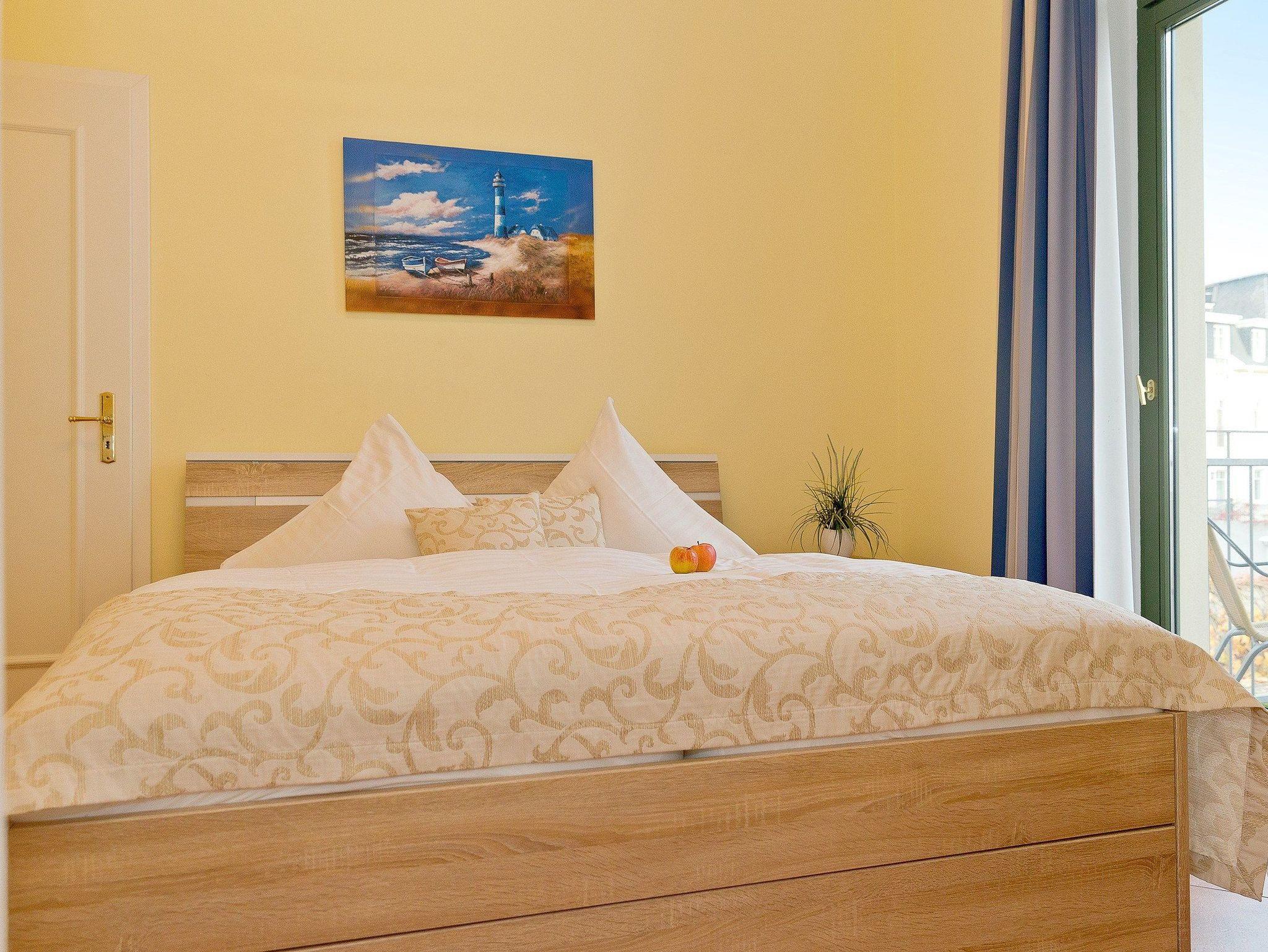 Damit Sie Ihre wohlverdiente Urlaubszeit bereits am Anreisetag in vollen Zügen genießen können, haben wir das Bett für Sie und das für Ihre lieben Mitreisenden bereits bezogen und ein Duschtuch sowie ein kleines Handtuch bereitgelegt. Beginnen Sie den Urlaubstag mit frischer Ostseeluft bei einem Kaffee auf dem angrenzenden und sonnigen Balkon. Das großzügige Badezimmer ist mit Dusche, Waschtisch, Handtuchheizkörper und einem Haarfön ausgestattet.