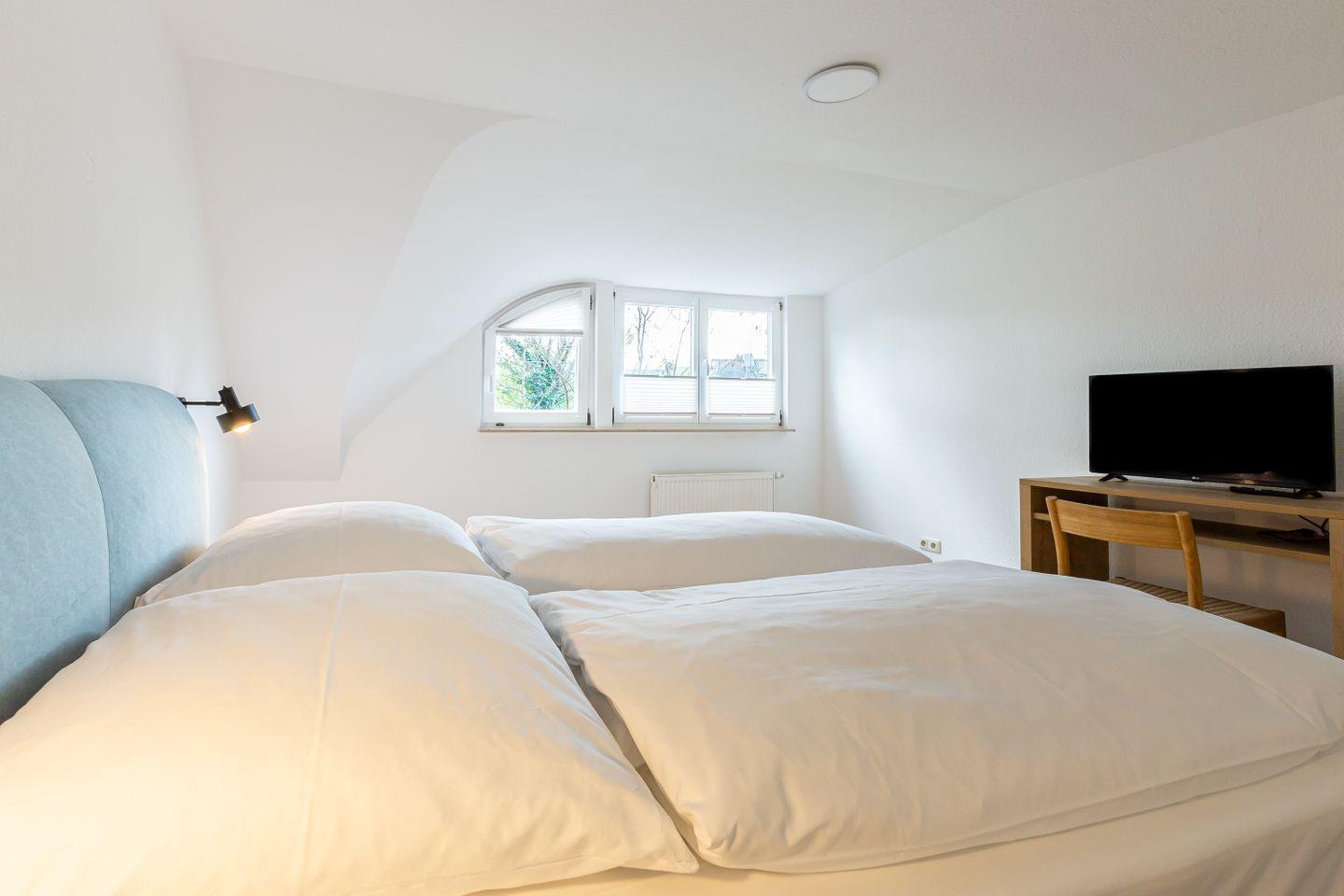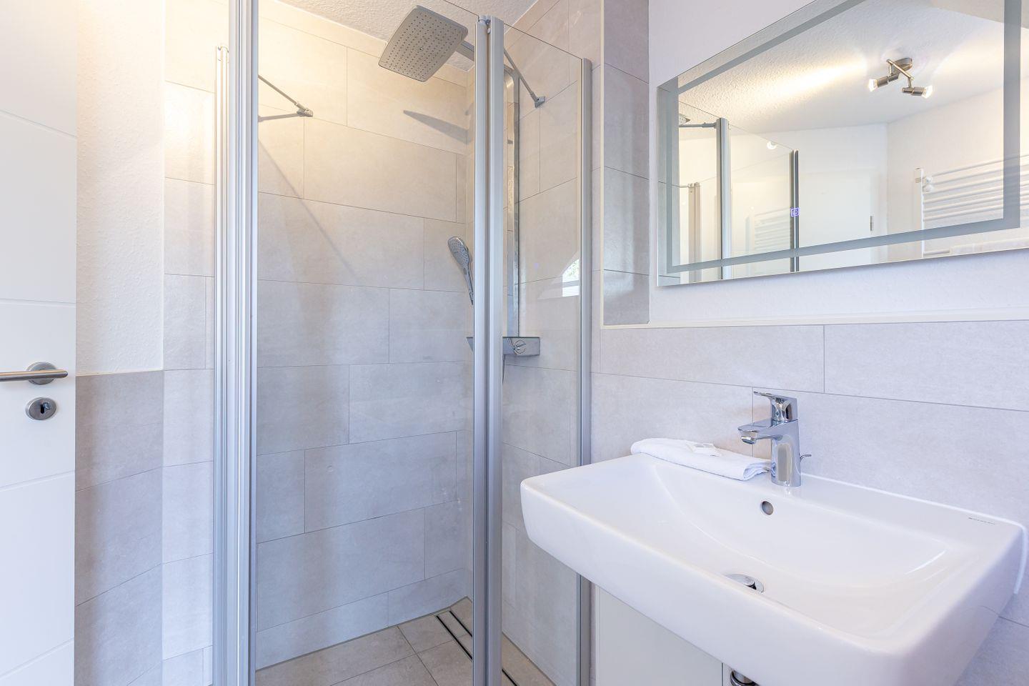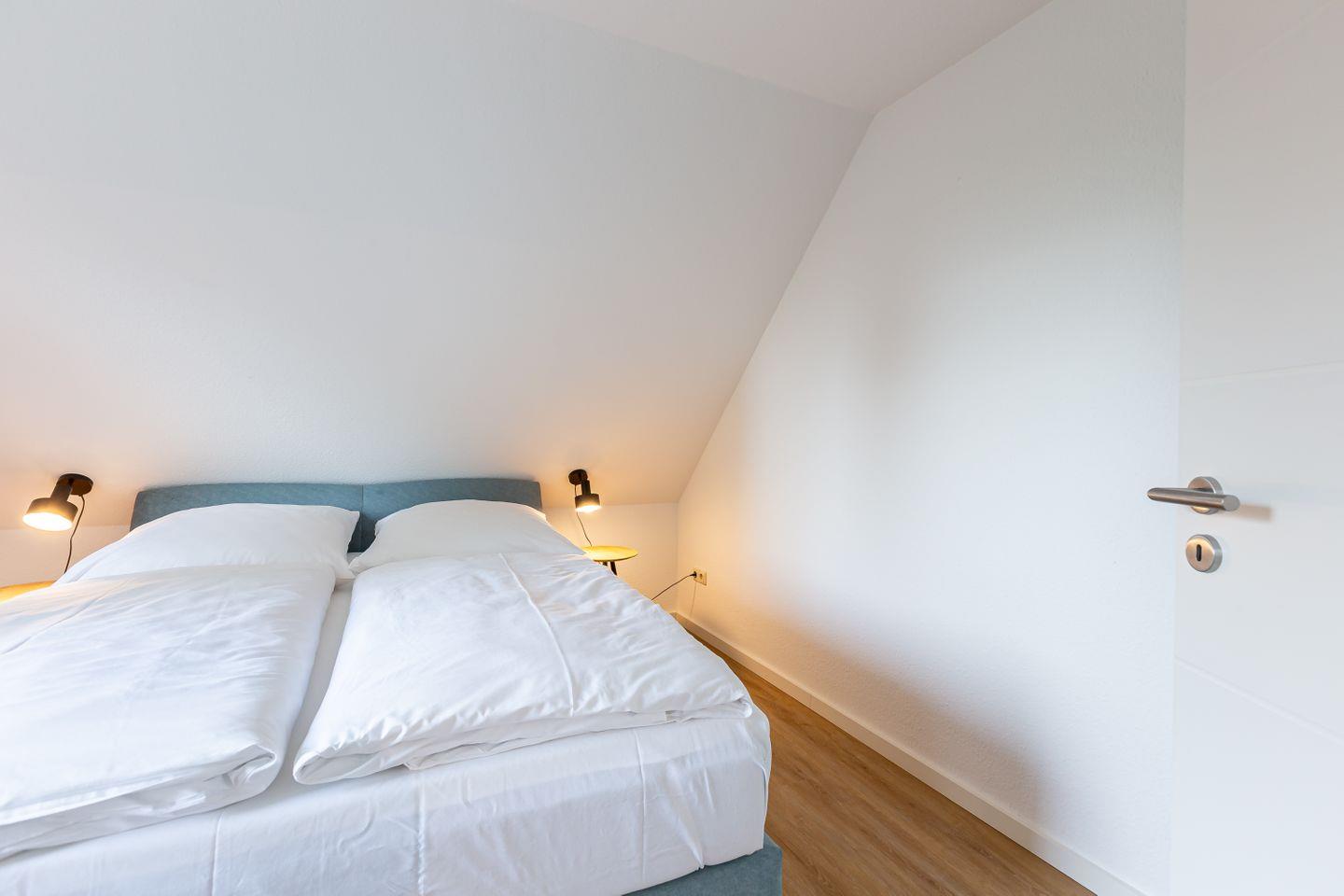 Zwei Schlafzimmer mit hochwertigem Boxspringbett laden zu erholsamen Nächten ein und bieten ausreichend Platz für Paare oder Familien. Das moderne Bad überzeugt mit großzügiger Dusche und einer angenehmen Atmosphäre. Vom sonnigen Balkon aus genießt du den Blick in die ruhige Umgebung – perfekt, um den Tag entspannt ausklingen zu lassen.