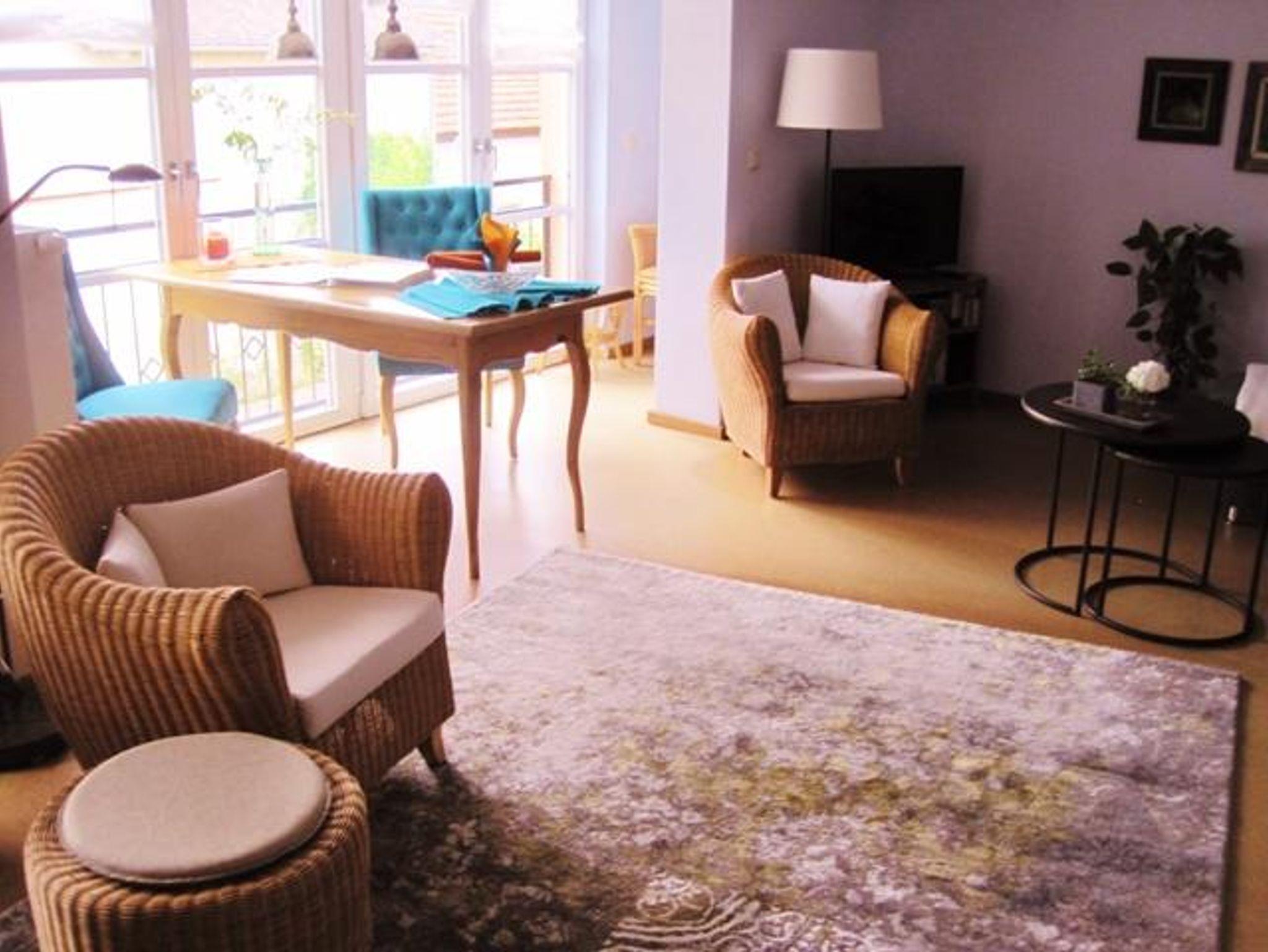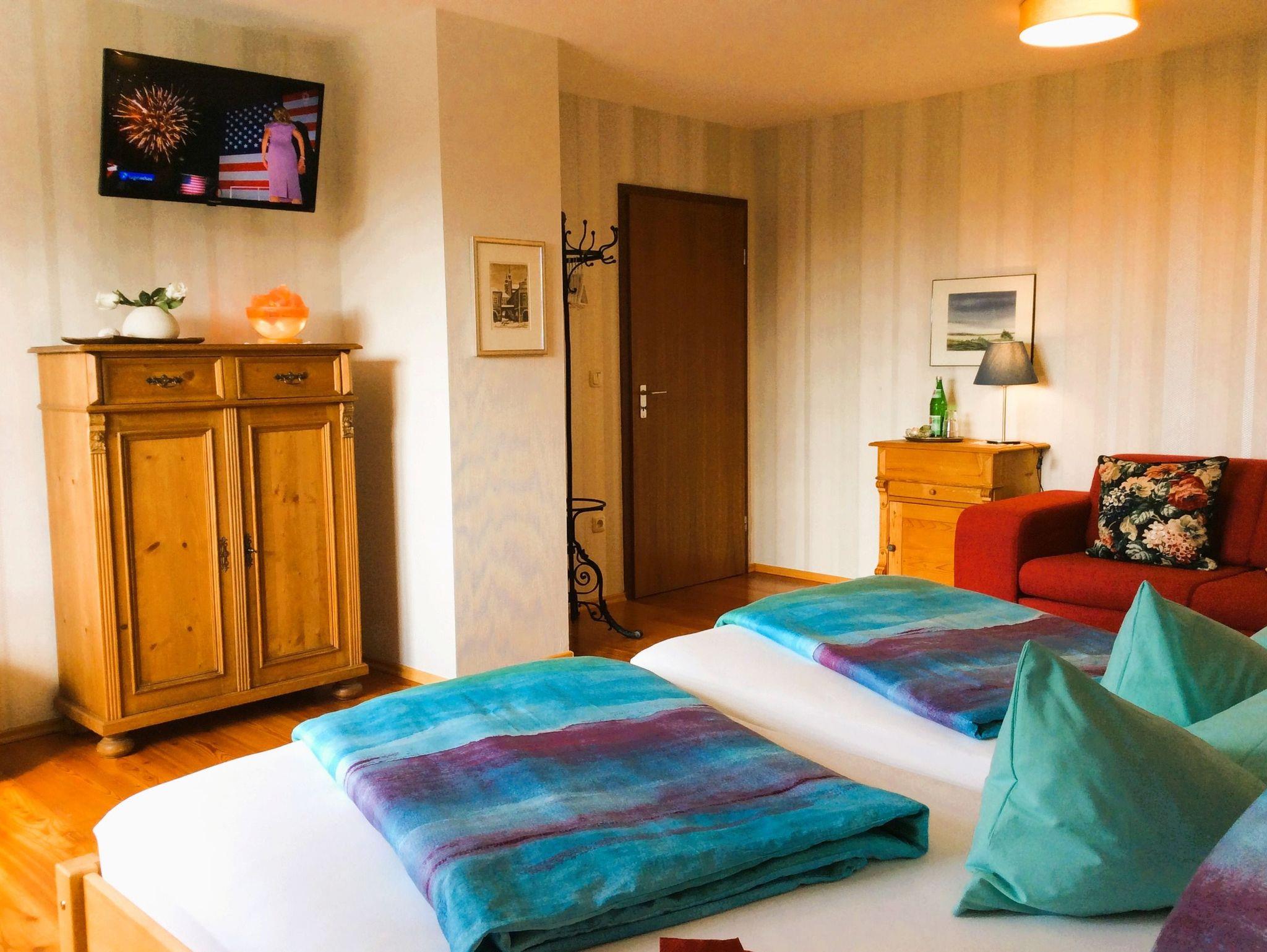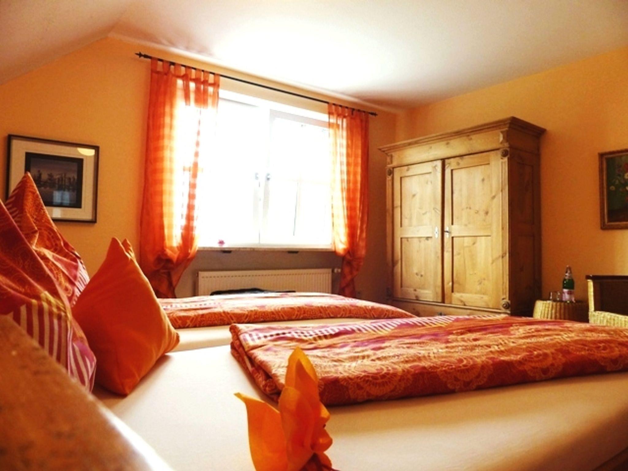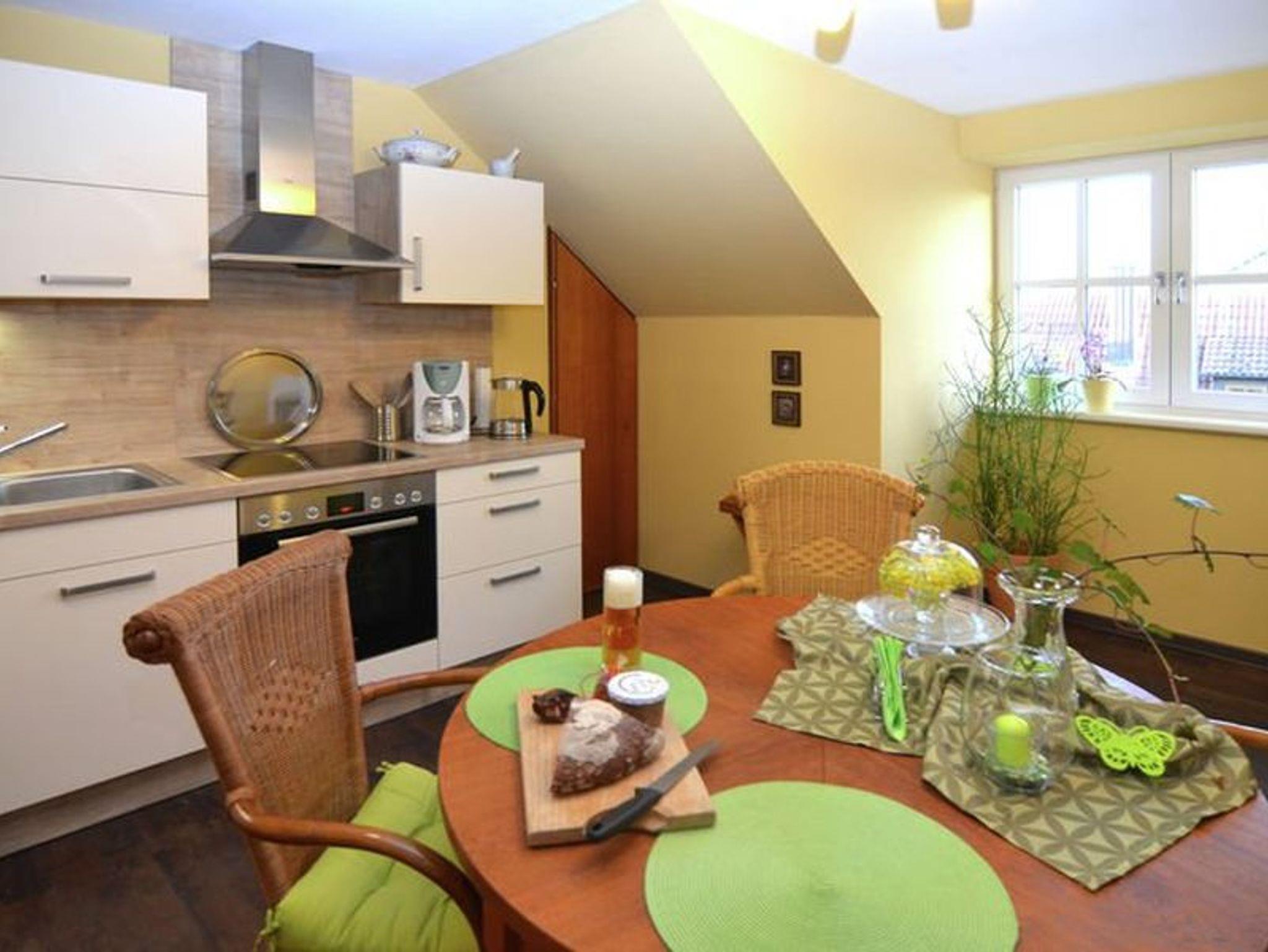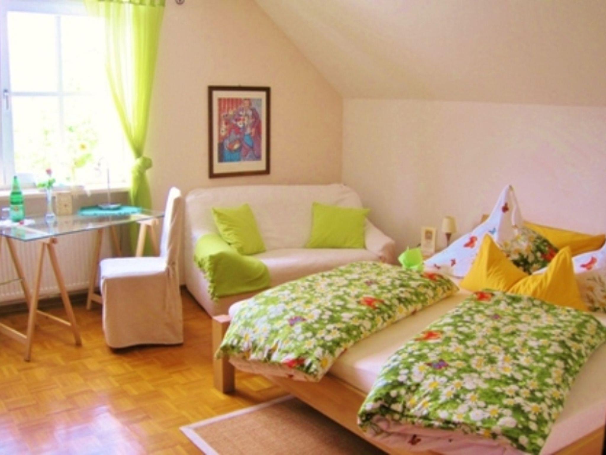 115qm große Wohnung im Obergeschoß des Hauses, großzügiger Gästegarten , 2 Schlafräume, 1 Wohnraum mit Schlafsofa, 1 Wohnküche, Balkon, Allergiker geeignet, W-lan, Telefon, 2 Fahrräder, Brötchen-Frühstücksservice auf Wunsch.