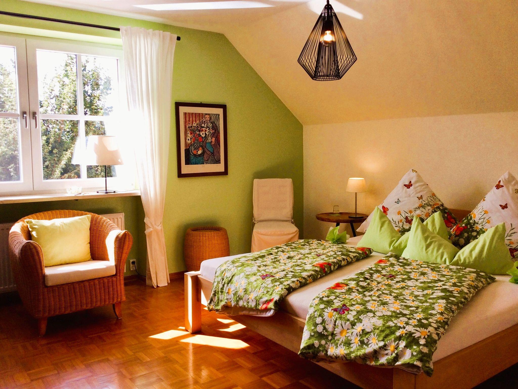 Stilvolle, nachhaltig ausgestattete und Allergiker-geeignete Auszeit für Natur- und Kulturliebhaber zwischen Bier- und Weinfranken. Inspiriert von sanften Hügeln, Ruhe und Schönheit der Region erwartet Sie hier Muße und Komfort: ein großzügiger Gästegarten, hochwertiges Interieur, ein sonniger Frühstücksbalkon und auf Wunsch ein Brötchen- und Frühstücksservice. E-Autos und E-Bikes tanken Sie mit Ökostrom und vor dem gemütlichen Kaminfeuer genießen Sie ein kühles Bier oder einen fruchtigen Wein aus der Region. Erleben Sie ländliche Idylle – Haßbergliebe - echt, erholsam, herzlich. Nichtraucherwohnung mit großzügigem Gästegarten, 115qm. Balkon, W-Lan, Telefon, 2 einfache Fahrräder, Brötchen-Frühstücksservice auf Wunsch.
