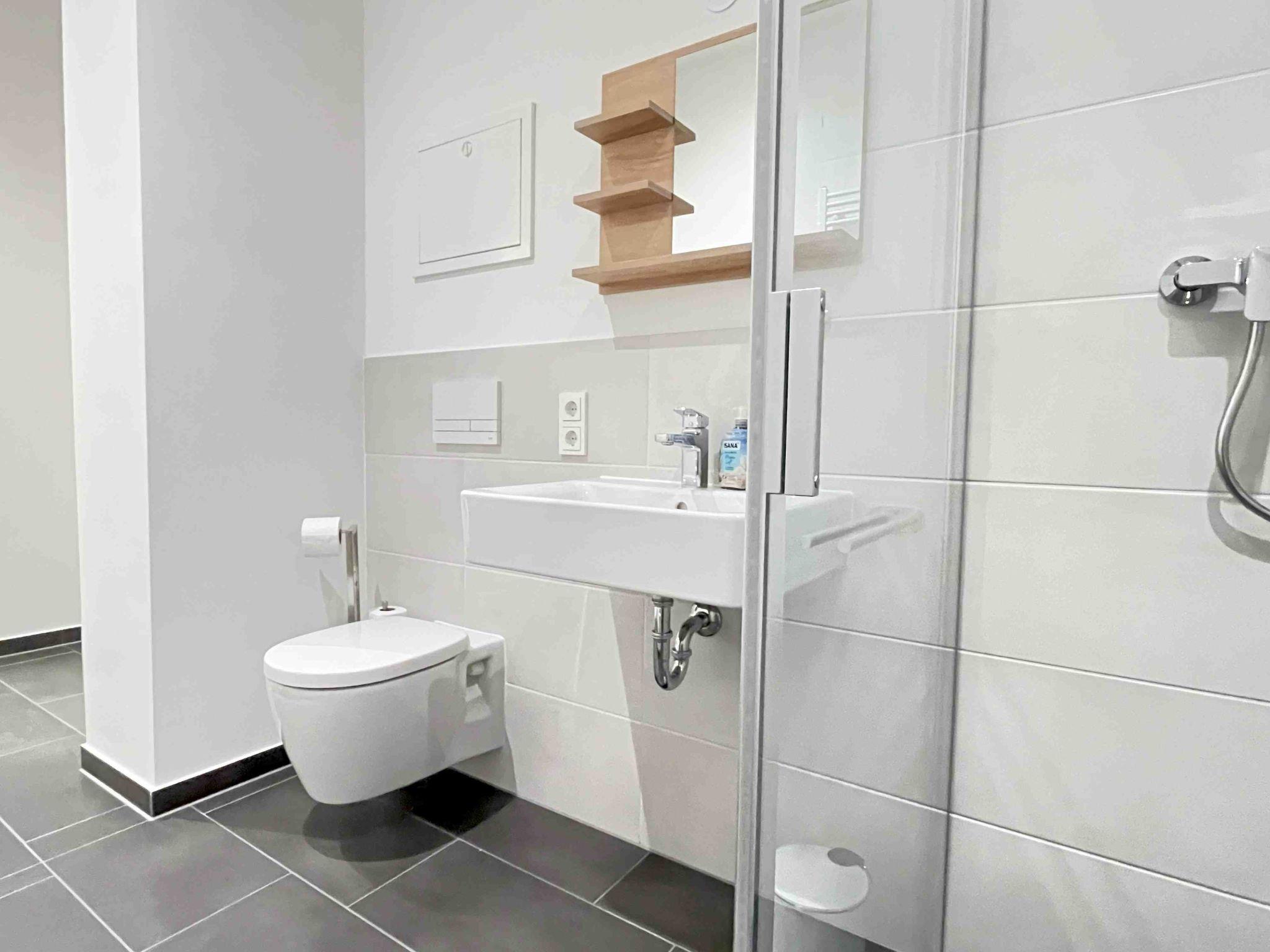 The furnished 60 m² upper floor in Amberg comprises two bedrooms with 4 single beds and is suitable for up to four people. It is possible for a fifth person to sleep on the sofa.