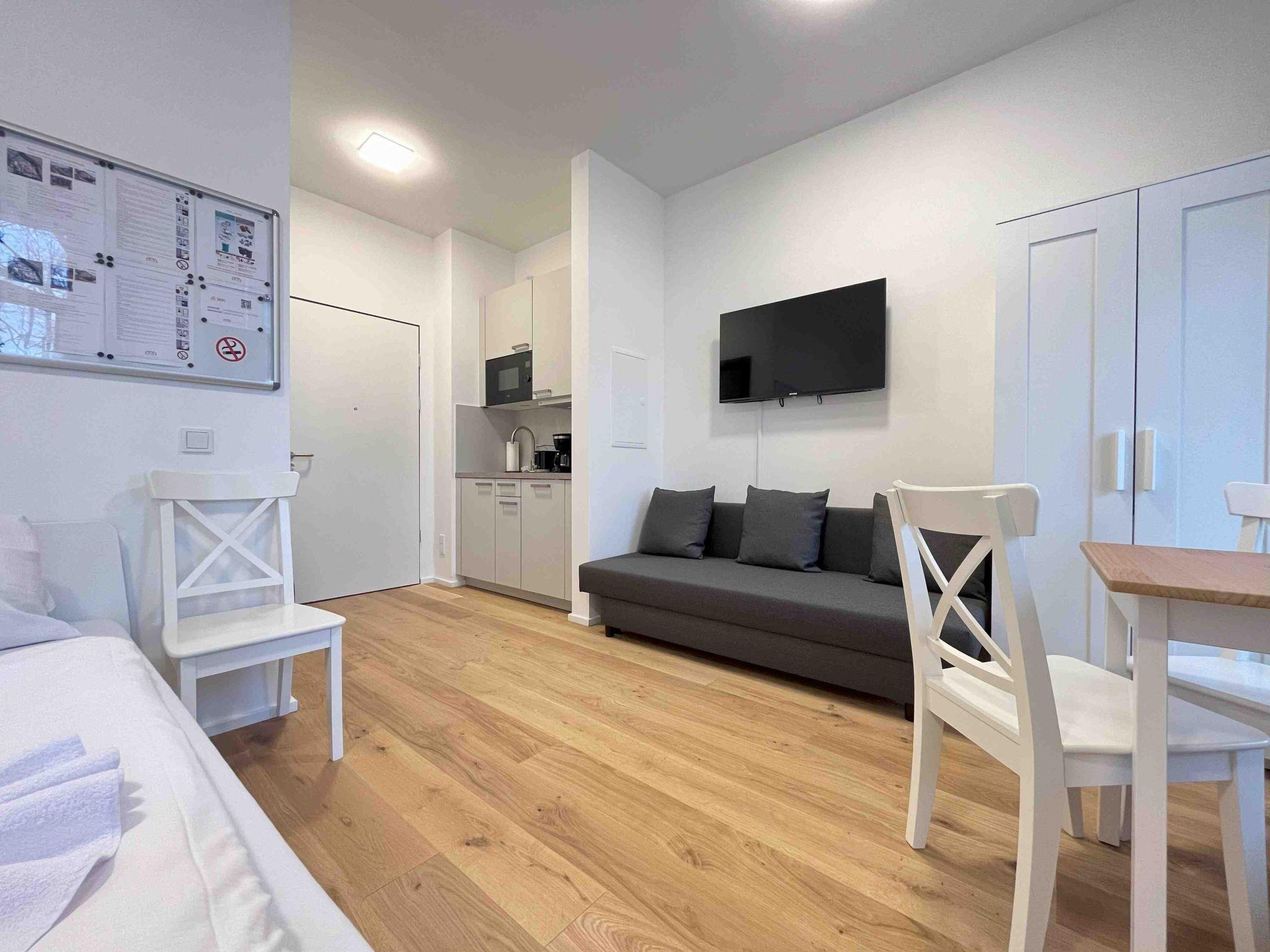 The furnished 33 m² ground floor flat in Amberg has a bedroom with 2 single beds and is suitable for up to 2 people. It is possible for a third person to sleep on the sofa.