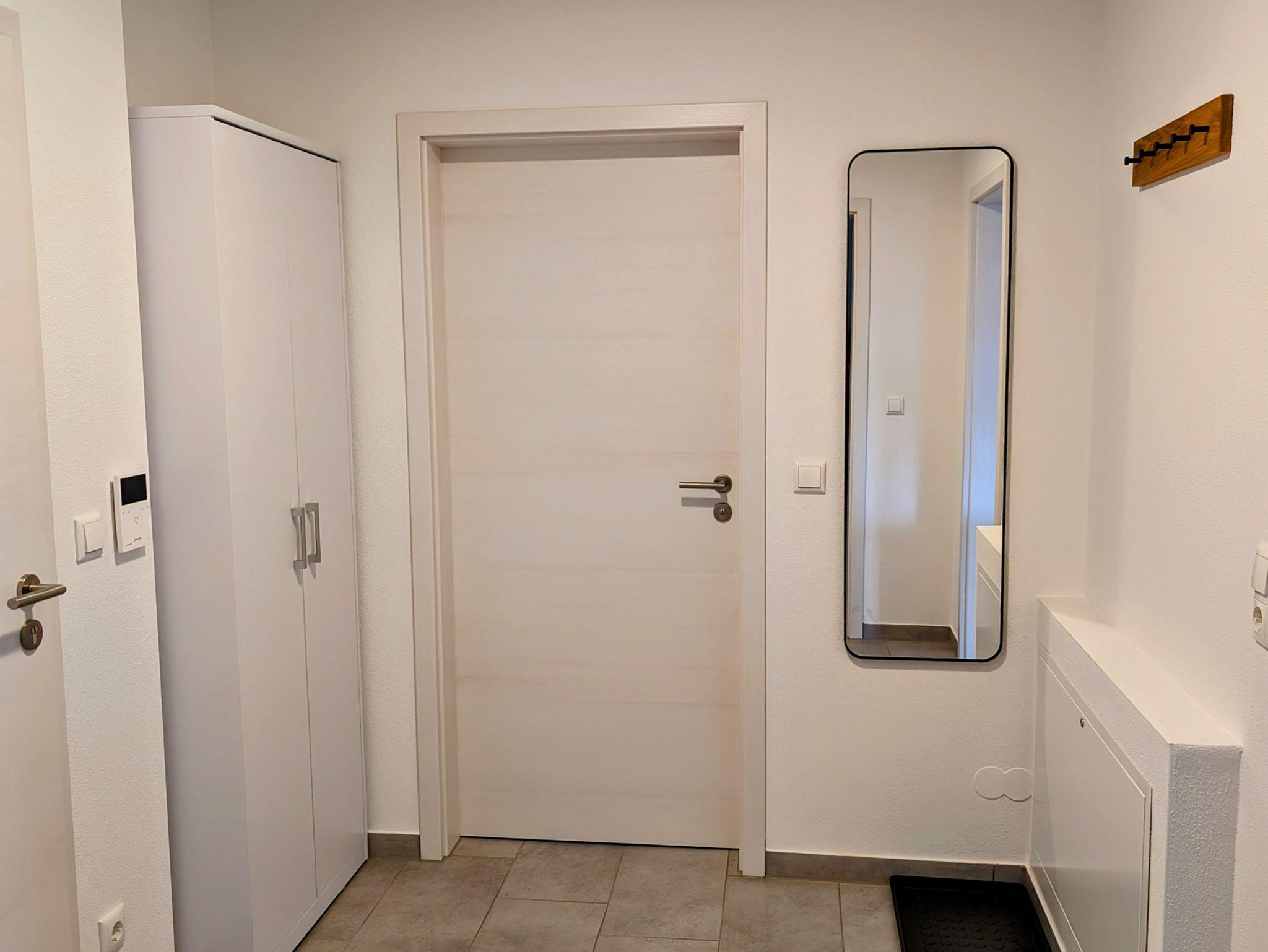 Das Schlafzimmer verfügt über ein komfortables Doppelbett (Boxspringbett), das bei Bedarf auch in zwei Einzelbetten umgewandelt werden kann. Ein großer Kleiderschrank bietet ausreichend Platz für Ihre persönlichen Gegenstände.
