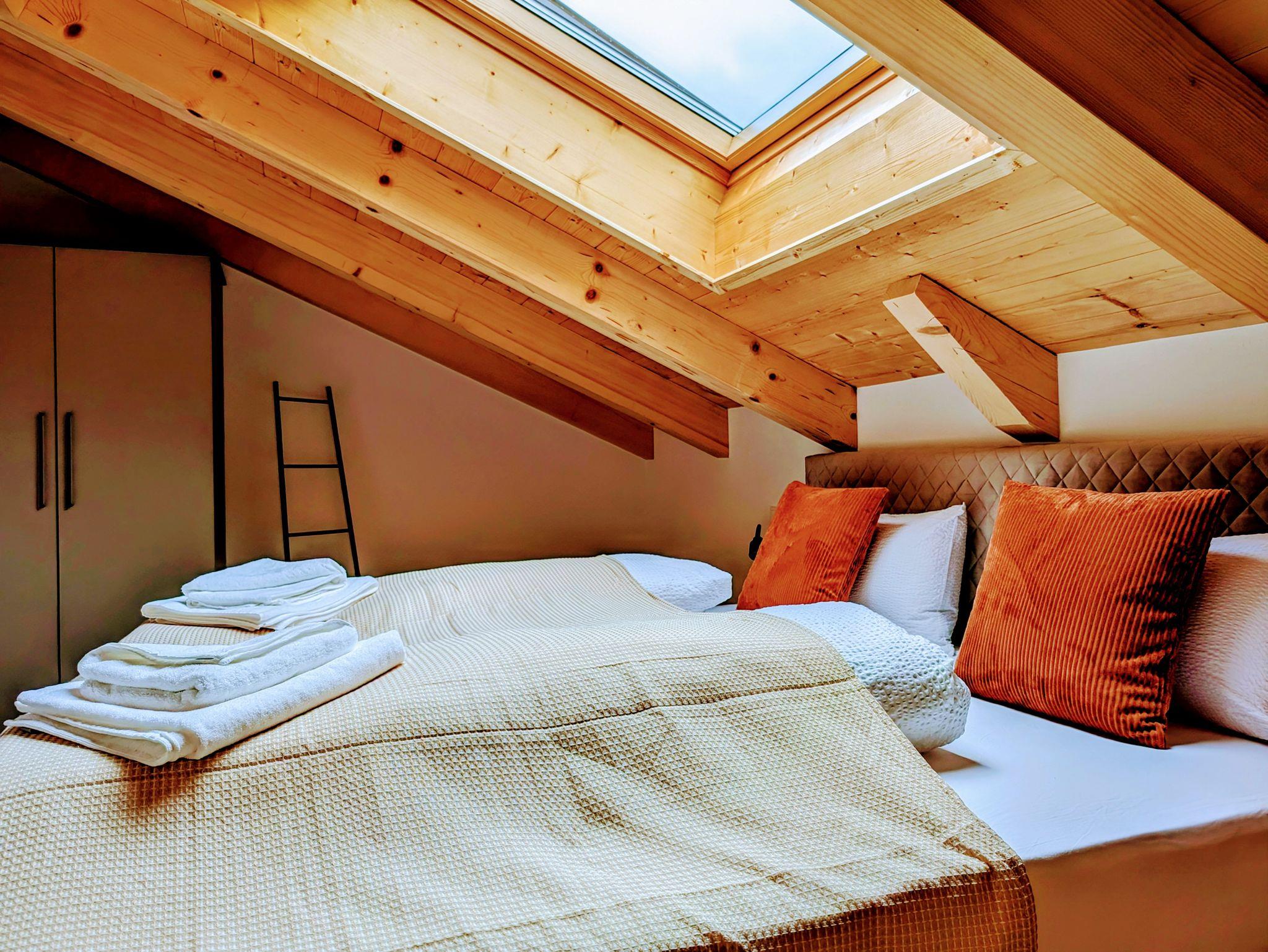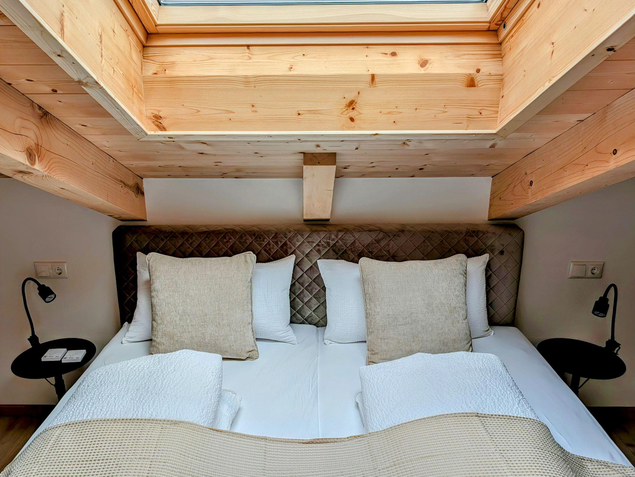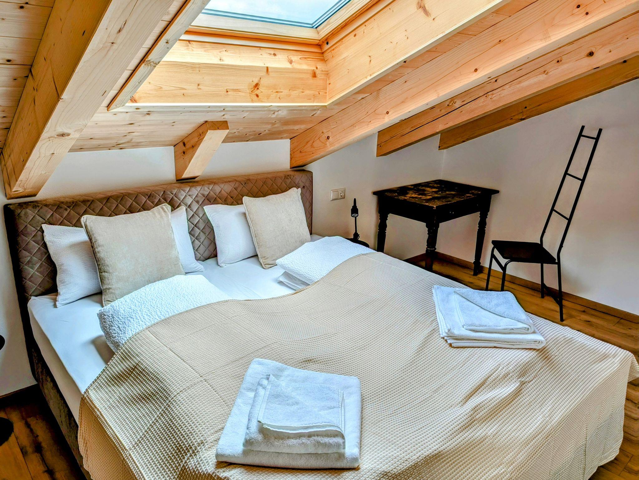 Willkommen in unserer gemütlichen Dachgeschoss-Suite Himmelszelt (65 qm) , die Platz für bis zu 6 Personen bietet.