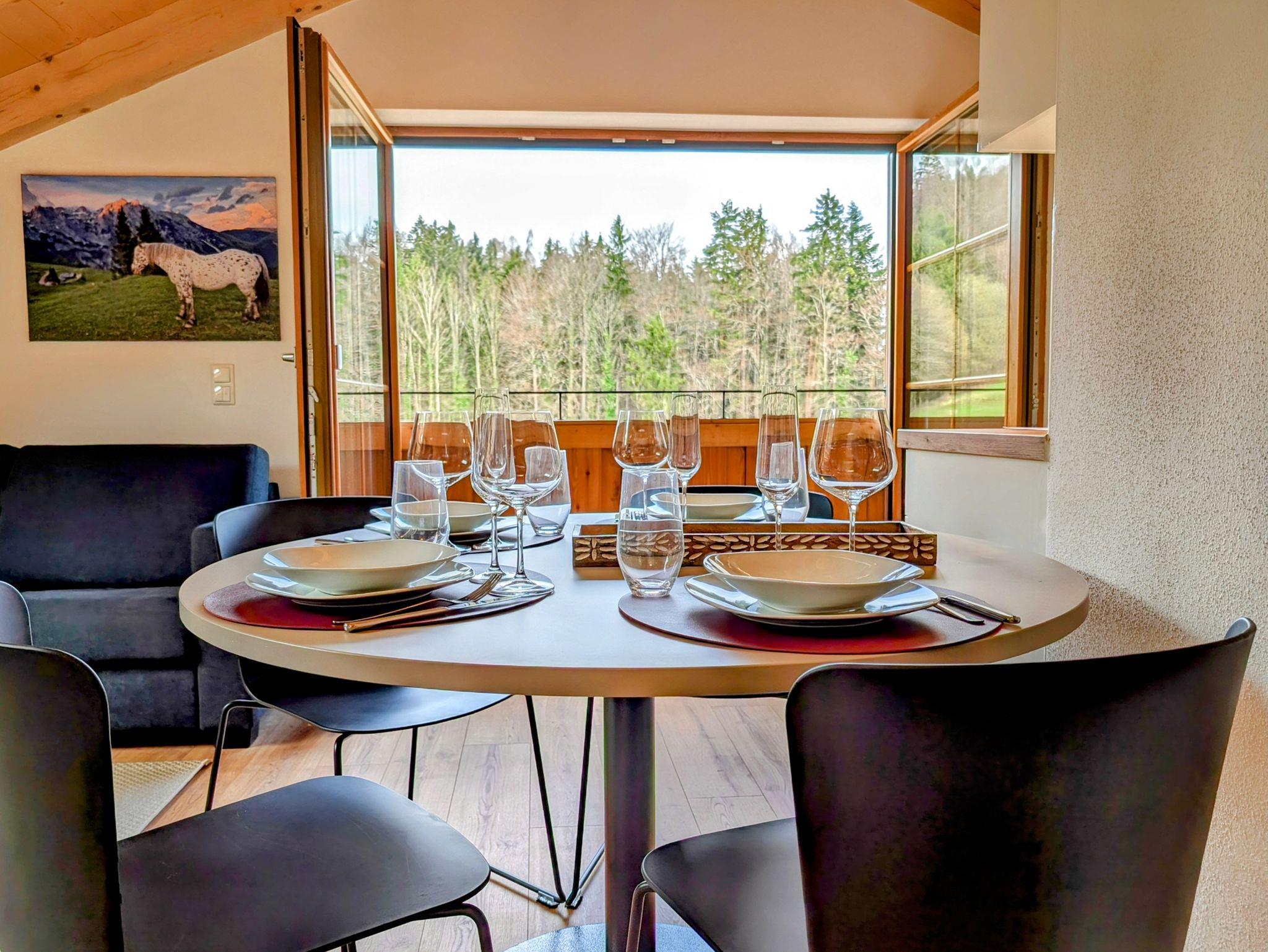 Inmitten der wunderschönen Natur finden Sie angrenzend an das großzügige Staufen-Chalet-Areal auch viele Tiere wie Schafe, Pferde, Hühner oder einen verspielten Hund vor, die sich über jede Kontaktaufnahme freuen.