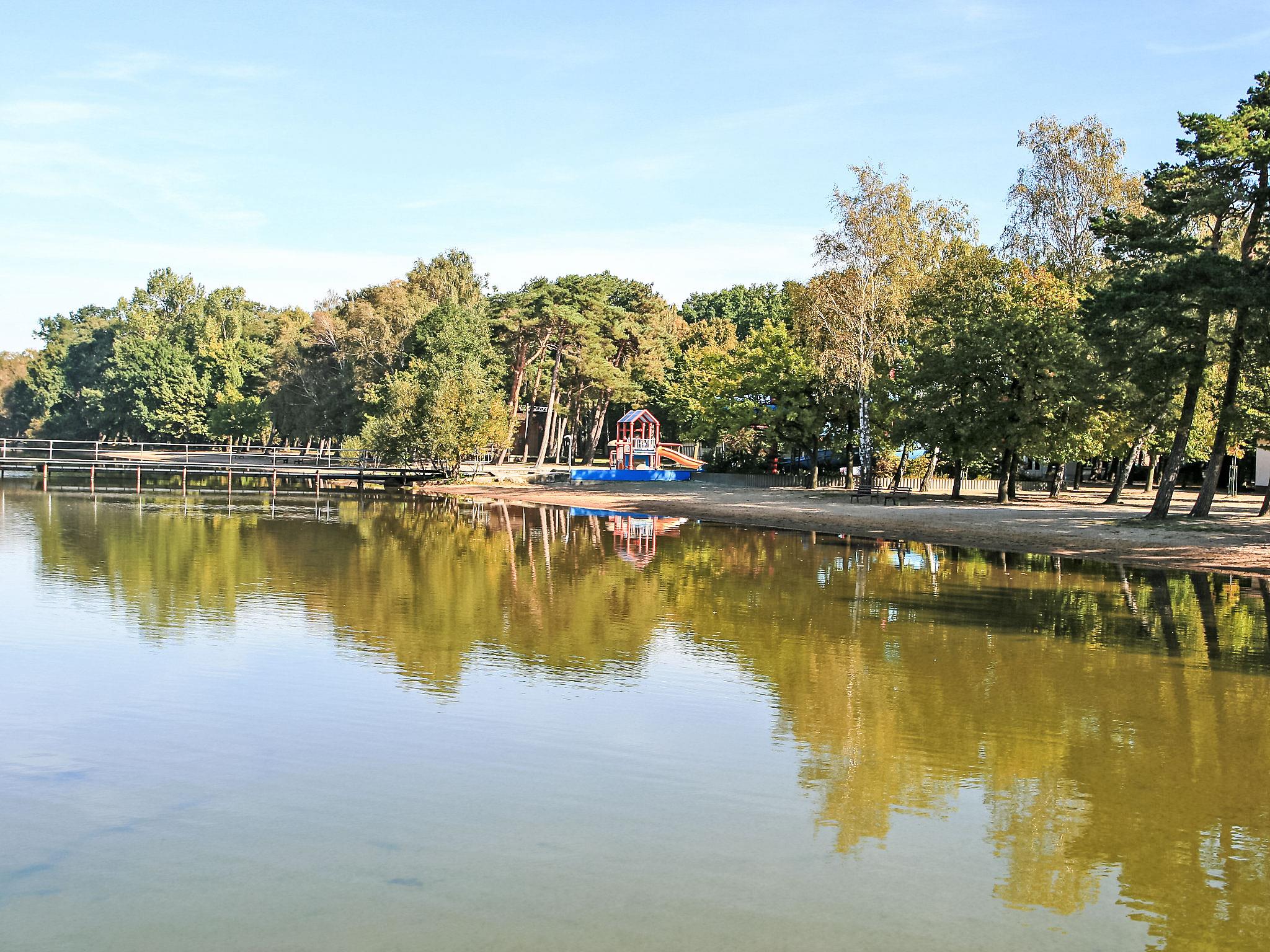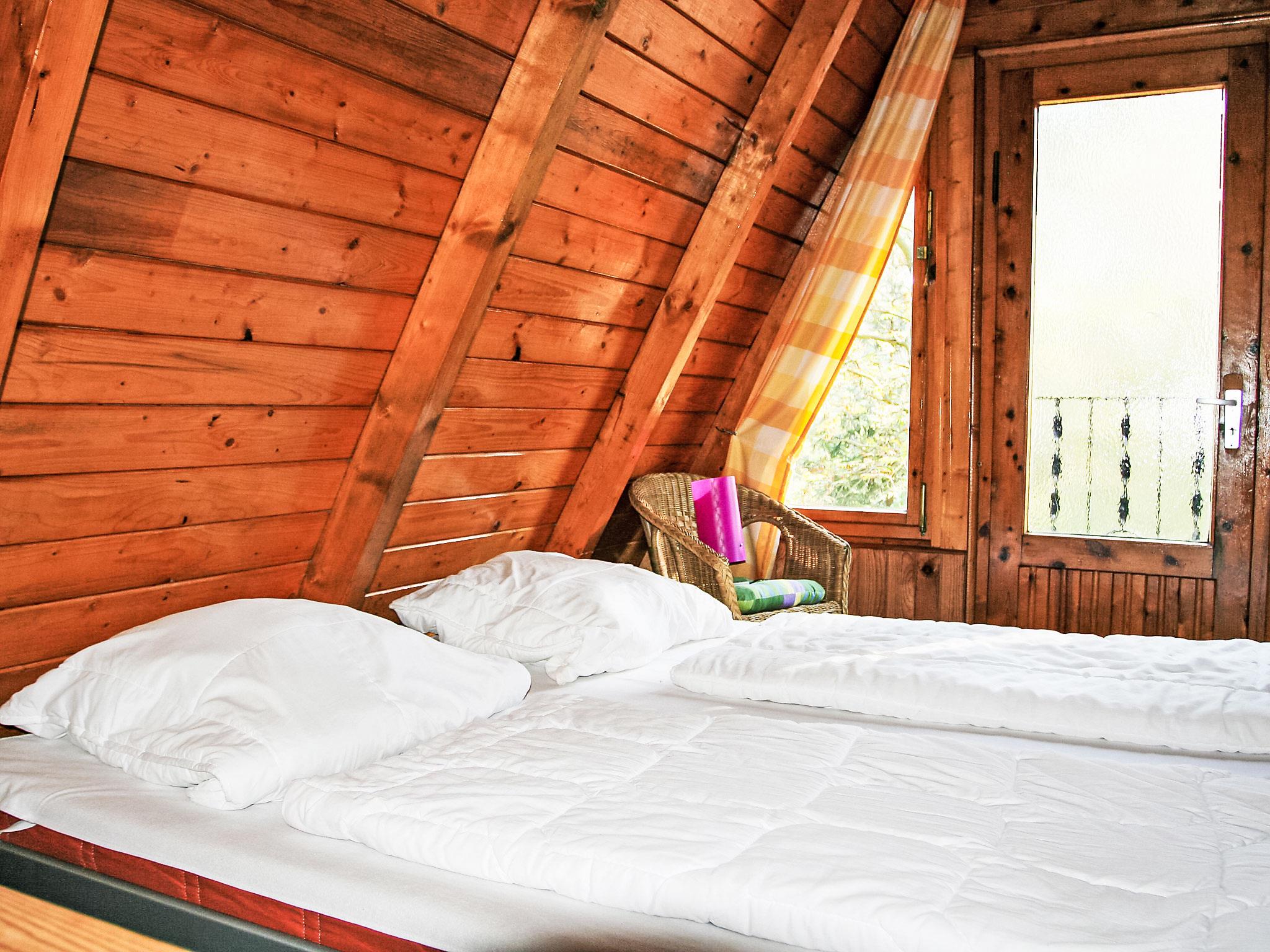 Cosy timber house "Nepumuk". On the outskirts, 1 km from the centre of Arendsee, 200 m from the lake, 200 m from the beach, in the woods. For shared use: property (fenced). Table tennis, children's playground (swing). In the complex: washing machine (extra), tumble dryer (for shared use, extra), bicycle rental. Motor access (via unmade road). Public parking 250 m extra. Grocery 500 m, supermarket 1 km, restaurant 300 m, bus stop "Arendsee, Strandbad" 400 m, railway station "Seehausen" 18 km. Minigolf 500 m. Please note: car recommended. Groups of teenagers on request only. The owner lives on the same property. The photograph shows a typical example. Neighbourhood highly sensitive to noise. Quietness and good behaviour expected. The total of 7 wooden roof holiday homes are located in a small holiday complex, 200 m away from the Arendsee lake, which offers a beach, boat rentals and steamboat trips (extra).