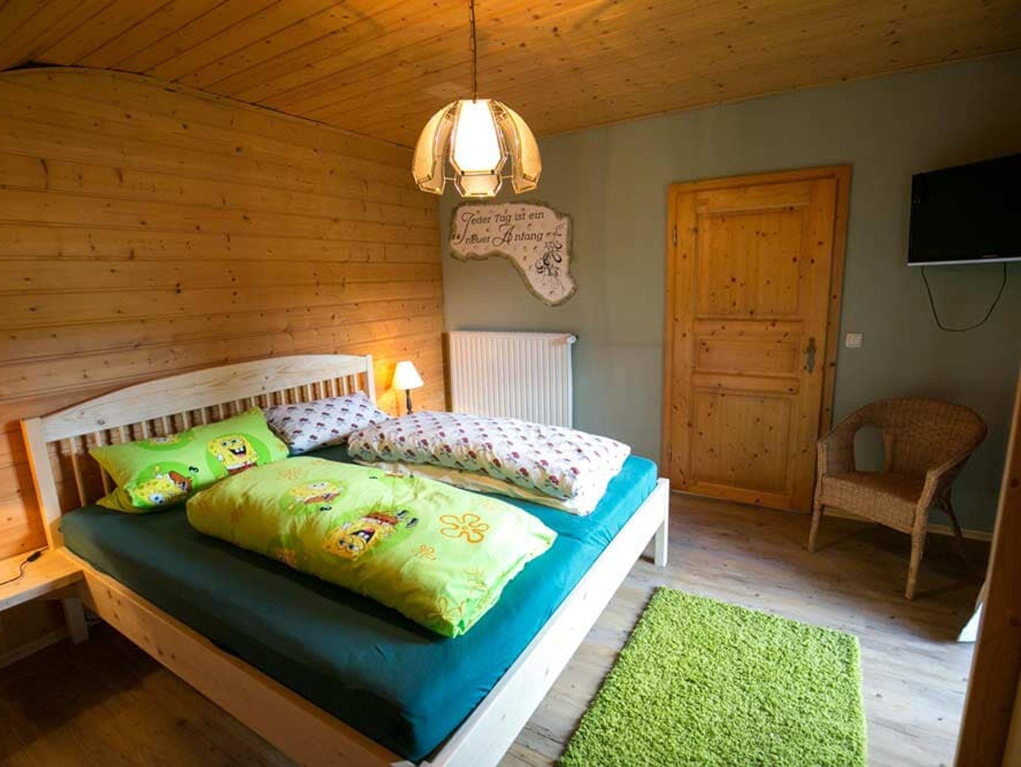 Die Ferienwohnung Osserberg (110qm) bietet Platz für 6 Personen. In den drei Schlafzimmern steht jeweils ein bequemes Doppelbett. In einem Schlafzimmer befindet sich ein großer TV. Das Wohnzimmer mit Sat-TV, großer Couch und Kachelofen lädt zum Verweilen ein. Die Küche mit Spülmaschine, Mikrowelle, Toaster, Wasserkocher, Espressomaschine lässt keine Wünsche offen. Das Bad besteht aus Badewanne und WC. Im zweiten Bad befindet sich noch eine Badewanne. Auf den schönen Balkonen können Sie die Sonne und Aussicht genießen. Babygerechte Ausstattung möglich. Frühstücksbuffet gegen Aufpreis möglich. Tischtennisraum mit großem Fußballkicker, große Liegewiese mit Liegen und Grill und ein separater Waschraum mit Waschmaschine und Trockner stehen unseren Gästen zur Verfügung. Kostenloses Reiten am Hof und auf Wunsch Kinderbetreuung. Separates Kinderspielzimmer, Aufenthaltsraum, eigener schattiger Kinderspielplatz mit Baumhaus, großem Trampolin und Lagerfeuerstelle.