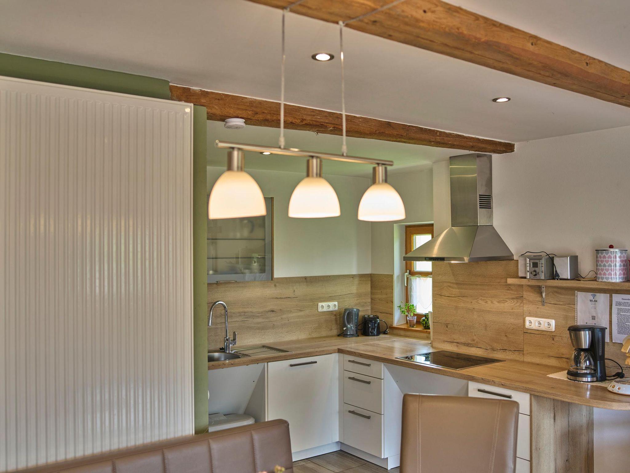 Die Ferienwohnung Talblick (75 qm) ist für 4 Personen geeignet. Sie verfügt über zwei schöne Schlafzimmer (1x Doppelbett, 1x Etagenbett). Das Wohnzimmer mit Sat-TV, großer Couch lädt zum Verweilen ein. Die Küche mit Spülmaschine, Mikrowelle, Toaster, Wasserkocher, Espressomaschine lässt keine Wünsche offen. Das Bad besteht aus Badewanne, Dusche und WC Babygerechte Ausstattung möglich. Frühstücksbuffet gegen Aufpreis möglich. Tischtennisraum mit großem Fußballkicker, große Liegewiese mit Liegen und Grill und ein separater Waschraum mit Waschmaschine und Trockner stehen unseren Gästen zur Verfügung. Kostenloses Reiten am Hof und auf Wunsch Kinderbetreuung. Separates Kinderspielzimmer, Aufenthaltsraum, eigener schattiger Kinderspielplatz mit Baumhaus, großem Trampolin und Lagerfeuerstelle.