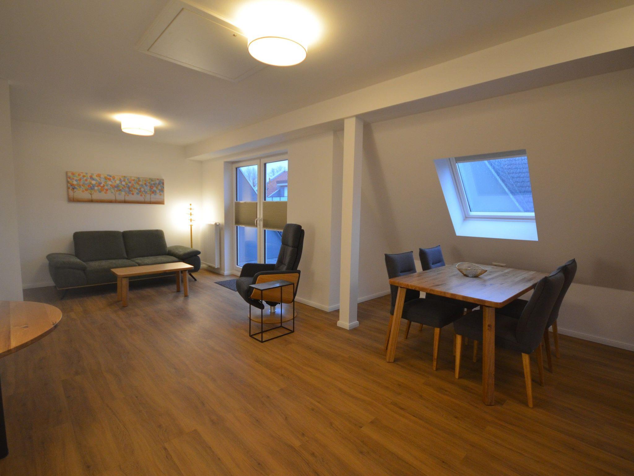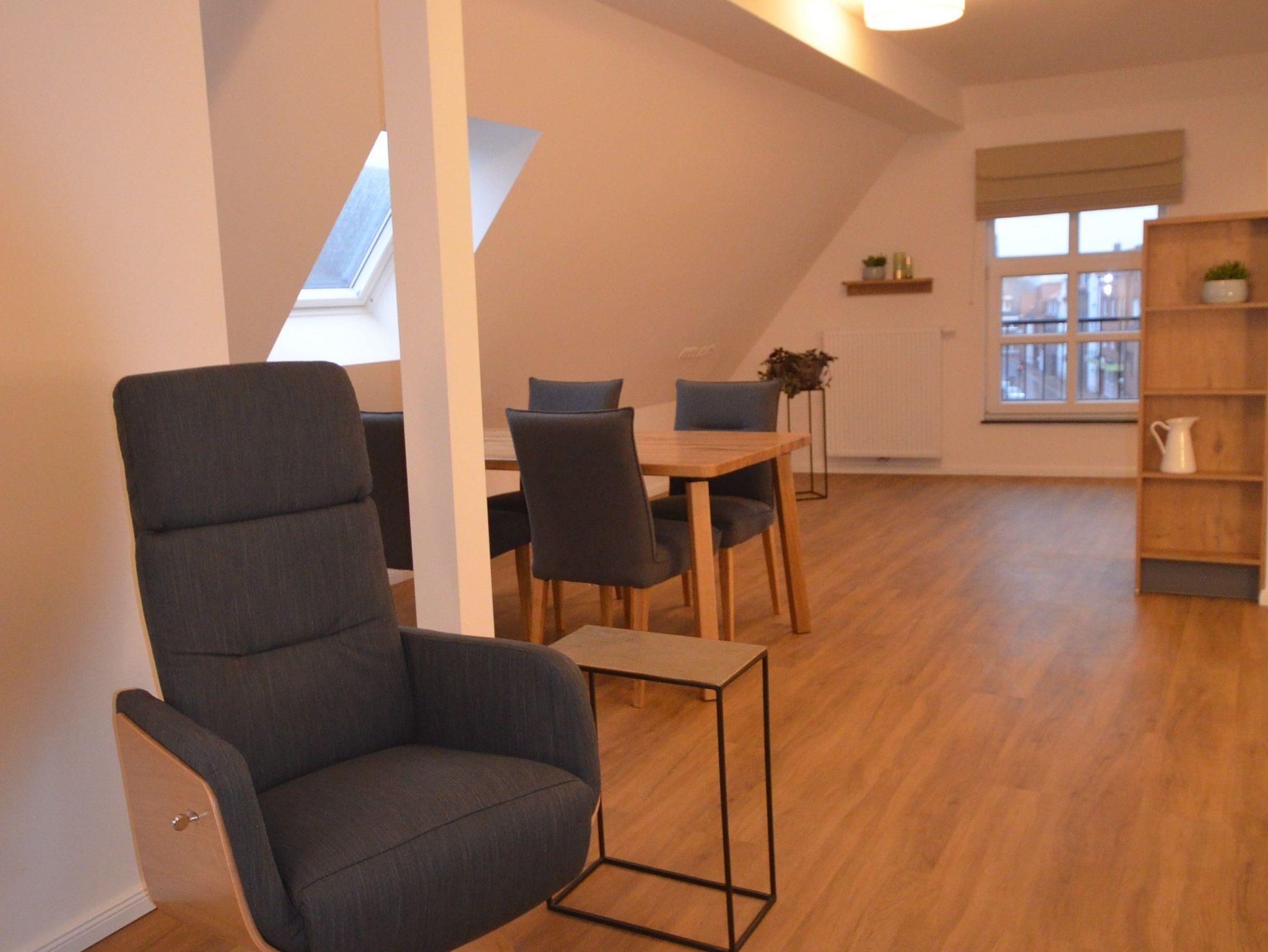 Das Apartment mit einer Loggia befindet sich im 2. OG mit Blick zum schönen Auricher Marktplatz gelegen. Bis zum 1.OG können Sie den Fahrstuhl nutzen, zum 2. OG führt eine Treppe. Es ist ca. 75 m² groß und für max. 3 Personen und 1 Kind im Alter von bis zu drei Jahren buchbar.