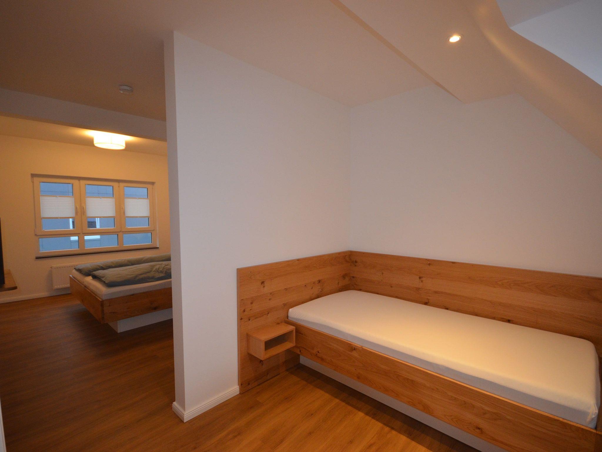Das Schlafzimmer verfügt über ein Doppelbett sowie ein Einzelbett.