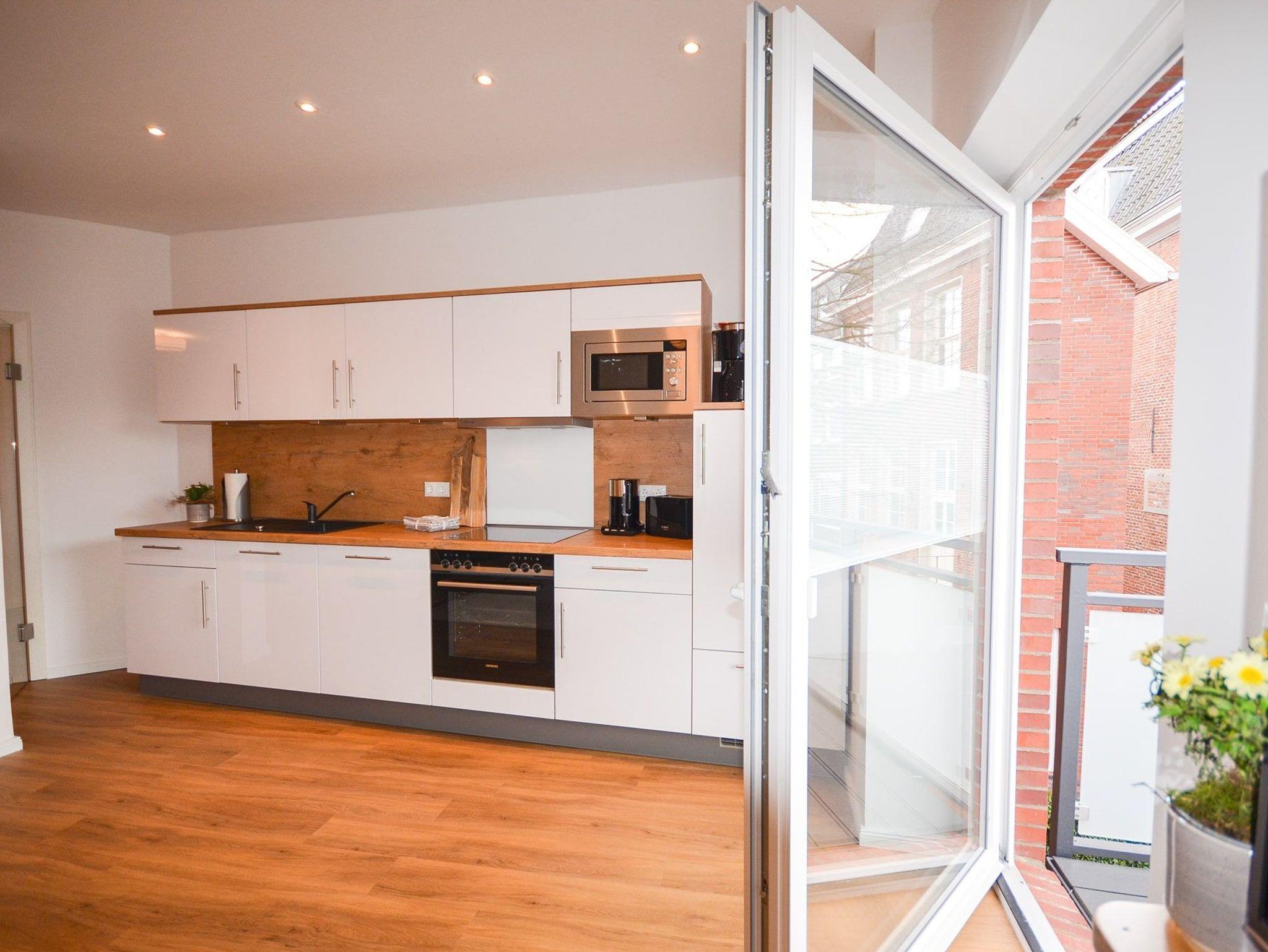 Mit der stilvollen, aufeinander abgestimmten Einrichtung und einer sehr ansprechenden Raumaufteilung, ist es ein Ort zum Wohlfühlen sowohl für einen Ostfrieslandurlaub als auch für Ihren geschäftlichen Aufenthalt. Mit der hellen, offenen Wohnküche und dem Essbereich ist dies ein Apartment, das sich geradezu für einen längeren Besuch anbietet.
