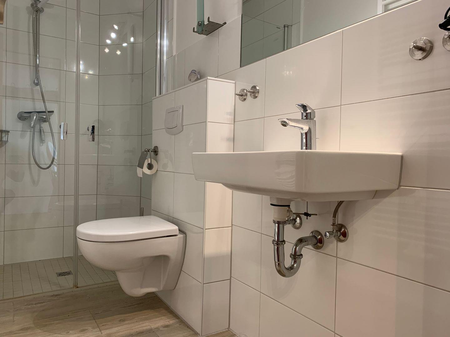Das Bad verfügt über eine Dusche/WC. Vom Wohnbereich gelangen Sie auf die Terrasse. Das eine Schlafzimmer verfügt über ein Doppelbett, das zweite Schlafzimmer über 2 Einzelbetten. Der Wohnung ist ein PKW - Stellplatz direkt am Haus zugehörig.