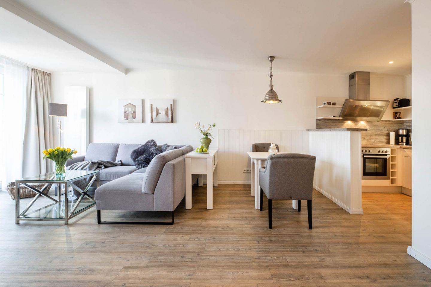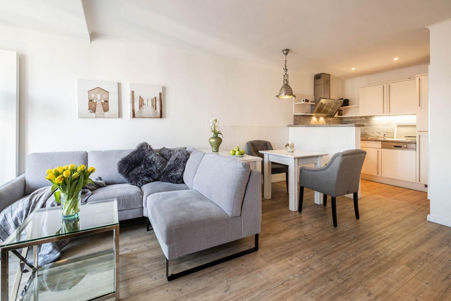 Das 52 m² Apartment ist geeignet für 2 Personen und befindet sich in dem Haus "Weisse Villa" direkt am Büsumer Hafen.