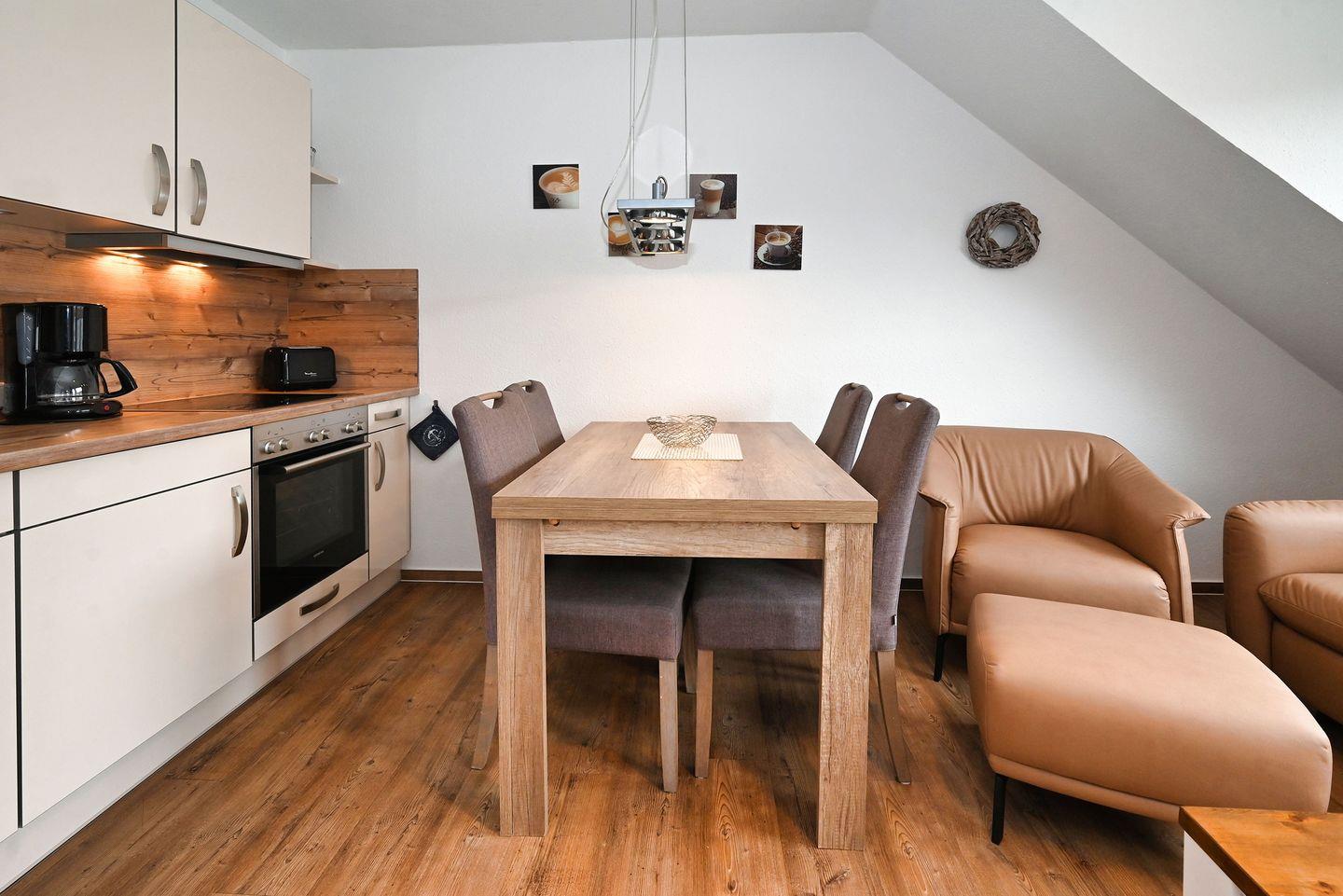 Die Wohnung erstreckt sich über 44 m² und ist geschmackvoll eingerichtet. Sie besticht durch ein offenes Raumkonzept, das eine moderne Küche mit einem hellen Wohnzimmer vereint. Die voll ausgestattete Küche lässt keine Wünsche offen: Hier finden Sie einen Backofen, eine Cerankochplatte, eine Spülmaschine und zahlreiche Küchenutensilien, um leckere Mahlzeiten zuzubereiten. Genießen Sie Ihre Speisen im Essbereich oder entspannen Sie auf der komfortablen Sofaecke, während Sie Ihren Lieblingsfilm auf dem Fernseher mit DVD-Player ansehen. Für gemütliche Abende bietet ein HiFi-System die perfekte musikalische Begleitung.