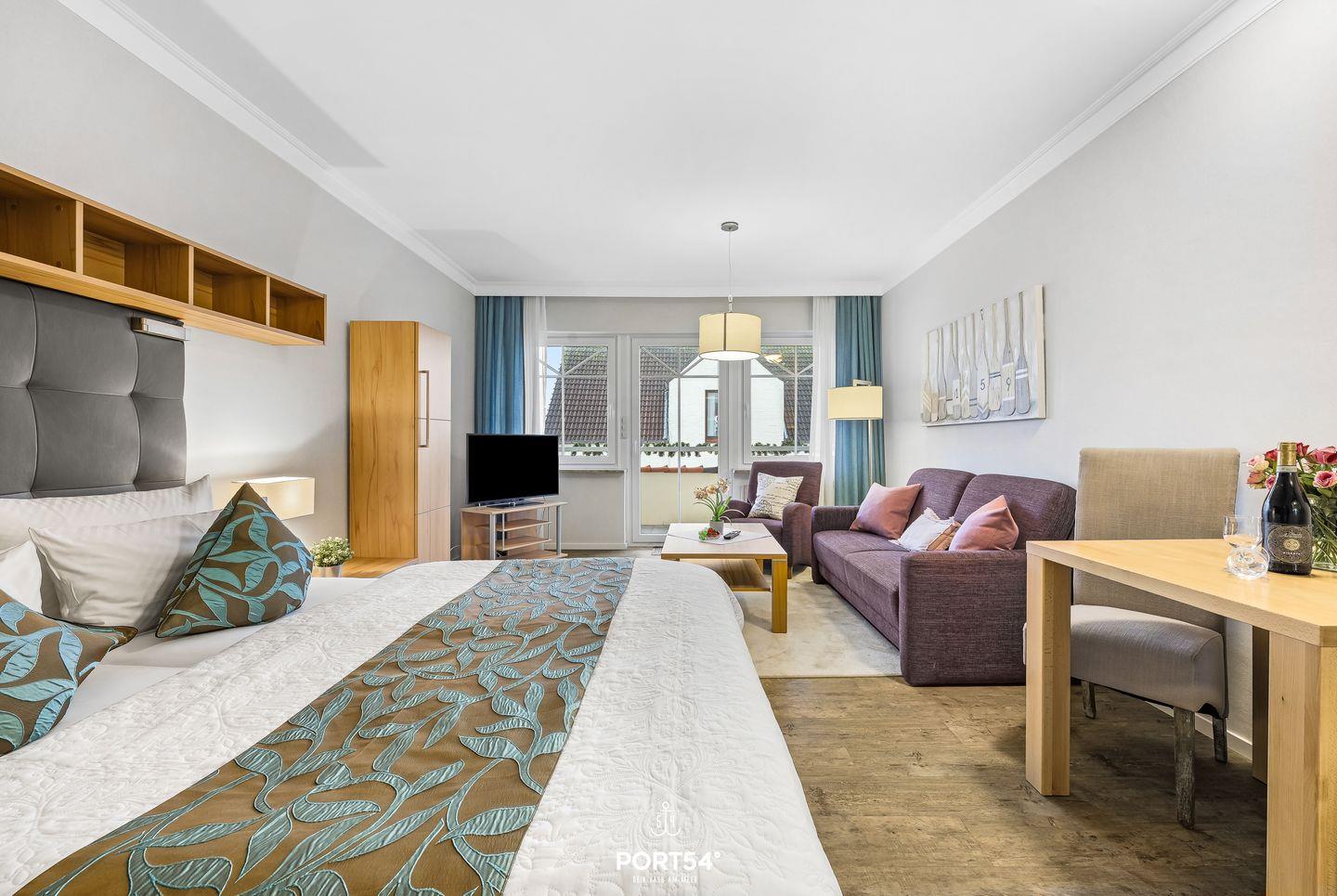 Ein kleiner Balkon lädt dich dazu ein, frische Nordseeluft zu genießen und das Treiben der nahegelegenen Fußgängerzone zu beobachten.