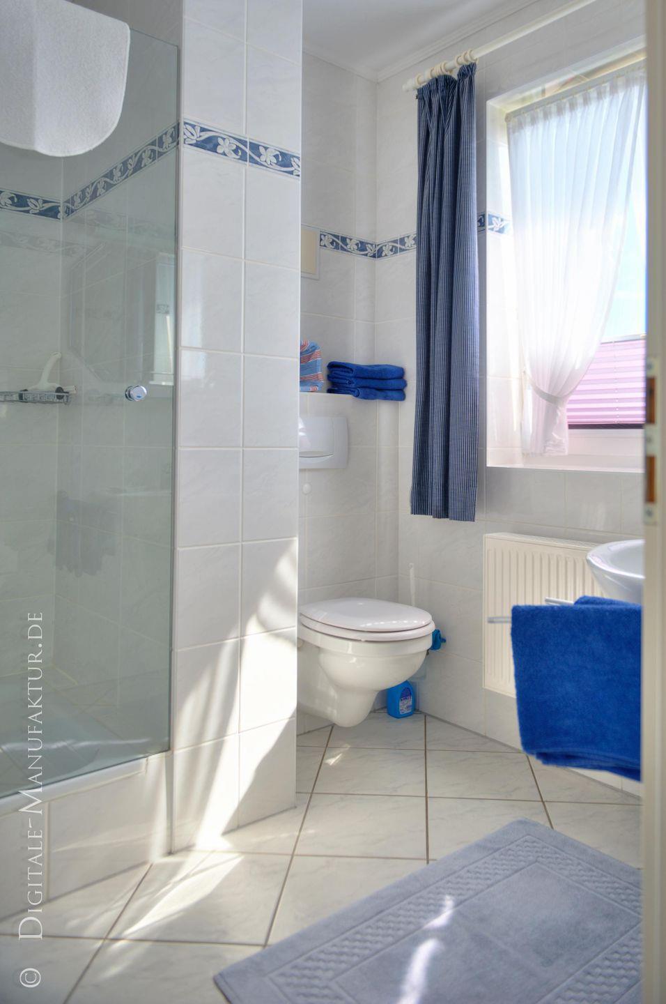 Duschbad, WC, Waschbecken, Spiegel, Föhn