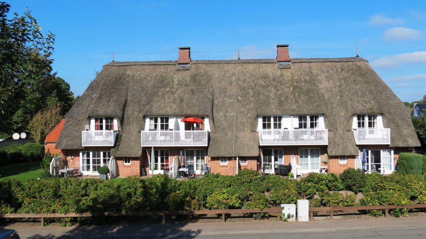 Das "Appartementhaus Seeschlösschen" strahlt durch seine Bauweise und das hohe Reetdach einen eigenen Charme aus.Bis zum Badestrand Büsumer-Deichhausen sind es ca. 80 m.