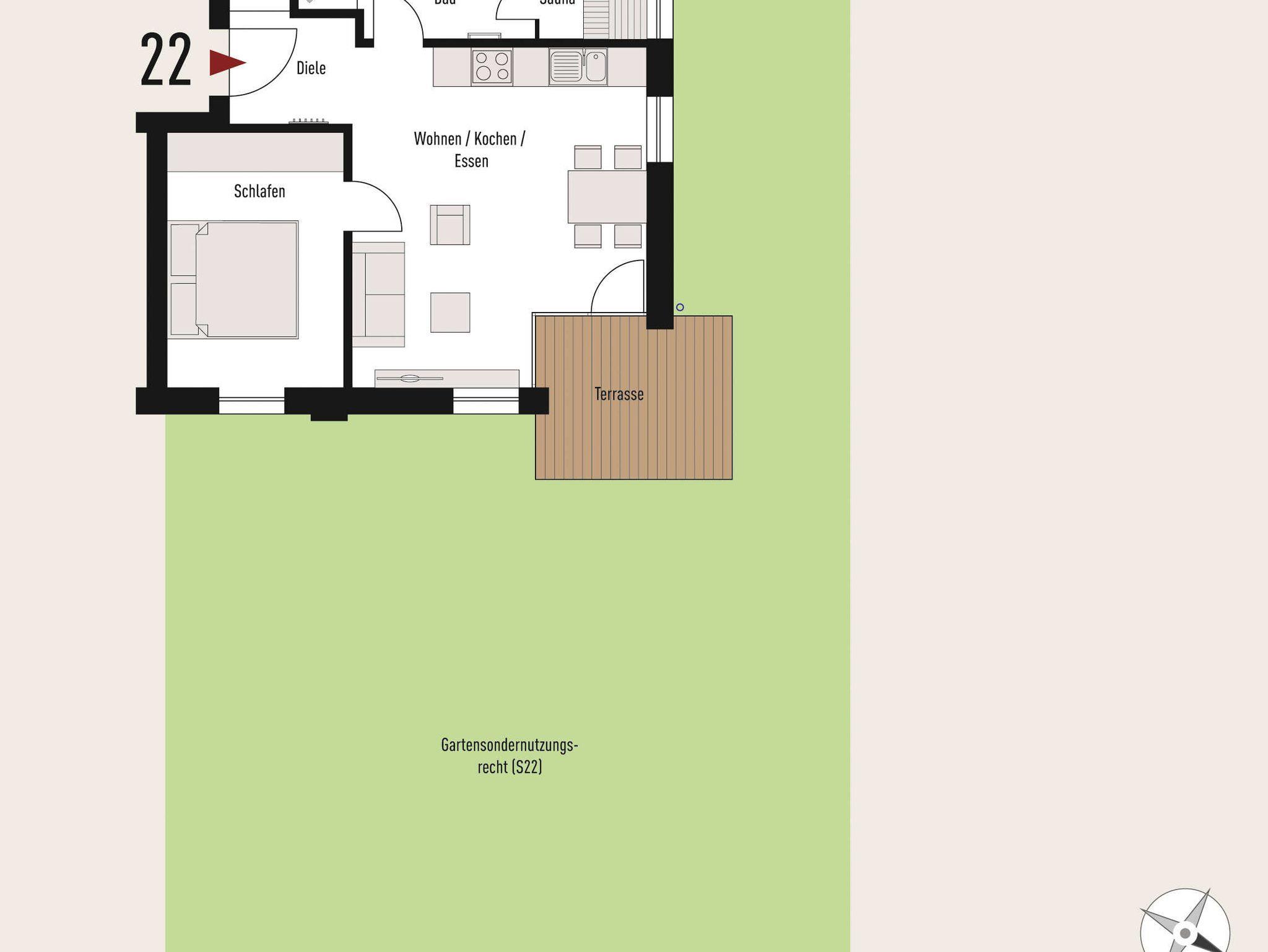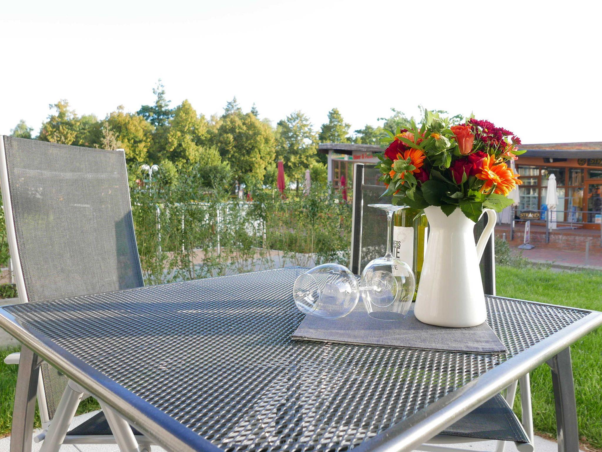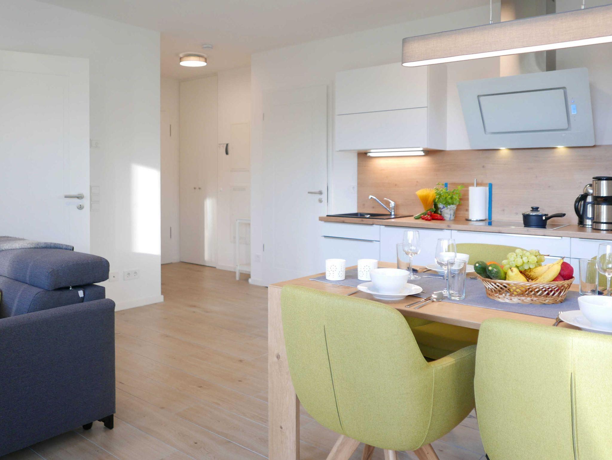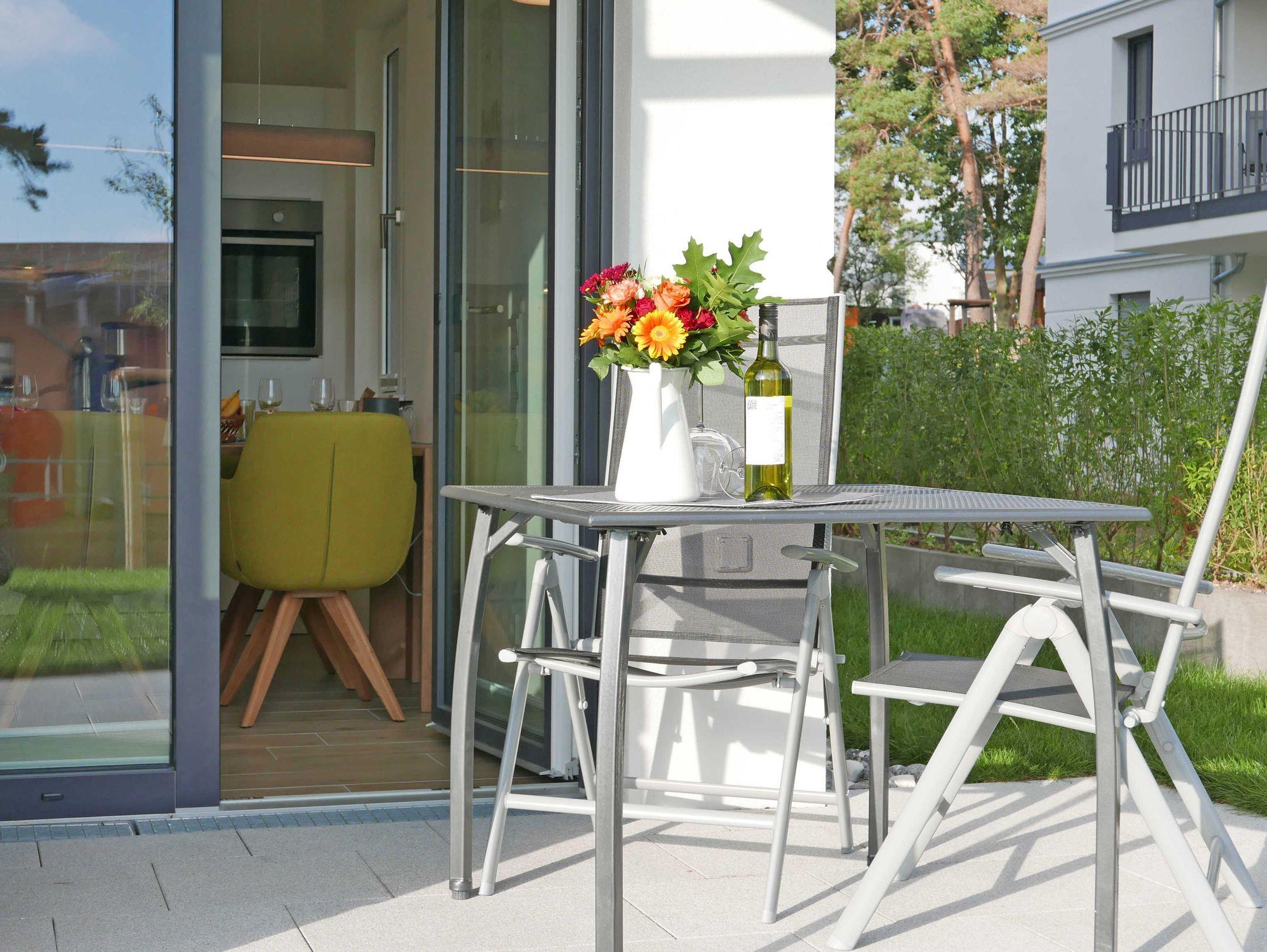 Helle 2-Zimmer-Ferienwohnung mit Terrasse, Garten und eigener Sauna für bis zu 3 Personen in dem neu eröffneten Villen-Ensemble (Vermietungsbeginn Sommer 2019).
