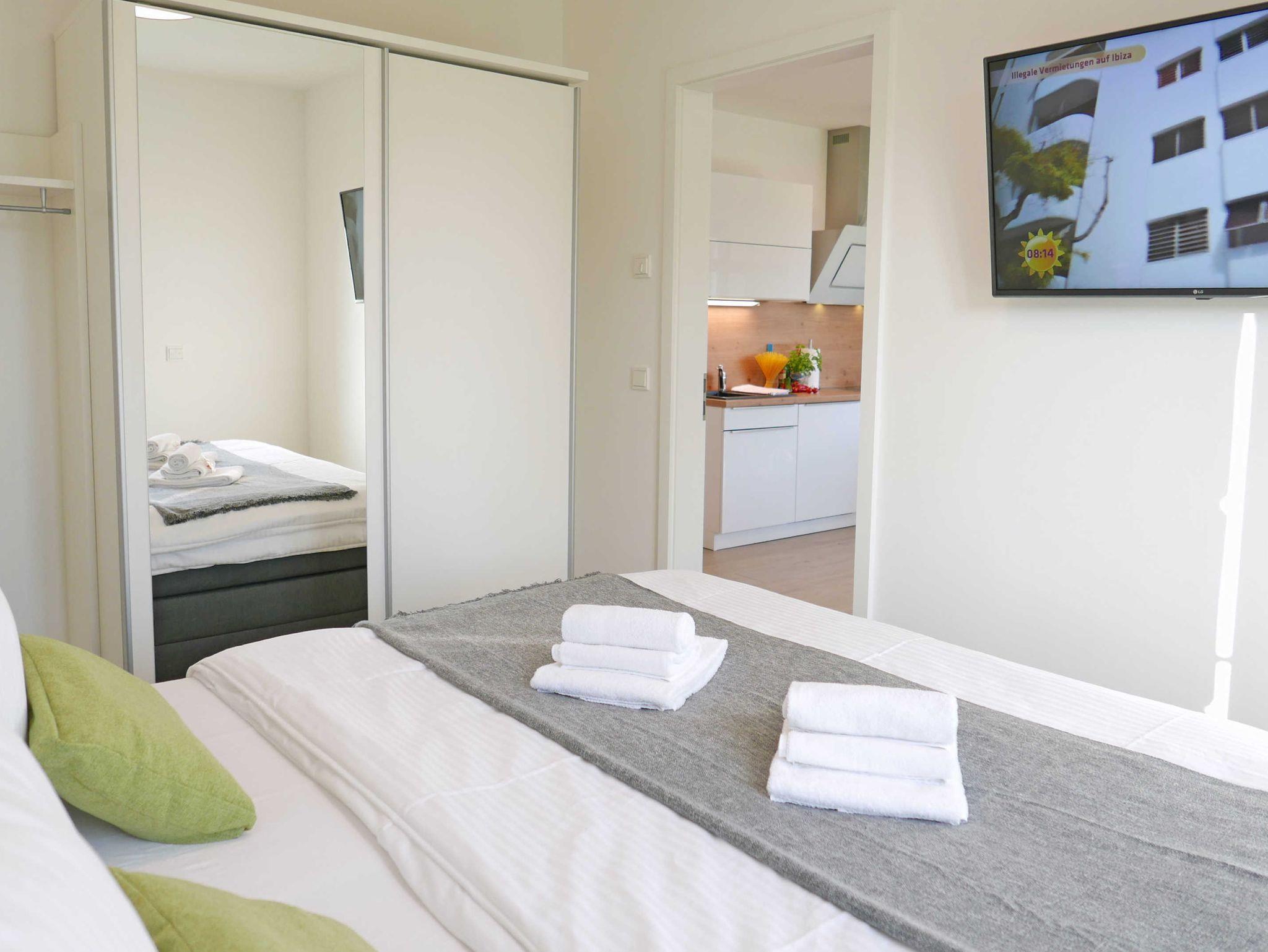 Im Schlafzimmer befindet sich ein 180x200 großes Doppelbett sowie genügend Schrankfläche und vor allem ein weiterer Fernseher. WLAN ist in allen Räumen vorhanden.