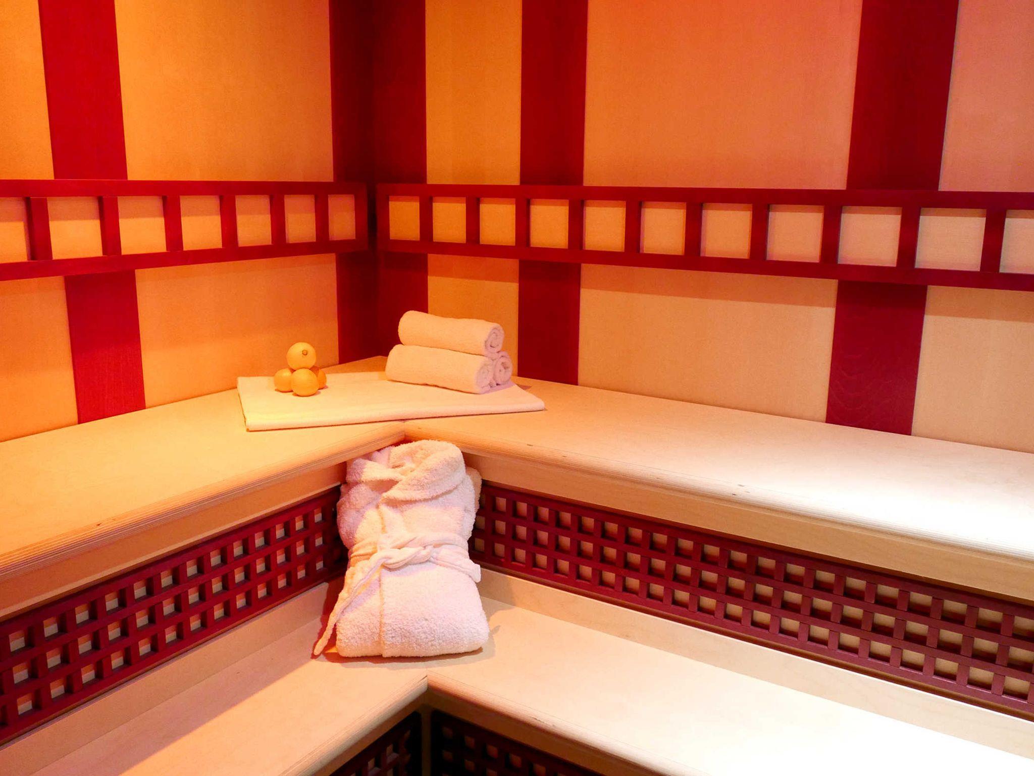 Eine Saunalandschaft und ein Fitnessbereich befindet sich überdies in dem Haus. Aufzug, WLAN, Parkplatz sind ebenfalls vorhanden.
