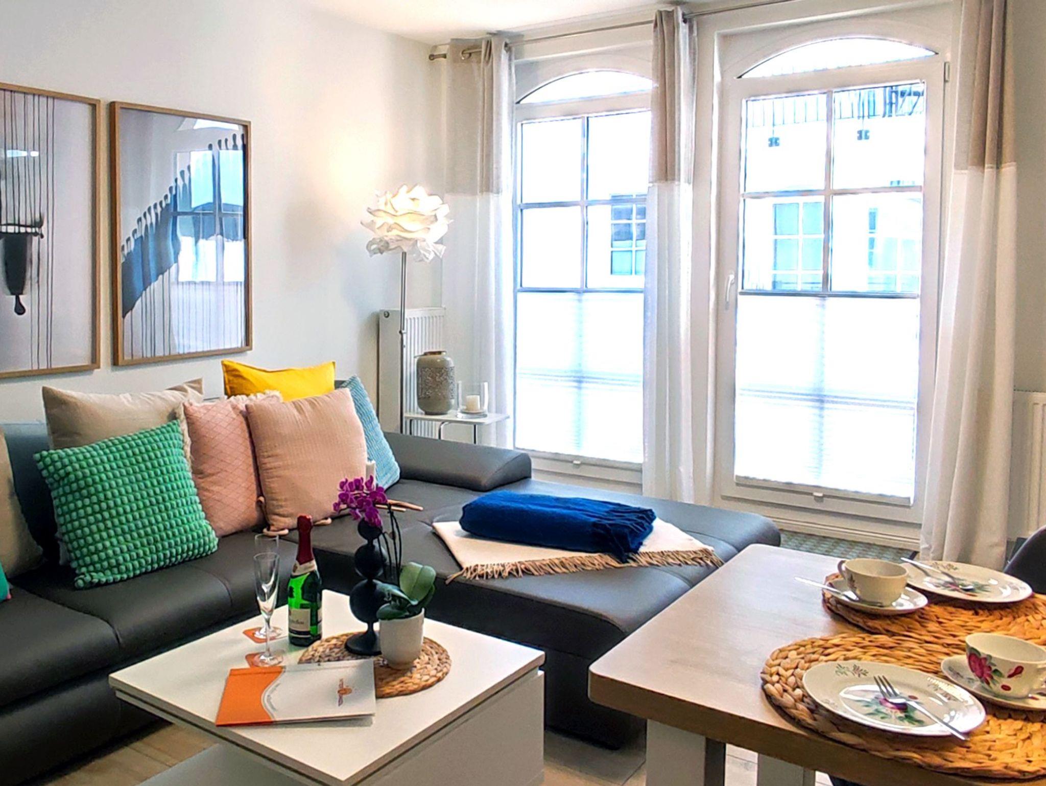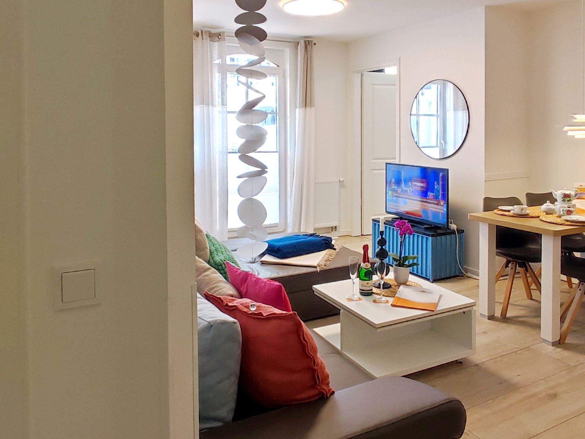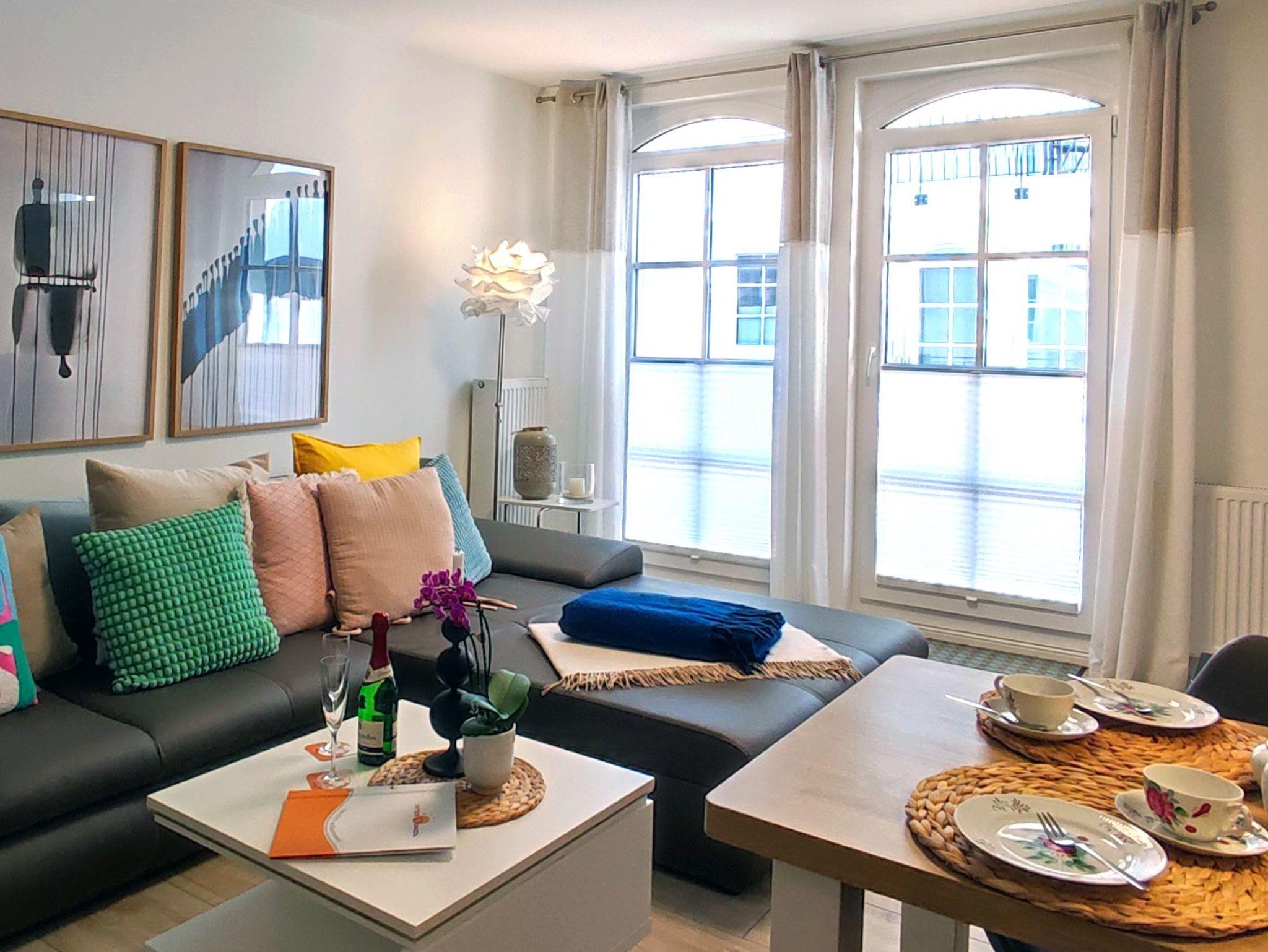 Schöne Ferienwohnung für 2 - 4 Personen mit 2 Schlafzimmern und möbliertem Balkon zum Innenhof, WLAN vorhanden. Die Ferienwohnung liegt in der 1. Etage des Haues.