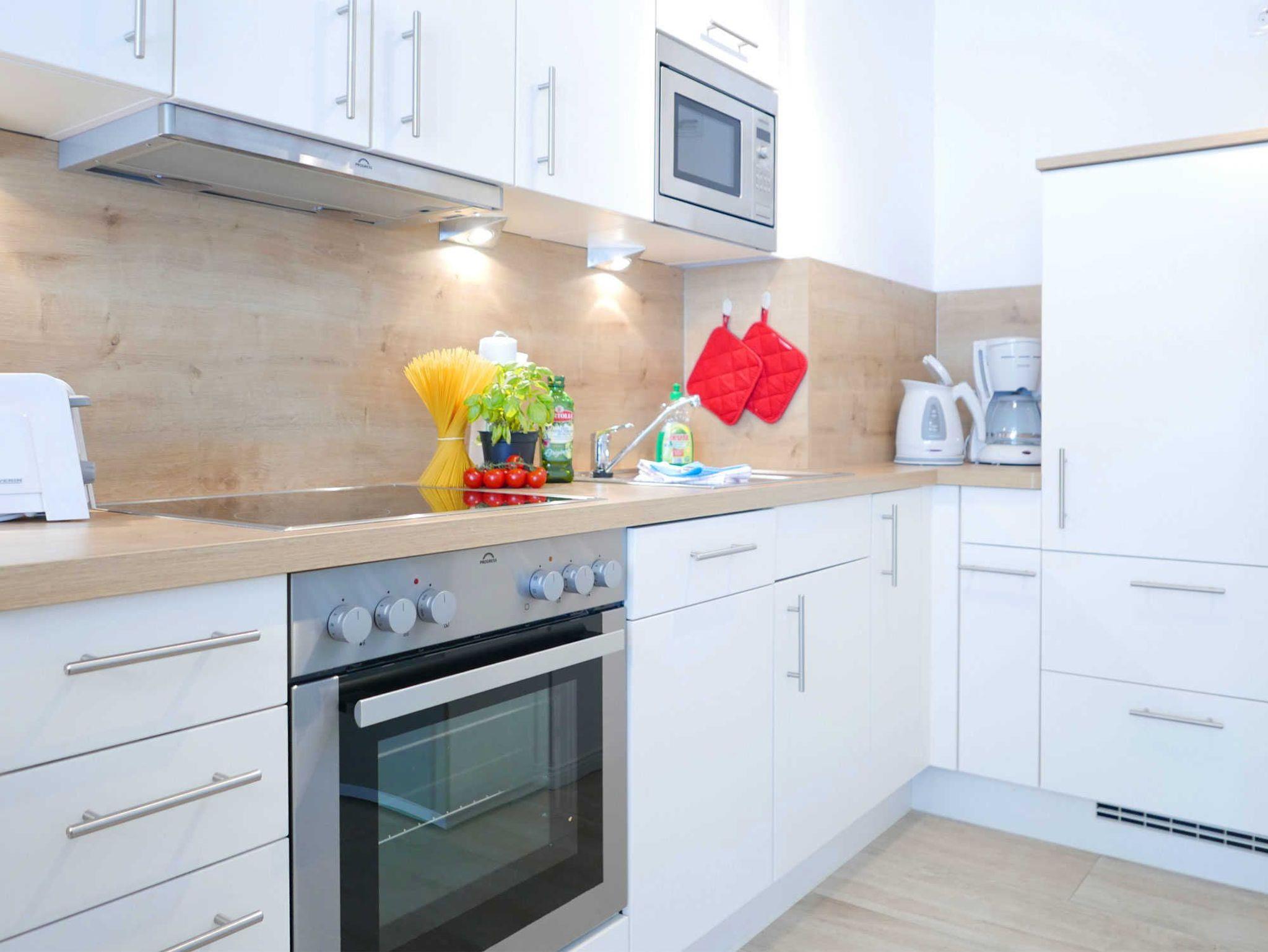 Im kombinierten Küchen- und Wohnbereich ist ein Esstisch mit vier Sitzplätzen. Dort stehen Ihnen außerdem TV, Radio und DVD- und CD-Player zur Verfügung. Auch der Balkon, der zu einem Innenhof gelegen ist, hält vier Liegestühle vor. Die in den Wohnraum integrierte Küchenzeile ist mit 4-Plattenherd inklusive Backofen, Kühlschrank mit Gefrierfach, Mikrowelle, Spülmaschine, Kaffeemaschine und Toaster ausgestattet.