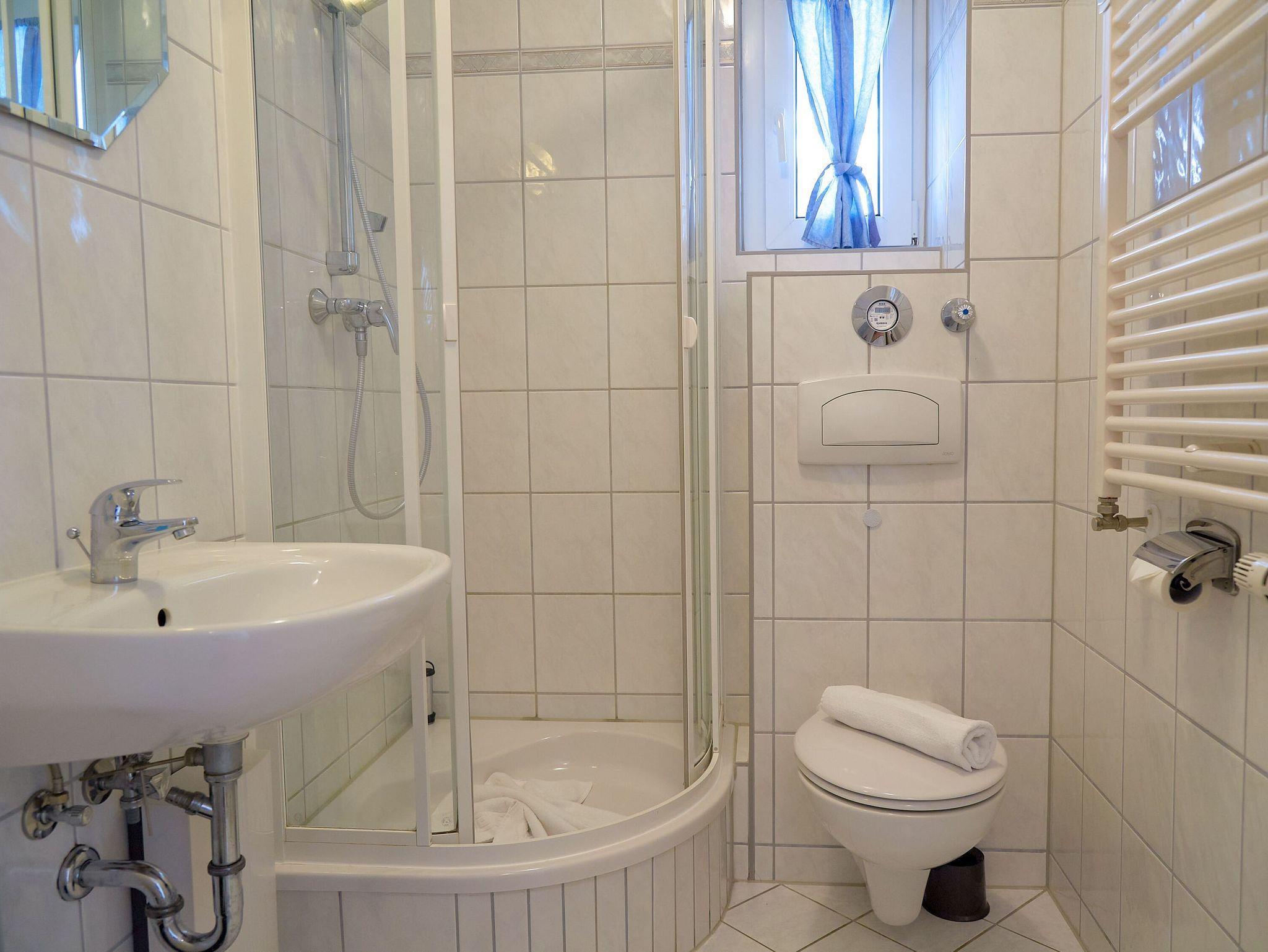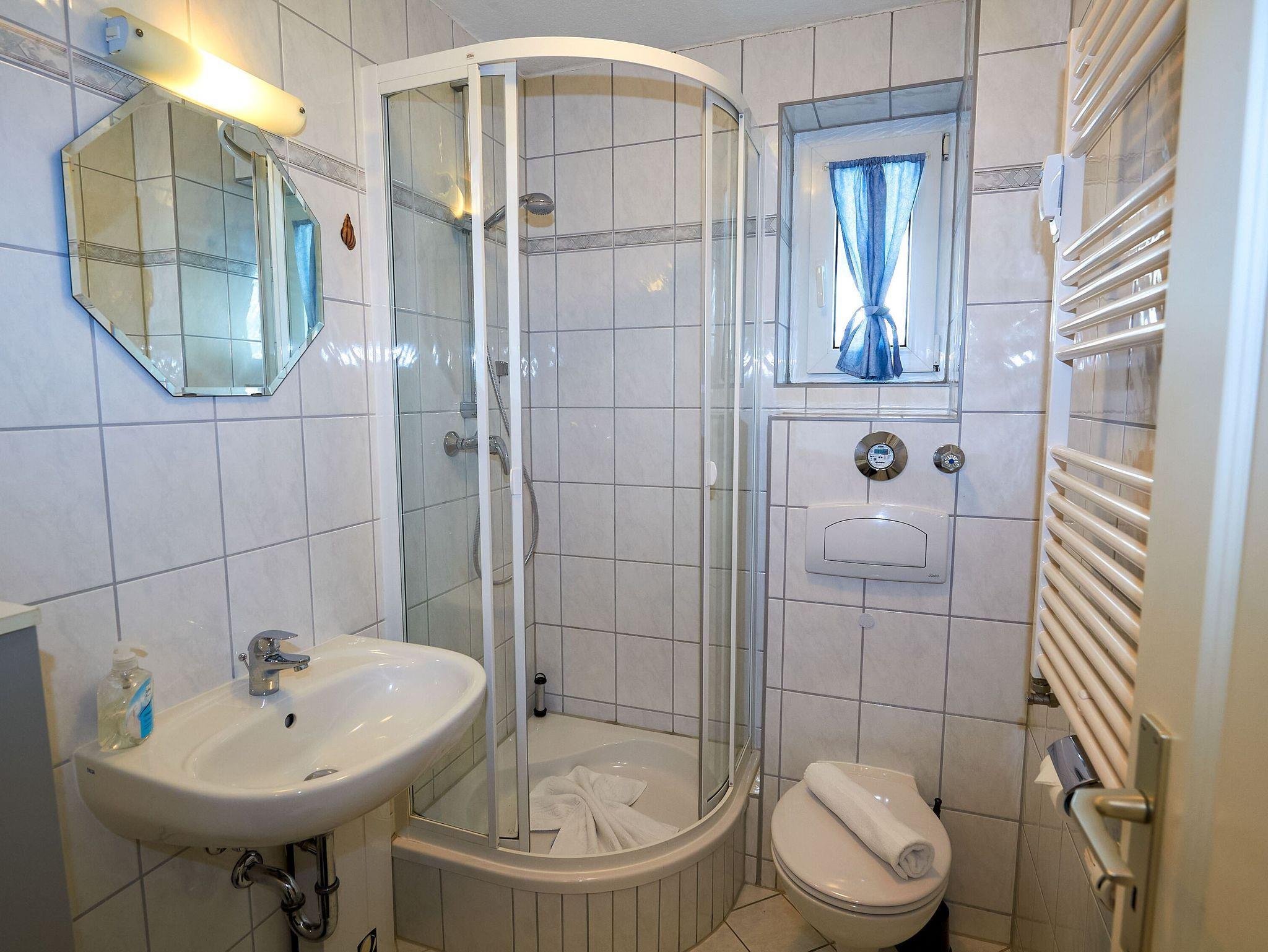 Auch das Badezimmer weiß zu überzeugen. Hier finden Sie eine Dusche/WC, einen beleuchteten Waschtisch, einen beheizbaren Handtuchtrockner, ein Steckdosenradio und natürlich auch genügend Ablageflächen für Ihre Utensilien.