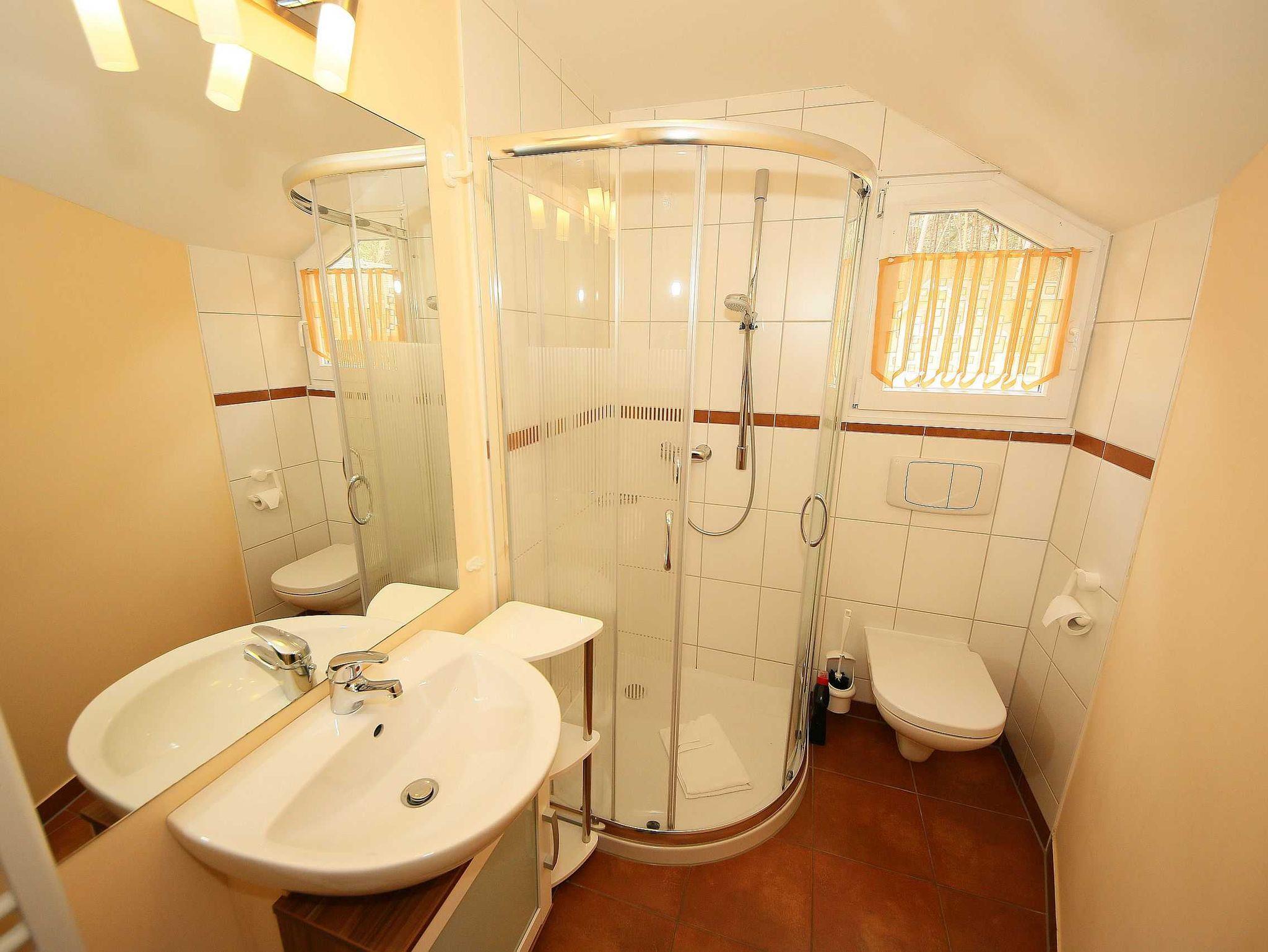 Die Doppelhaushälfte (Nichtraucher) mit Ihren 55 m² Wohnfläche bietet ausreichend Platz für 4 Erw. + 1 Kleinkind bis 3 Jahre im Kinderreisebett. Die bodentiefen Fenster im Wohn-/Essbereich lassen viel Tageslicht herein und geben Ihnen den direkten Zugang zur überdachten und bestuhlten Terrasse (Süd-Ost). Abgerundet wird diese durch einen Grill. Der gemütlich, im Schwedenstil, eingerichtete Wohnbereich ist mit einer Couchecke, Couchtisch, LCD-TV mit HD-Qualität und Satellitenempfang, DVD-Player mit Radio und ein Sideboard aus Naturholz ausgestattet. Für die kühleren Tage bieten Ihnen der Kamin (Kaminholz inklusive) sowie die Fußbodenheizung eine angenehme Wärme. Ihre Unterhaltungstechnik wird durch einen kostenfreien WLAN-Zugang abgerundet. Die angrenzende Küchenzeile mit Backofen, Ceranfeld, Dunstabzug, Kühlschrank + Eisfach, Spülmaschine, Mikrowelle, Kaffeemaschine, Toaster, Wasserkocher und kleinen Küchenhelfern lässt keine Wünsche offen. Ihre Mahlzeiten nehmen Sie am dazugehörigen Esstisch mit 4 Stühlen ein. Im Obergeschoss befinden sich beide Schlafzimmer die jeweils mit 2 Boxspringbetten (je mit 0,80 m x 2,00 m), Nachtischablagen, Safe und einem Kleiderschrank ausgestattet sind. Von beiden Schlafzimmern gelangen Sie auf den Balkon. Zusätzlich können Sie ein Kinderreisebett in eines der Schlafzimmer aufstellen. Das Tageslichtbad, was sich auf der gleichen Höhe befindet, wurde mit einer ebenerdigen Dusche, WC, Waschplatz, Handtuchtrockner und Fön ausgestattet. Für unsere kleinen Gäste steht Ihnen 1x Kinderhochstuhl und 1x Kinderreisebett (inkl. Matratze, ohne Bett Inlett) inklusive zur Verfügung. 2 kleine Haustiere sind gegen eine Gebühr gern gesehene Gäste. Eine kleine Waschküche steht Ihnen inklusive zur Verfügung. Die Erstausstattung eines Wäschepaketes (komplette Bettwäsche, 1 Duschhandtuch, 2 kleine Handtücher) können Sie bis 14 Tage vor Anreise gegen einen Aufpreis dazu buchen oder durch eigene ergänzen. Ab 2 gebuchten Paketen erhalten Sie einmalig 1 Geschirrhandtuch und 1 Duschvorleger hinzu.