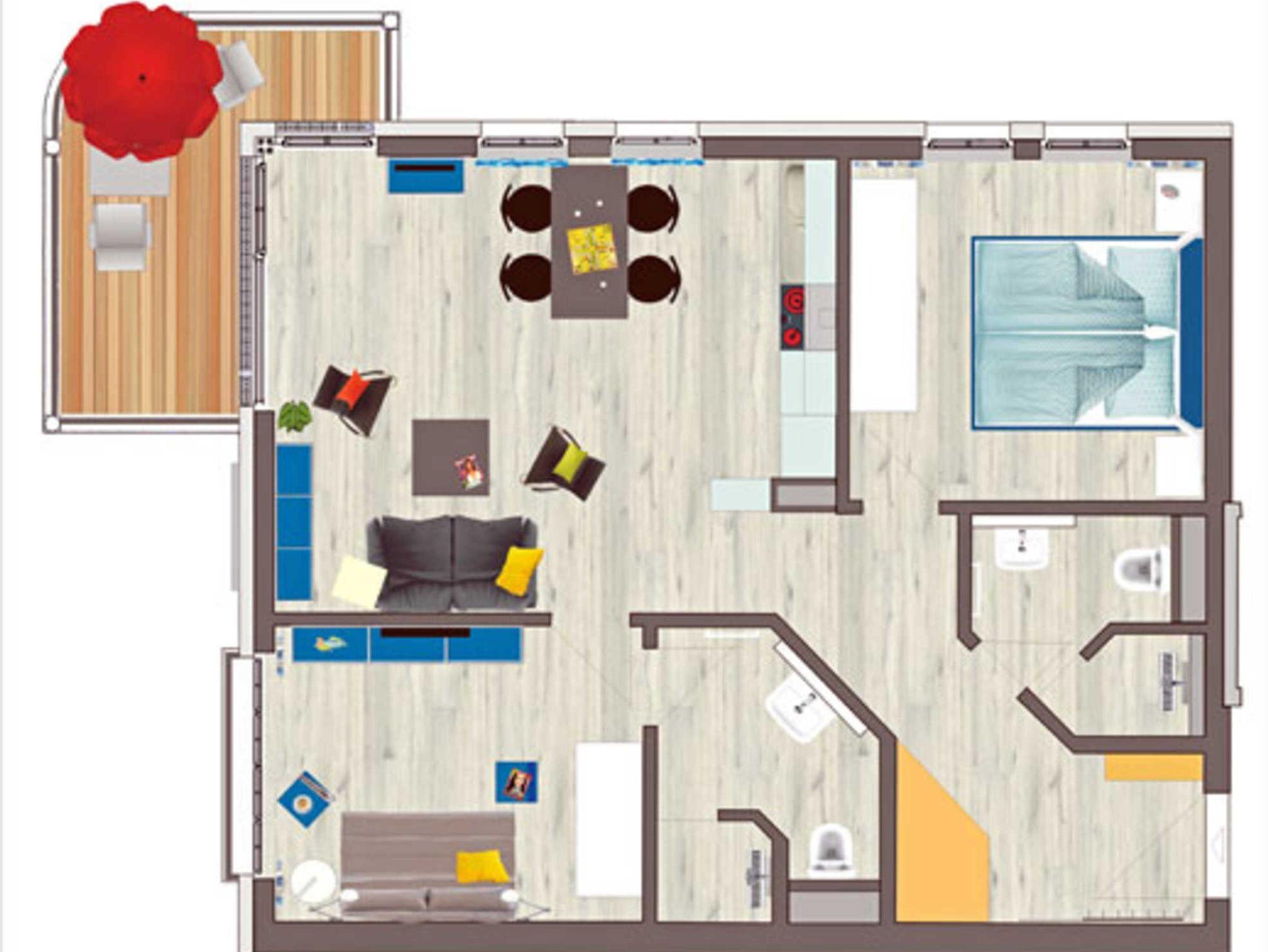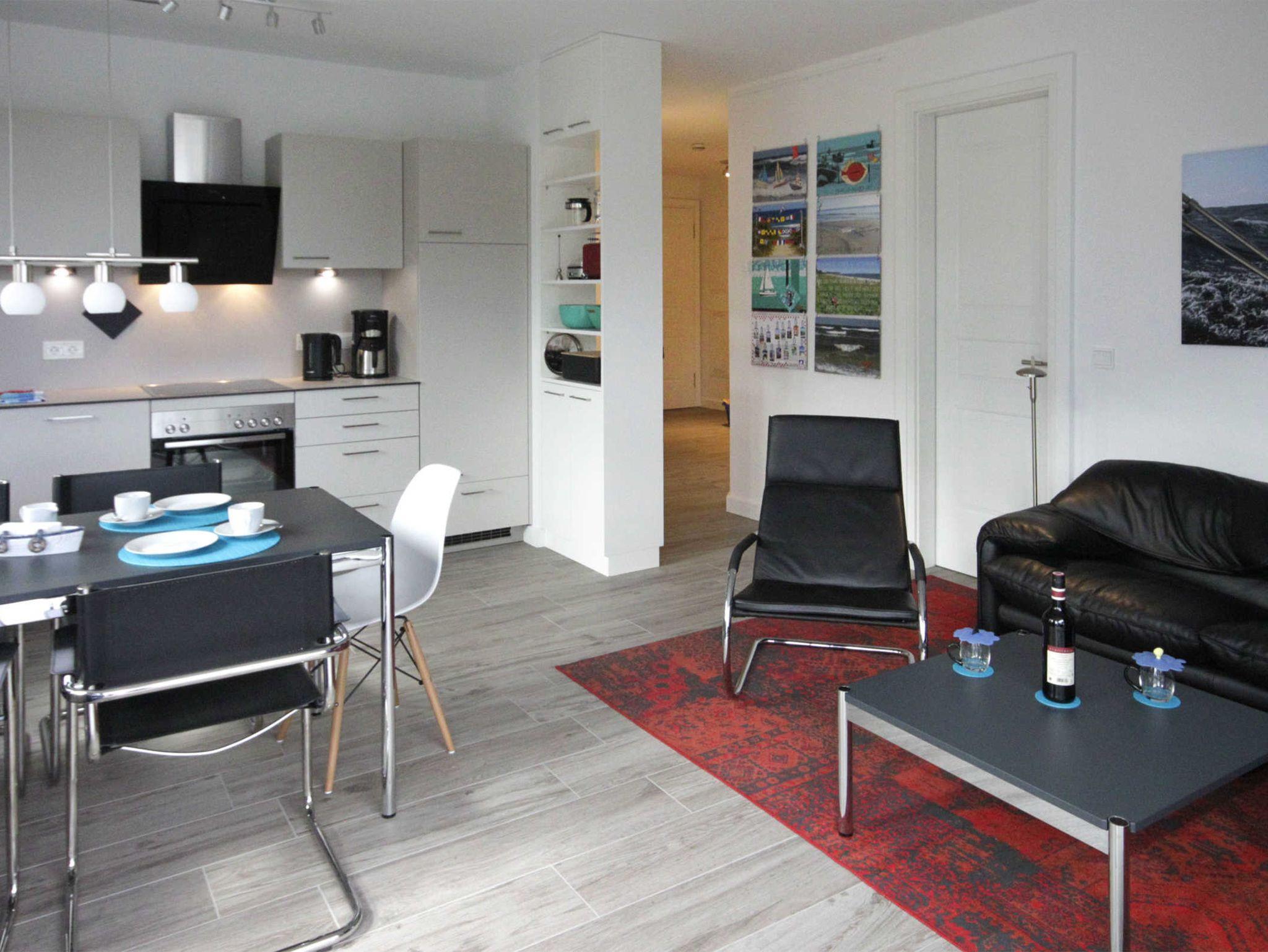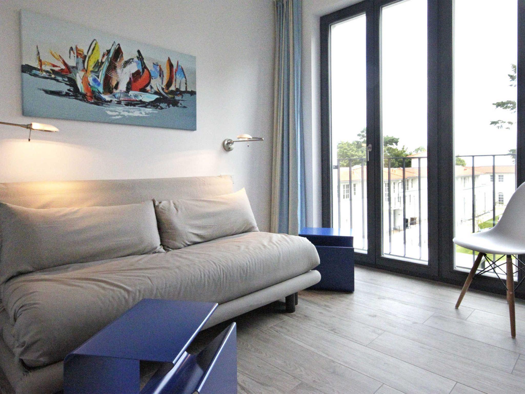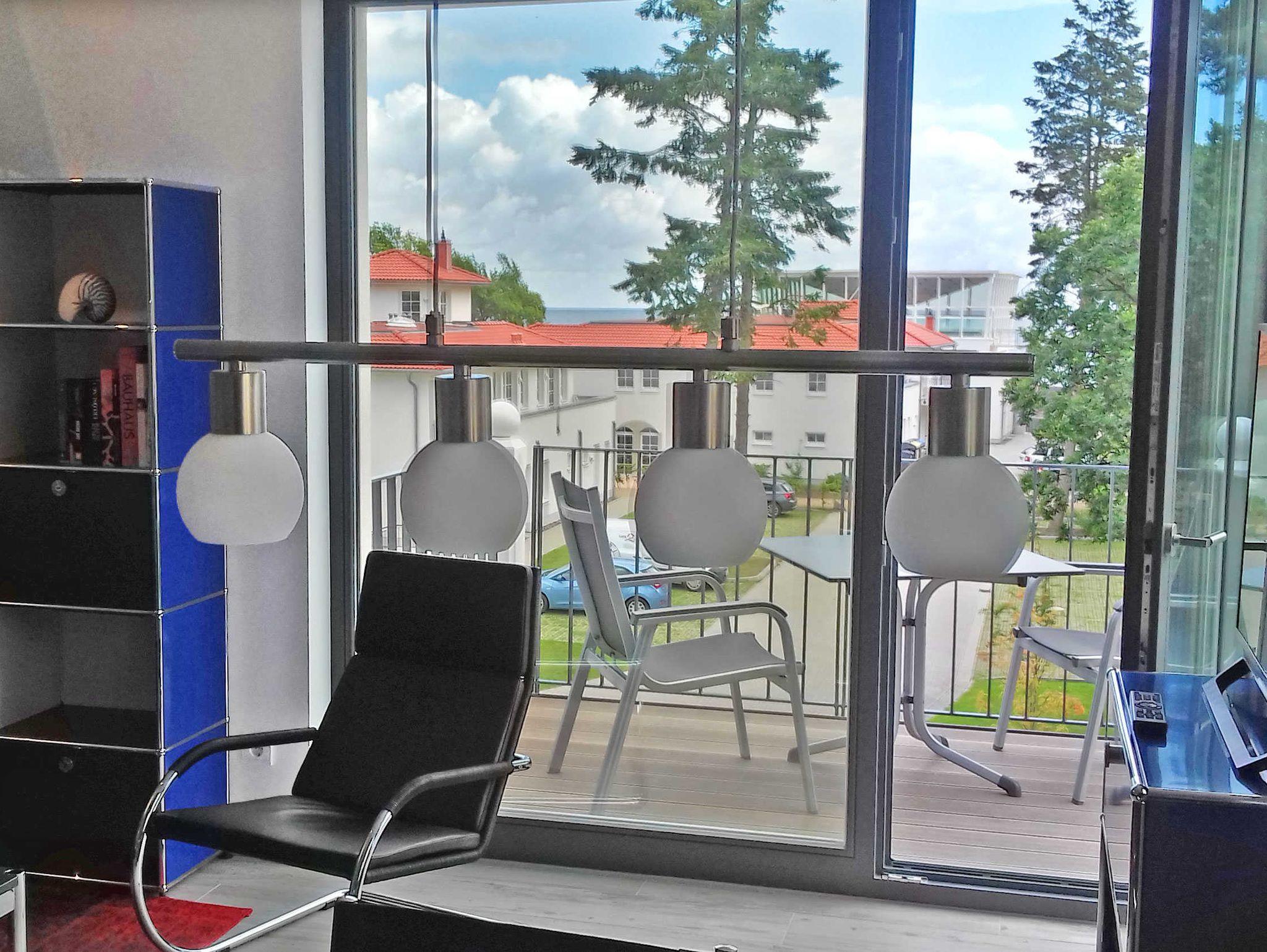 Moderne 3-Zimmer-Ferienwohnung mit Meerblick für bis zu 4 Personen in der neu erbauten Villa Andrea,welche sich in bester Lage zum Strand befindet - direkt an der Promenade von Baabe. Die 66 qm große Wohnung mit Balkon verfügt über 2 Schlafzimmer und tollem Wohn-/Esszimmer inkl. bestens ausgestatteter Küchenzeile mit charmantem Essbereich und gemütlichem Sofabereich mit Couch und Sesseln. Die Villa Andrea ist ausgestattet mit Lift, WLAN, Tiefgaragenstellplatz und einer Gemeinschaftssauna im Souterrain. Ein schön angelegter Garten umgibt das Haus.