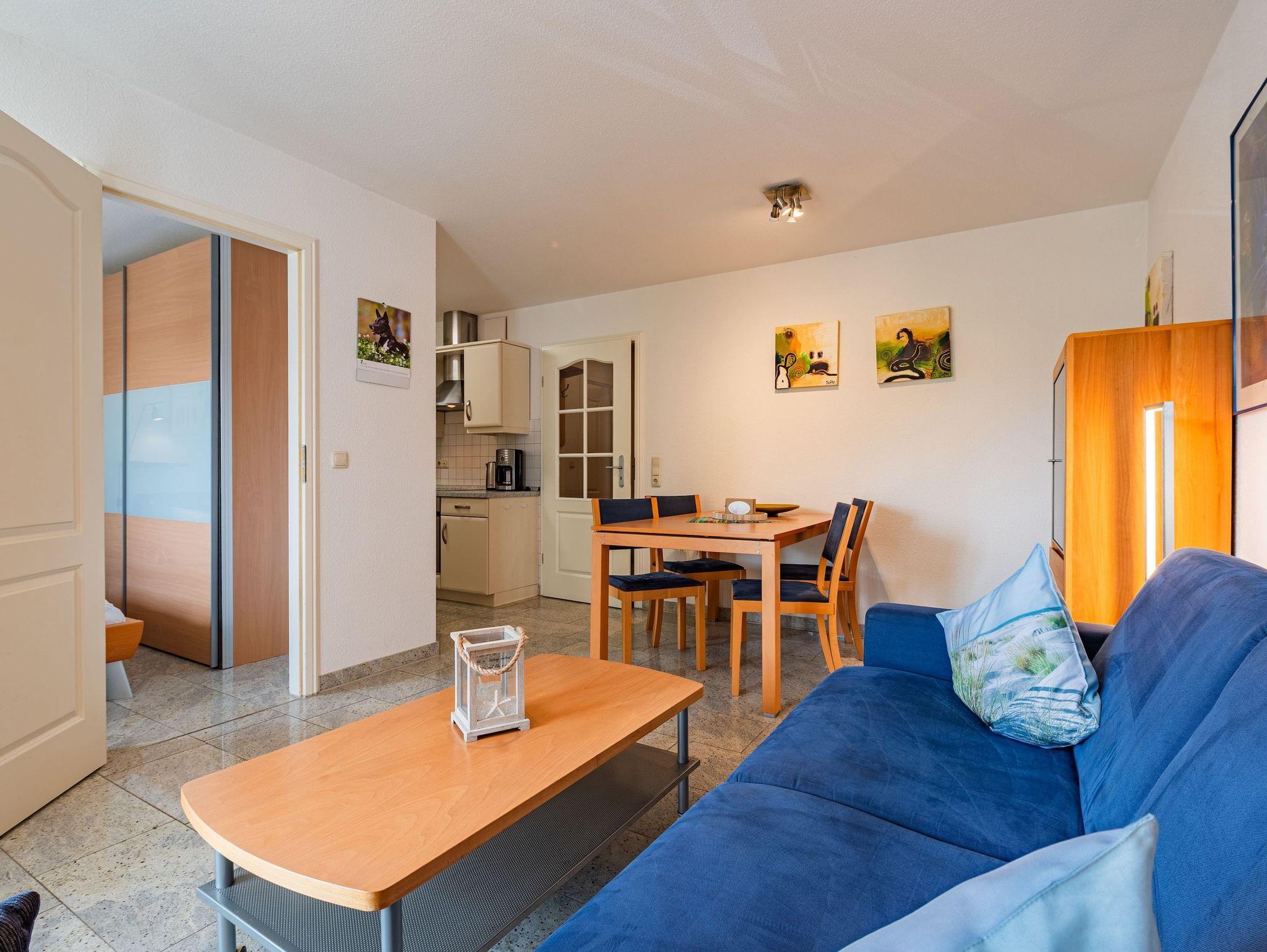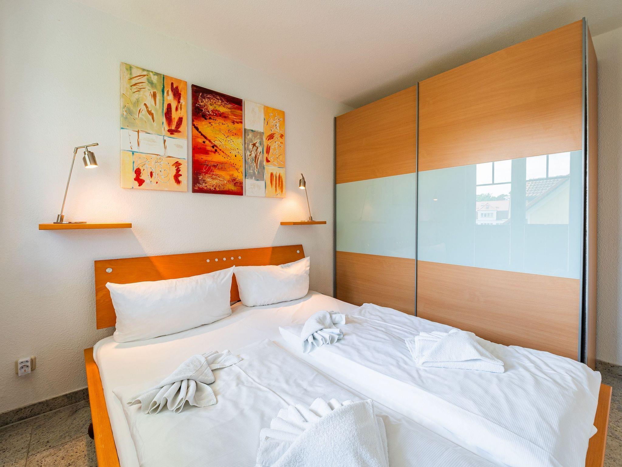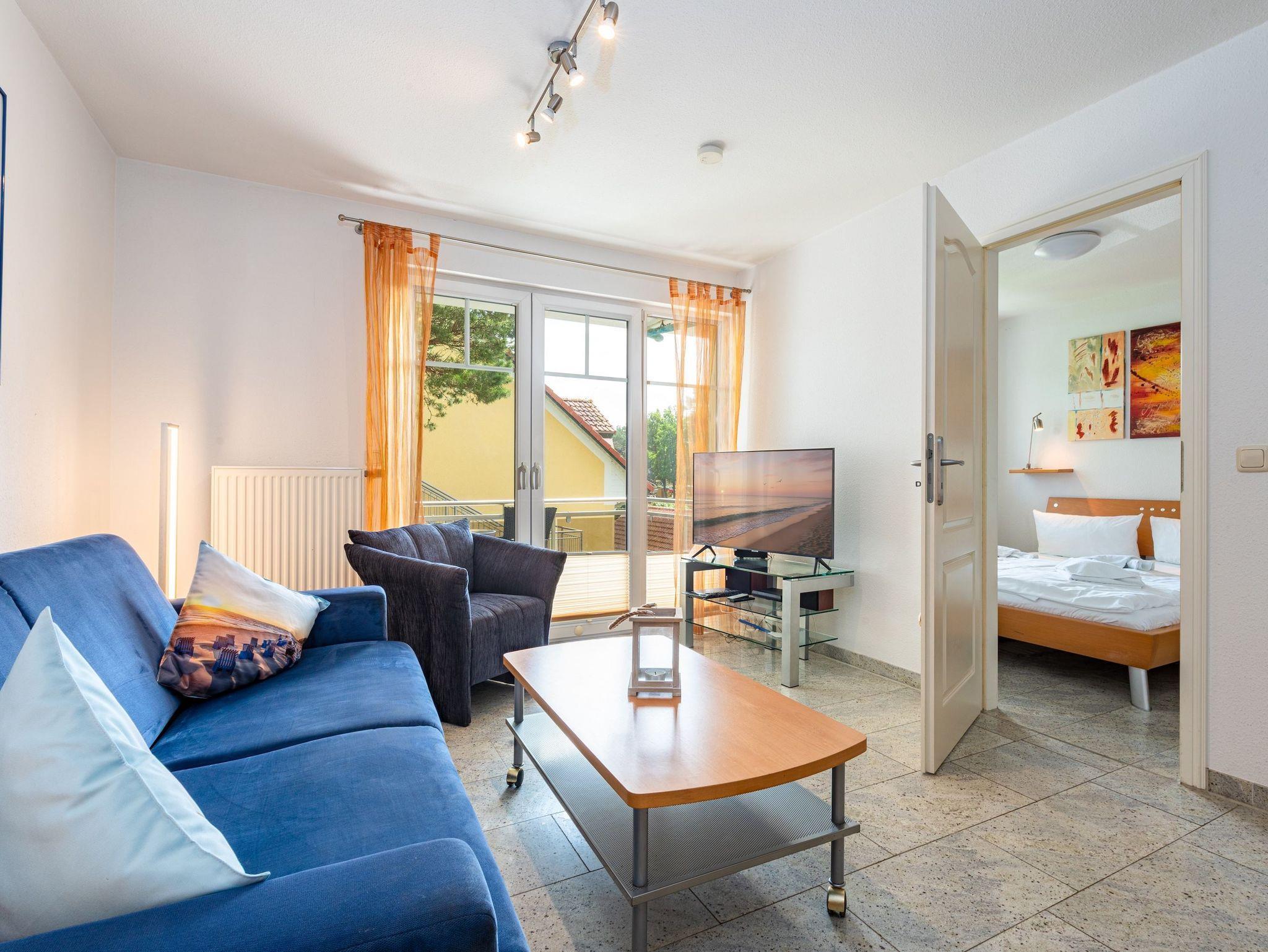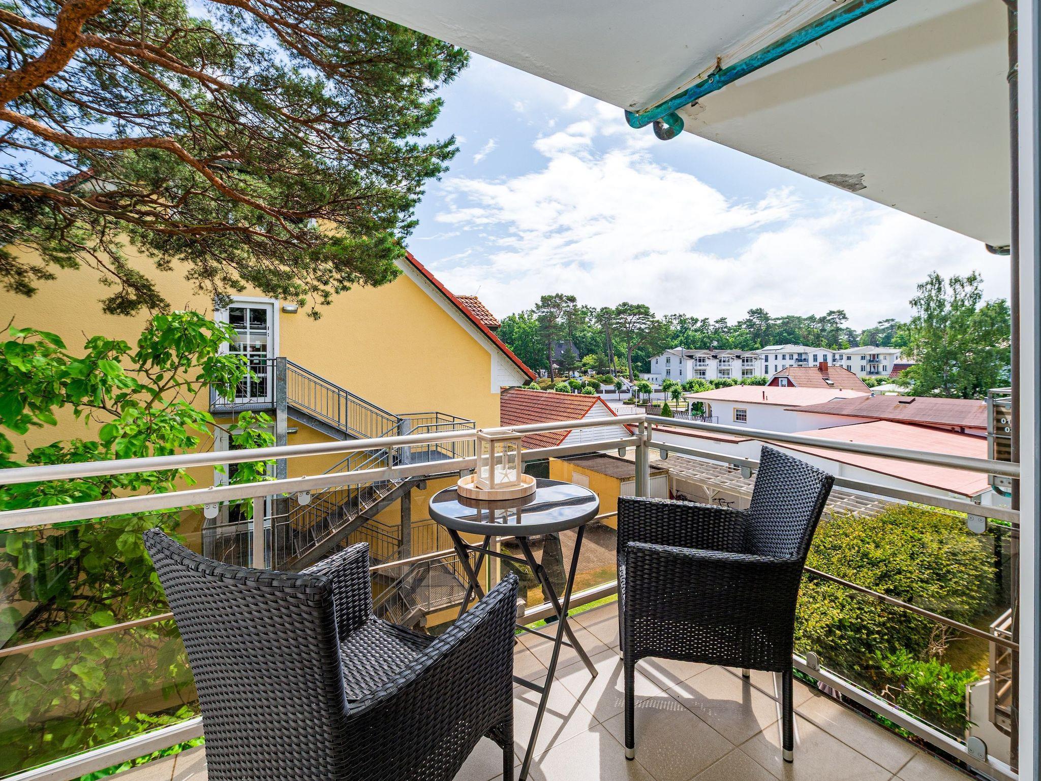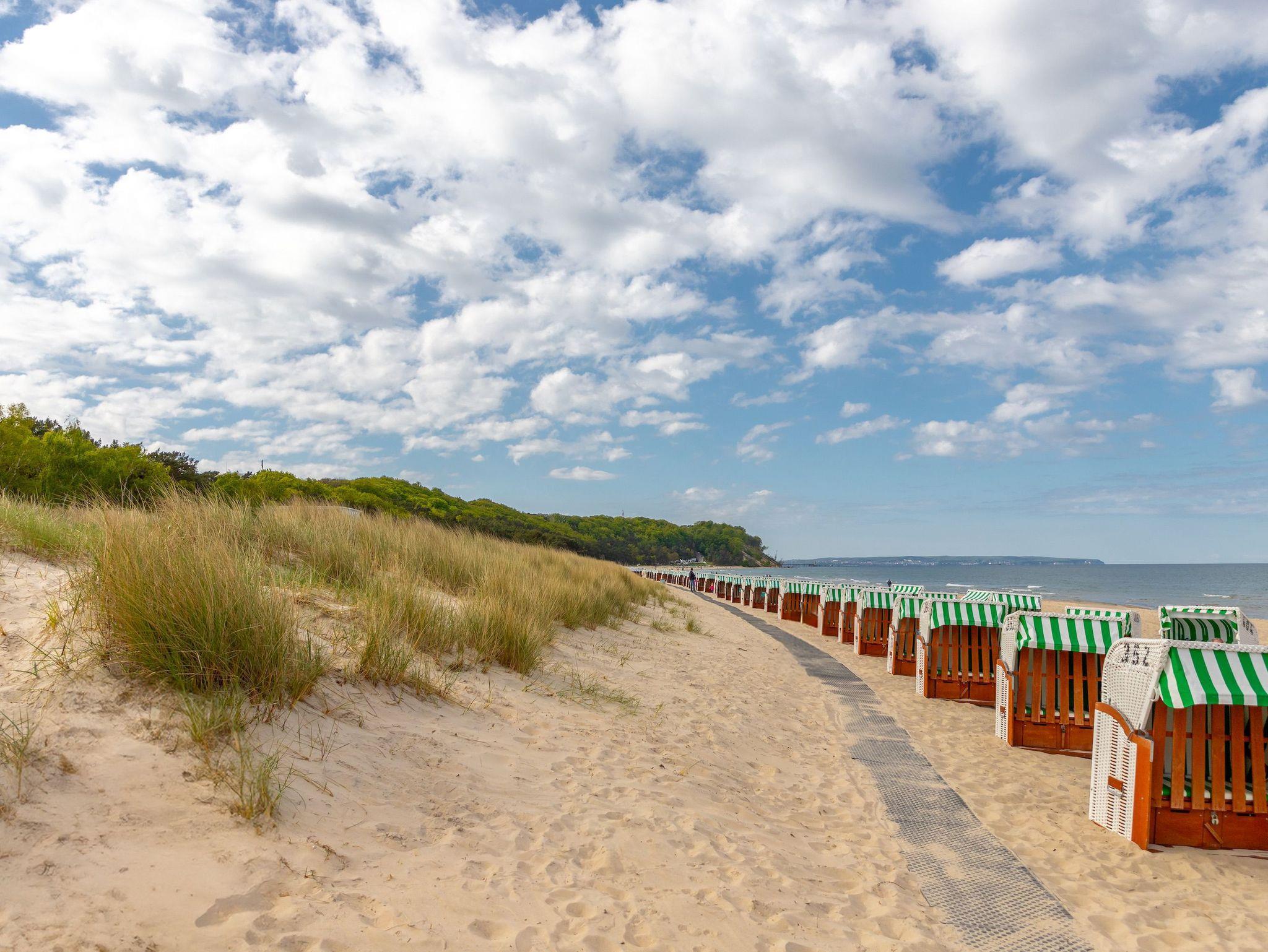 Die Wohnung verfügt über ein separates Schlafzimmer, ein modernes Badezimmer sowie einen stilvoll eingerichteten Wohn- und Essbereich. Ein besonderes Highlight ist der eigene Balkon mit seitlichem Meerblick ? perfekt, um die frische Ostseeluft zu genießen und den Tag entspannt ausklingen zu lassen. Der feinsandige Strand ist nur ca. 150 Meter entfernt und fußläufig erreichbar.