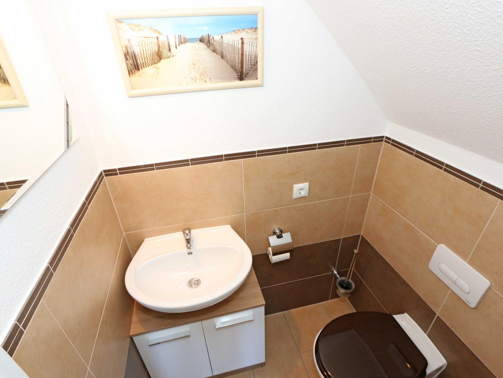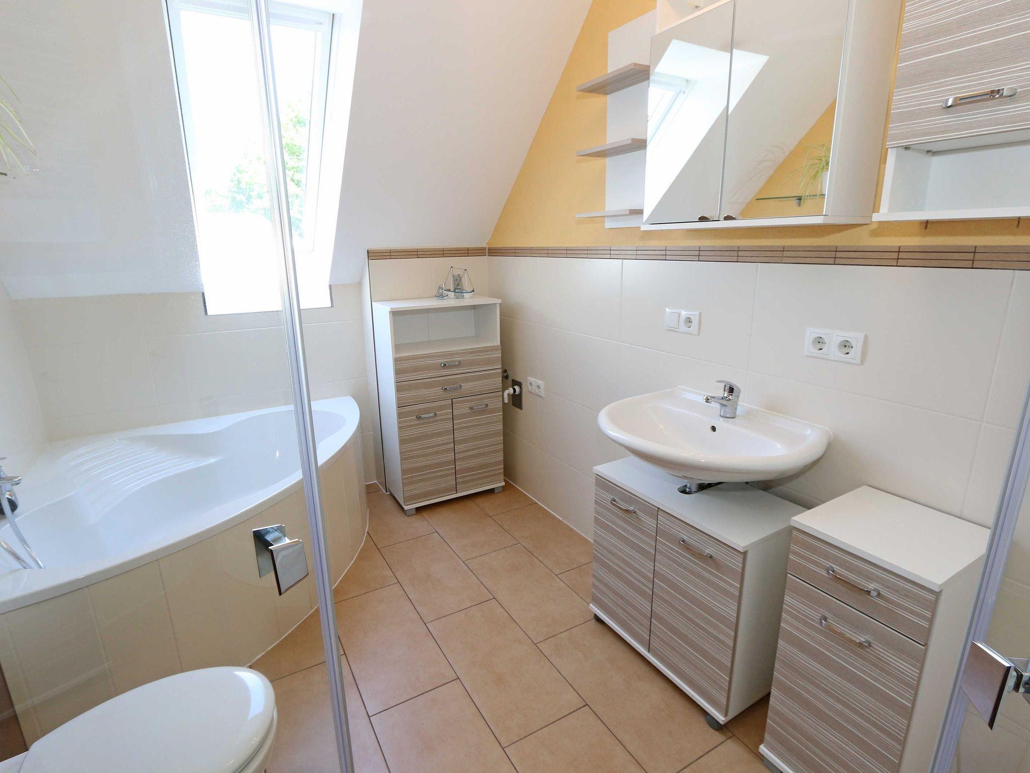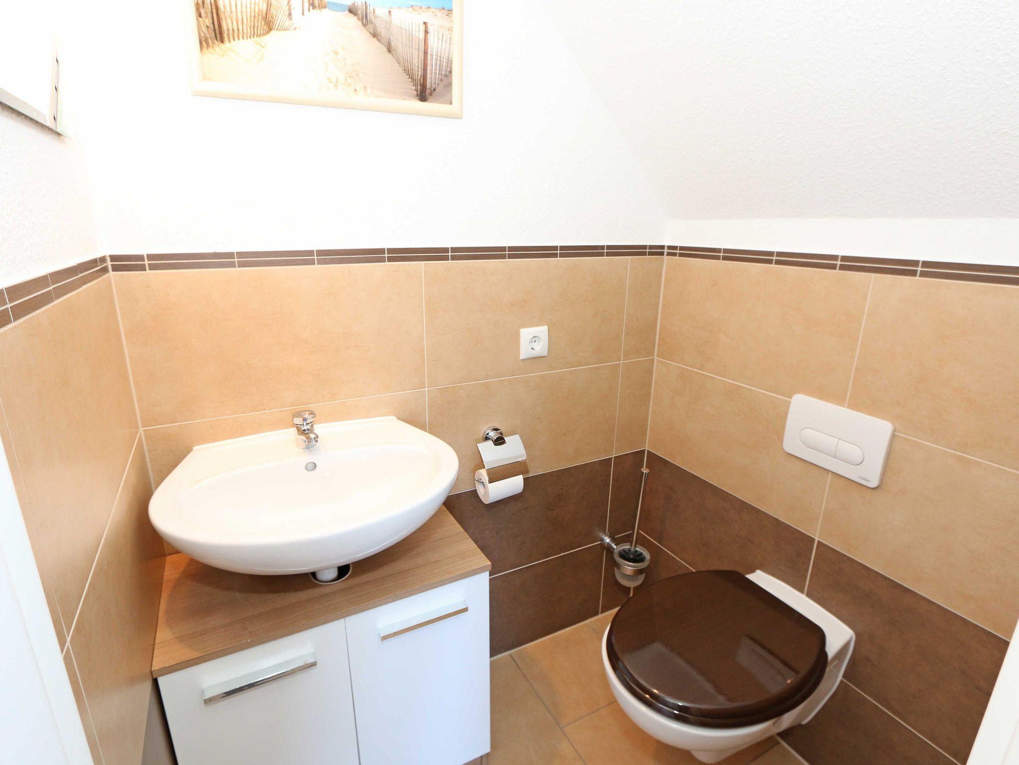 Die großzügige Nichtraucherferienwohnung 02, welche sich über 2 Etagen erstreckt, befindet sich in der 1. Etage des Hauses. Mit Ihren ca. 90 m² bietet Sie ausreichend Platz für max. 6 Erwachsene + 2 Kleinkinder bis 3 Jahre im Kinderreisebett. Auf einer Ebene befinden sich ein Schlafzimmer, ein großes Bad sowie die großzügige Küche mit angrenzendem Wohnbereich. Der gemütliche Wohnbereich umfasst eine große Couchecke mit Couchtisch, Leselampe, Sideboard, Smart-TV sowie eine Mini-Stereo-Anlage. An kühleren Tagen sorgt ein Kamin für Gemütlichkeit und Wärme. Auch auf einen Internetanschluss (WLAN) brauchen Sie im Urlaub nicht verzichten. Dieser ist inklusive für Sie. Von hier gelangen Sie auf den bestuhlten Süd/West Balkon. Die angrenzende und vollausgestattete Küche verfügt über einen Geschirrspüler, Backofen mit Ceranfeld und Abzugshaube, einen großen Kühlschrank mit Eisfach, Mikrowelle, Kaffeemaschine, Toaster, Wasserkocher und diverse Küchenutensilien. Ein Esstisch rundet diesen Bereich ab. Das 1. Schlafzimmer verfügt über ein Doppelbett (1,80 m x 2,00 m), verstellbare Lattenroste, Nachttischablagen, einen Kleiderschrank, Verdunklungsmöglichkeit sowie ein Smart-TV. Das großzügige Tageslicht-Bad umfasst eine Eckbadewanne, eine Dusche, ein WC, einen Waschtisch sowie einen Fön. Über eine Treppe vom Küchenbereich gelangen Sie in die obere Etage. Das 2. Schlafzimmer mit Dachschrägen verfügt über ein Doppelbett (1,80 m x 2,00 m), einen Kleiderschrank, Verdunklungsmöglichkeiten sowie einen Schreibtisch. Das 3. Schlafzimmer verfügt über ein Doppelbett (1,60 m x 2,00 m), verstellbare Lattenroste, Nachttischablagen, einen Kleiderschrank, Verdunklungsmöglichkeiten sowie einen Smart-TV. Ein Gäste-WC mit kleinem Waschbecken rundet die obere Etage ab. Alle Räumlichkeiten wurden mit Fliesen sowie einer Fußbodenheizung ausgestattet. Mit einem eigenen und mitgebrachten Schlafplatz sind max. 2 Haustiere gegen eine Gebühr gern gesehene Gäste. Ihre mitgebrachten oder auch geliehenen Fahrräder können Sie im Schuppen unterstellen. Im separaten Waschhaus können Sie gegen eine Kasse des Vertrauens eine Waschmaschine und einen Trockner nutzen. Ein PKW-Stellplatz mit Ladestation befindet sich direkt am Haus. Die Erstausstattung eines Wäschepaketes (komplette Bettwäsche, 1 Duschhandtuch, 1 kleines Handtuch) können Sie bis 14 Tage vor Anreise gegen einen Aufpreis dazu buchen oder durch eigene ergänzen. Ab 2 gebuchten Paketen erhalten Sie einmalig 1 Geschirrhandtuch und 1 Duschvorleger hinzu.