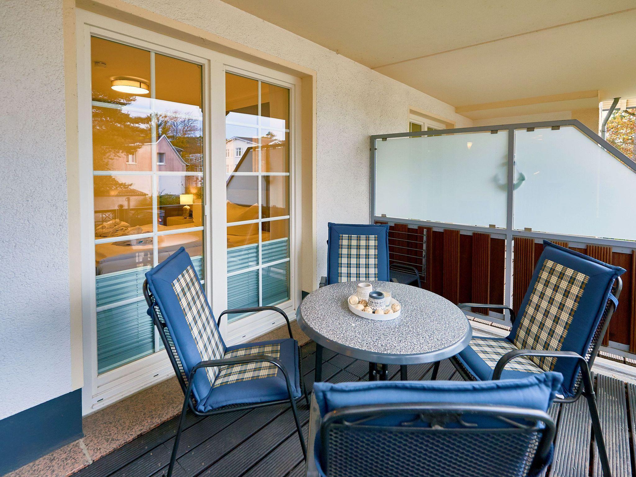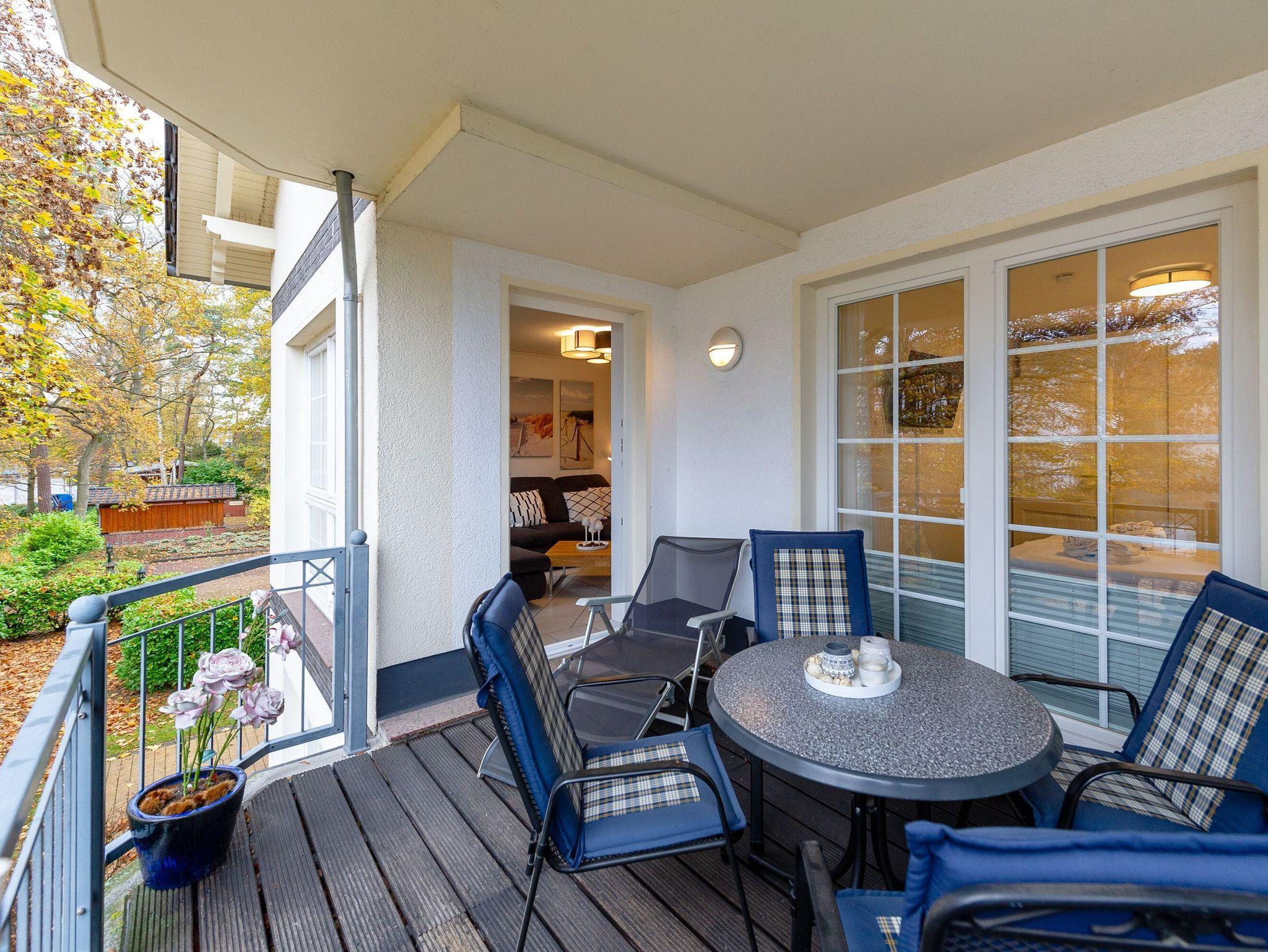 Der möblierte Balkon ist vom Wohn- und Schlafzimmer aus zu betreten. Hier können Sie in der gesunden Ostseeluft frühstücken, einfach die Seele baumeln und den Tag Revue passieren lassen.