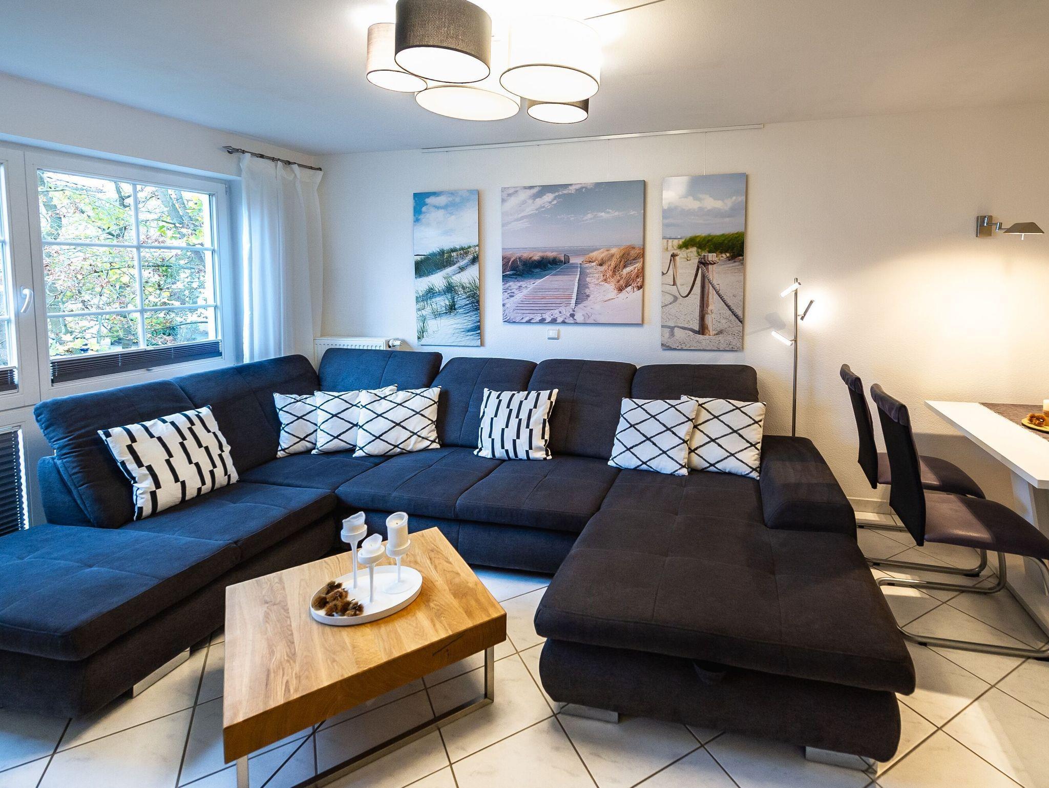 Das kombinierte Wohn-/Schlafzimmer verfügt über ein ausklappbares Federkern-Sofa, einen großformatigen SMART-TV und eine kleine Auswahl an Spielen und Literatur. Kostenfreies W-LAN ist natürlich ebenfalls vorhanden.