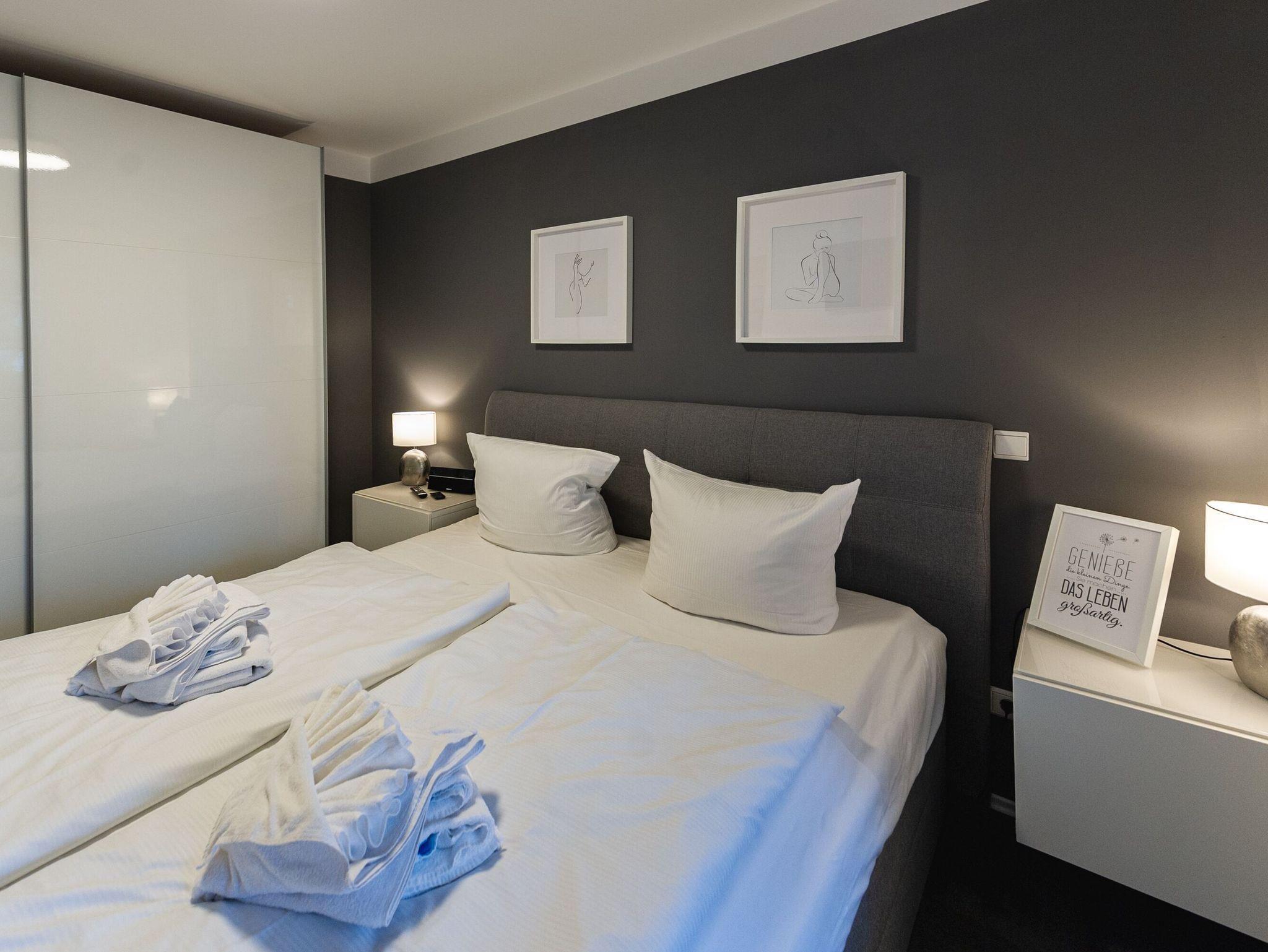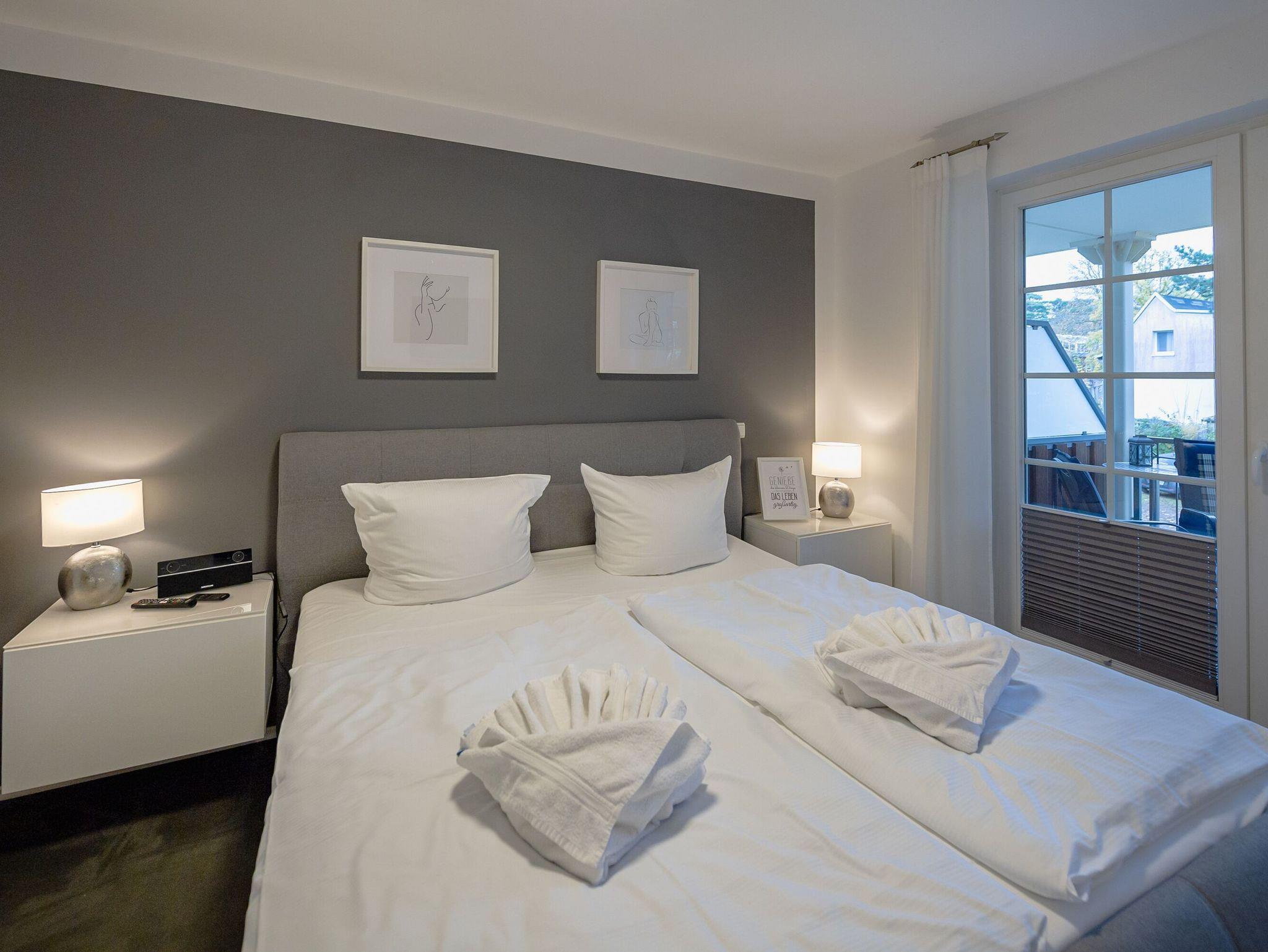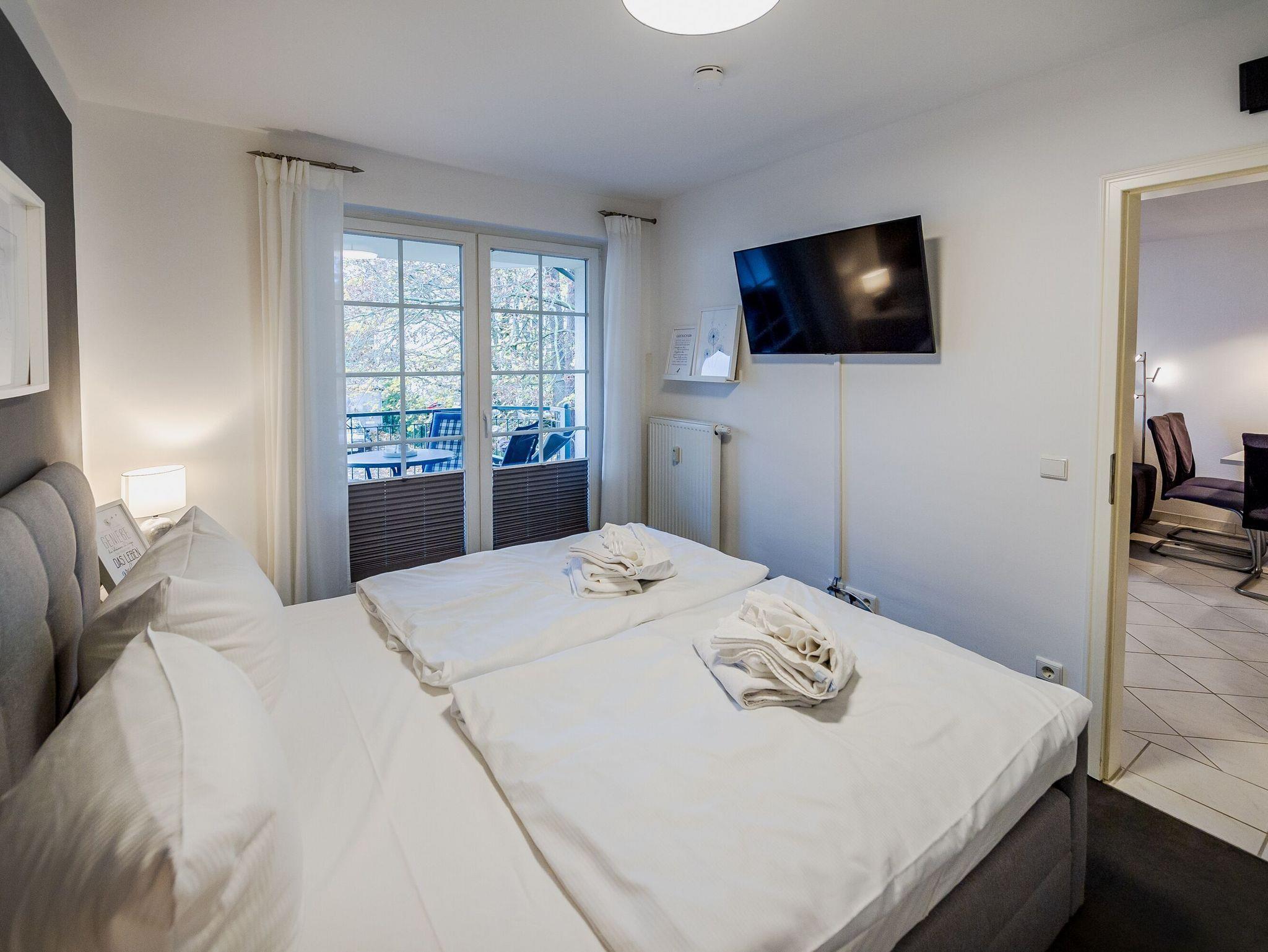 Im Schlafzimmer verspricht ein komfortables Boxspring-Doppelbett (1,80 x 2,00 m) süße Träume. Der Jahreszeit angepasste Sommer- bzw. Winterbetten sowie Verdunkelungsmöglichkeiten an den Fenstern sind selbstverständlich vorhanden. Der geräumige Kleiderschrank bietet Platz für Ihre Urlaubsgarderobe. Ein zweites Fernsehgerät und ein Internetradio sorgen für willkommene Abwechslung.