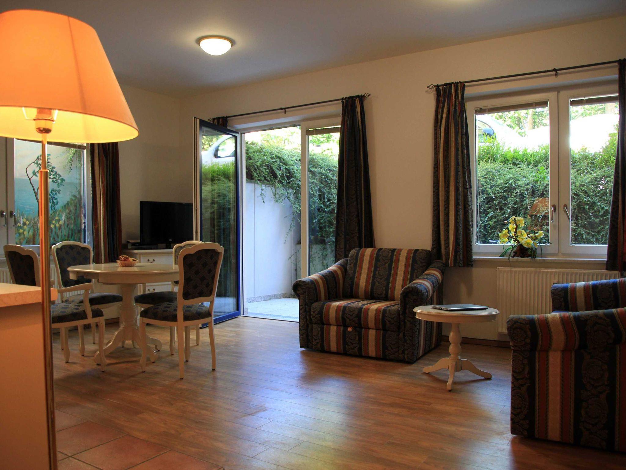 Das Appartement liegt auf der ruhigen Rückseite der Villa Wauzi und verspricht entspannte und erholsame Nächte. Es enthält kostenfreies Wlan und Flat-TV. Ein KFZ-Stellplatz im Hof ist inklusive, eine abschließbare Unterstellmöglichkeit für Fahrräder im Haus vorhanden. Das Appartement verfügt über eine Gegensprechanlage. Ihre Wertsachen verschließen Sie sicher im Zimmersafe.