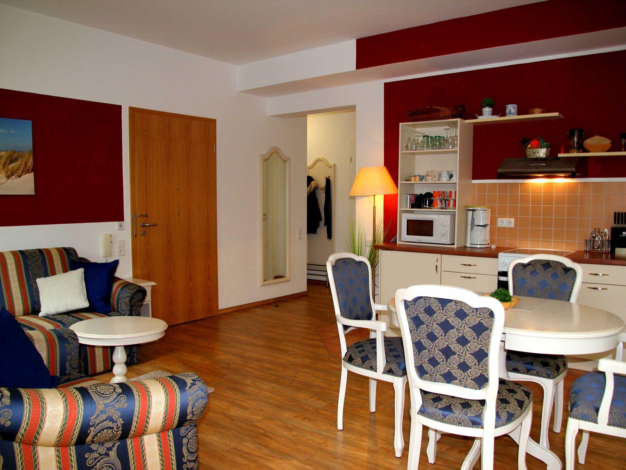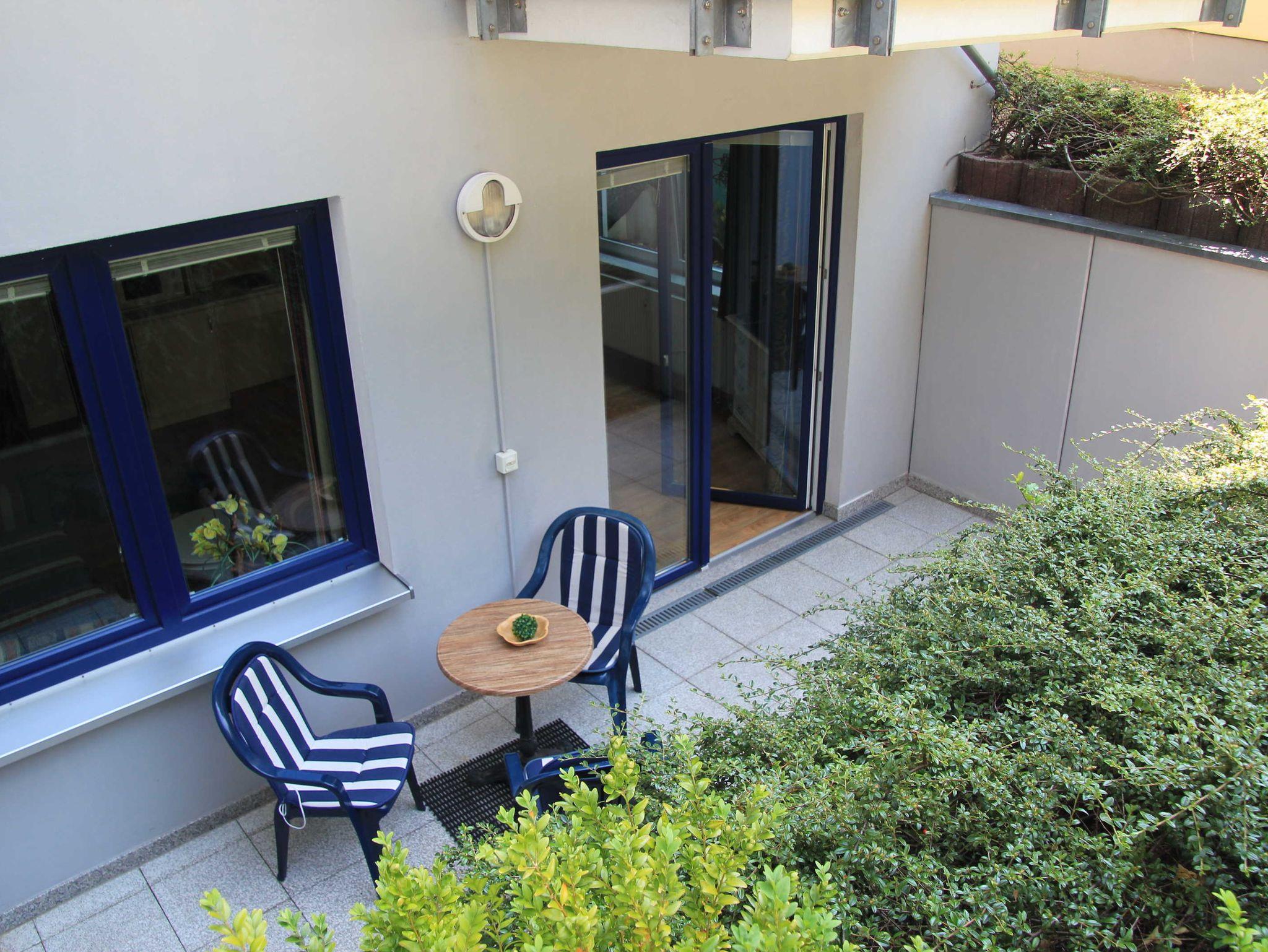 2-Zimmer Fewo für bis zu 4 Personen+Baby, rollstuhlgerecht mit Terrasse, kostenlosem WLan, Küchenzeile, Waschmaschine, TV Flatscreen und kostenfreiem KFZ-Stellplatz, 150m zum Strand.