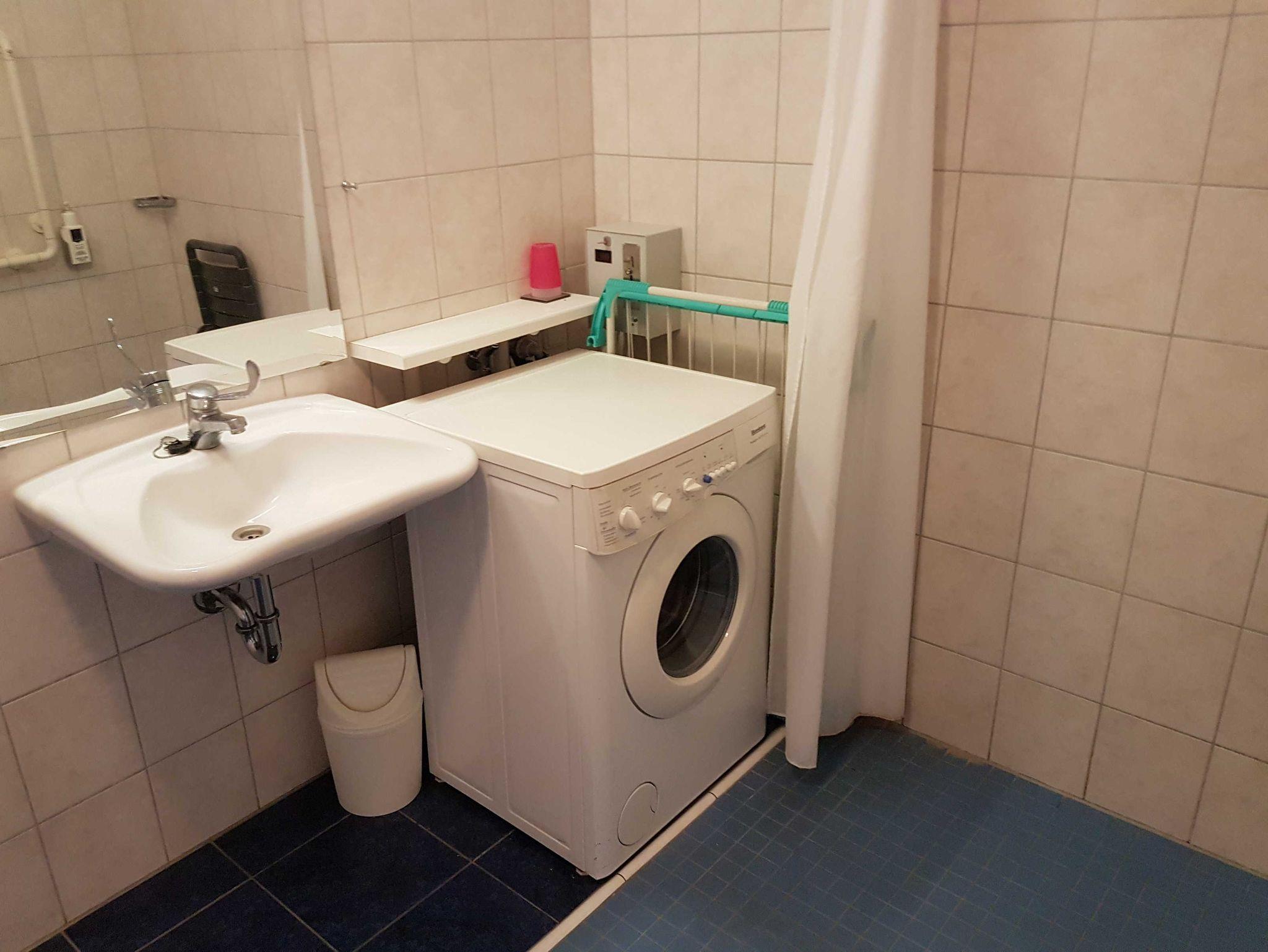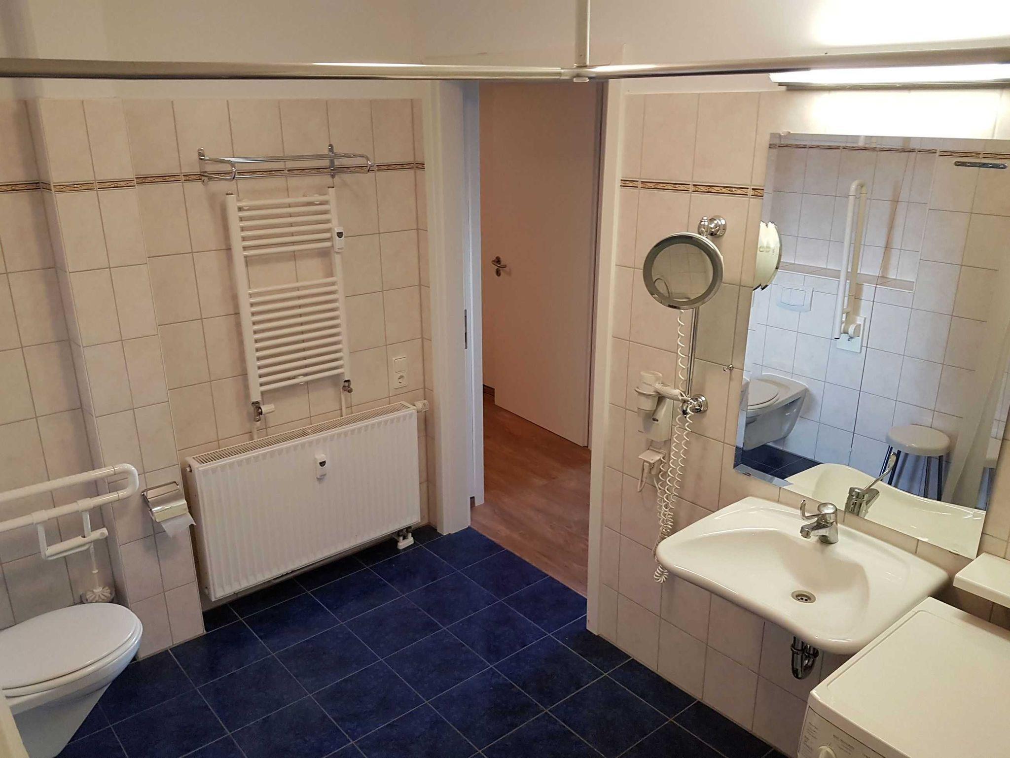 Das komplette Appartement ist barrierefrei und somit rollstuhlgerecht ausgestattet. Sämtliche Einrichtungen wie Spüle, Herd, Waschbecken, etc. sind unterfahrbar. Die Dusche und alle Türschwellen, auch zur Terrasse, sind ebenerdig und barrierefrei passierbar. Ins Souterrain gelangen Sie über das Treppenhaus mittels integriertem Aufzug. Egal, ob Türbreiten oder Handgriffe von Türen und Fenstern, Badeinrichtung, Küchenzeile oder Schlafbereich, überall wurde darauf geachtet, den Belangen von Rollstuhlfahrern gerecht zu werden und zudem ausreichend Platz zum Wenden zu bieten.