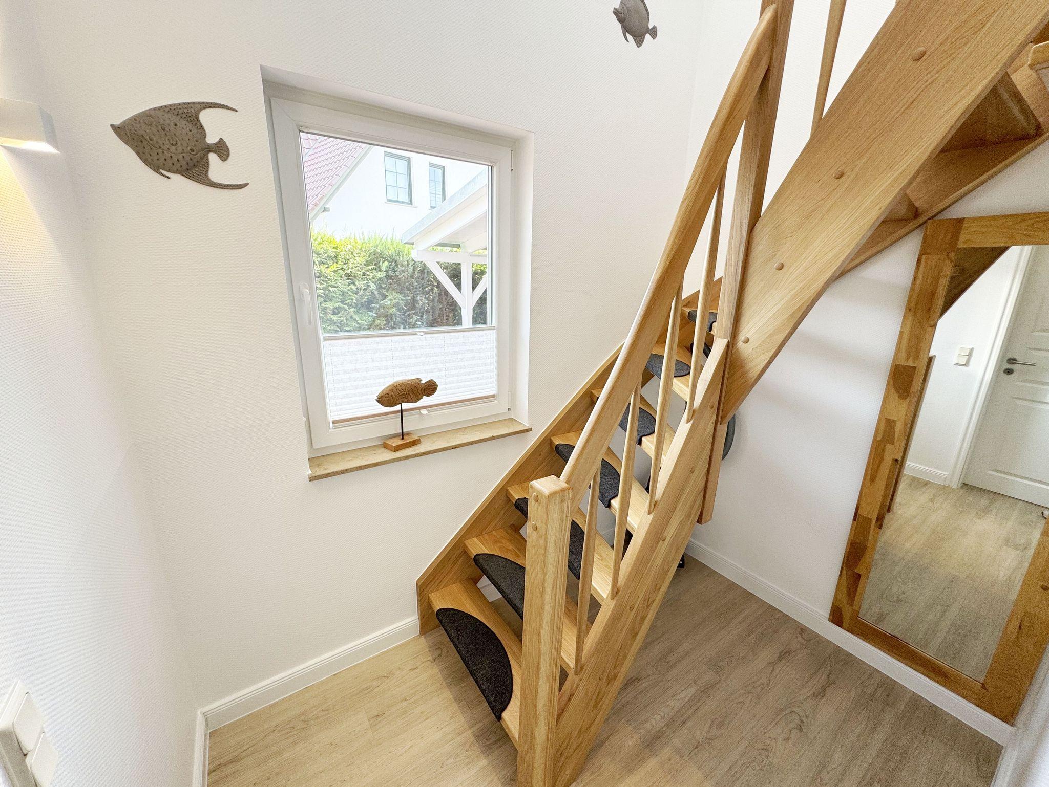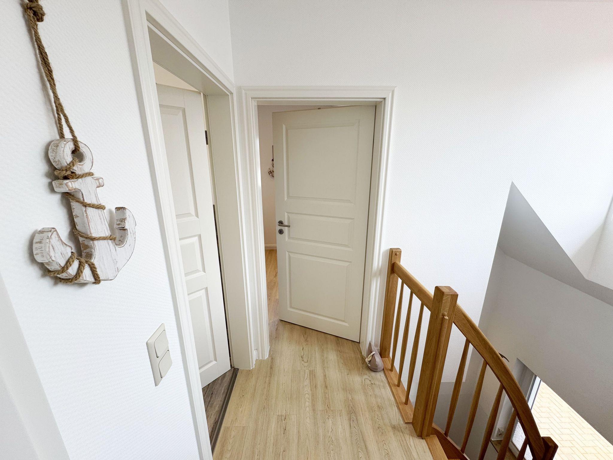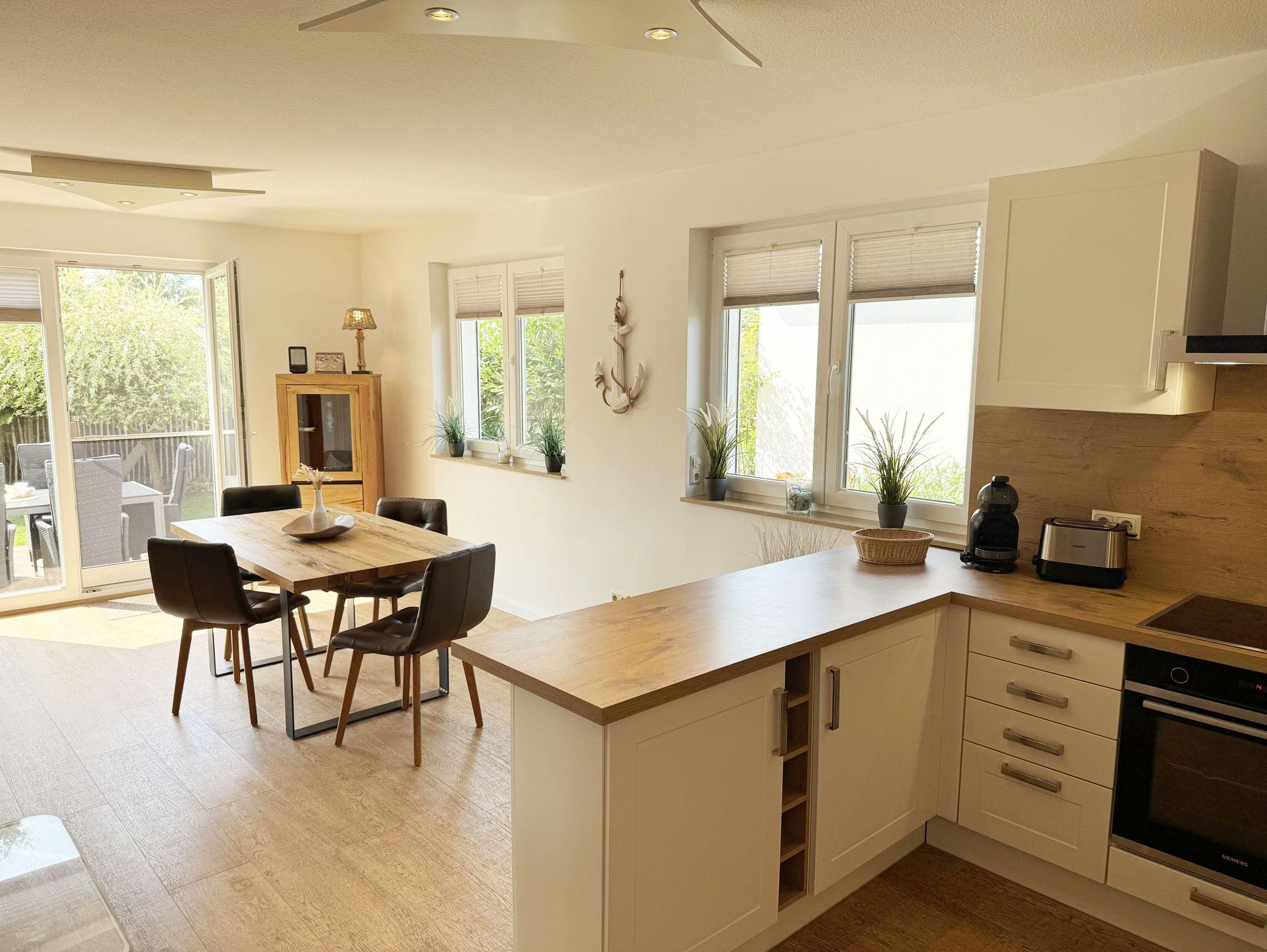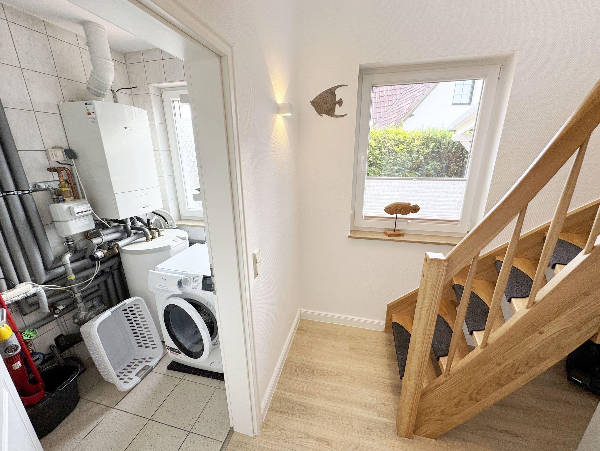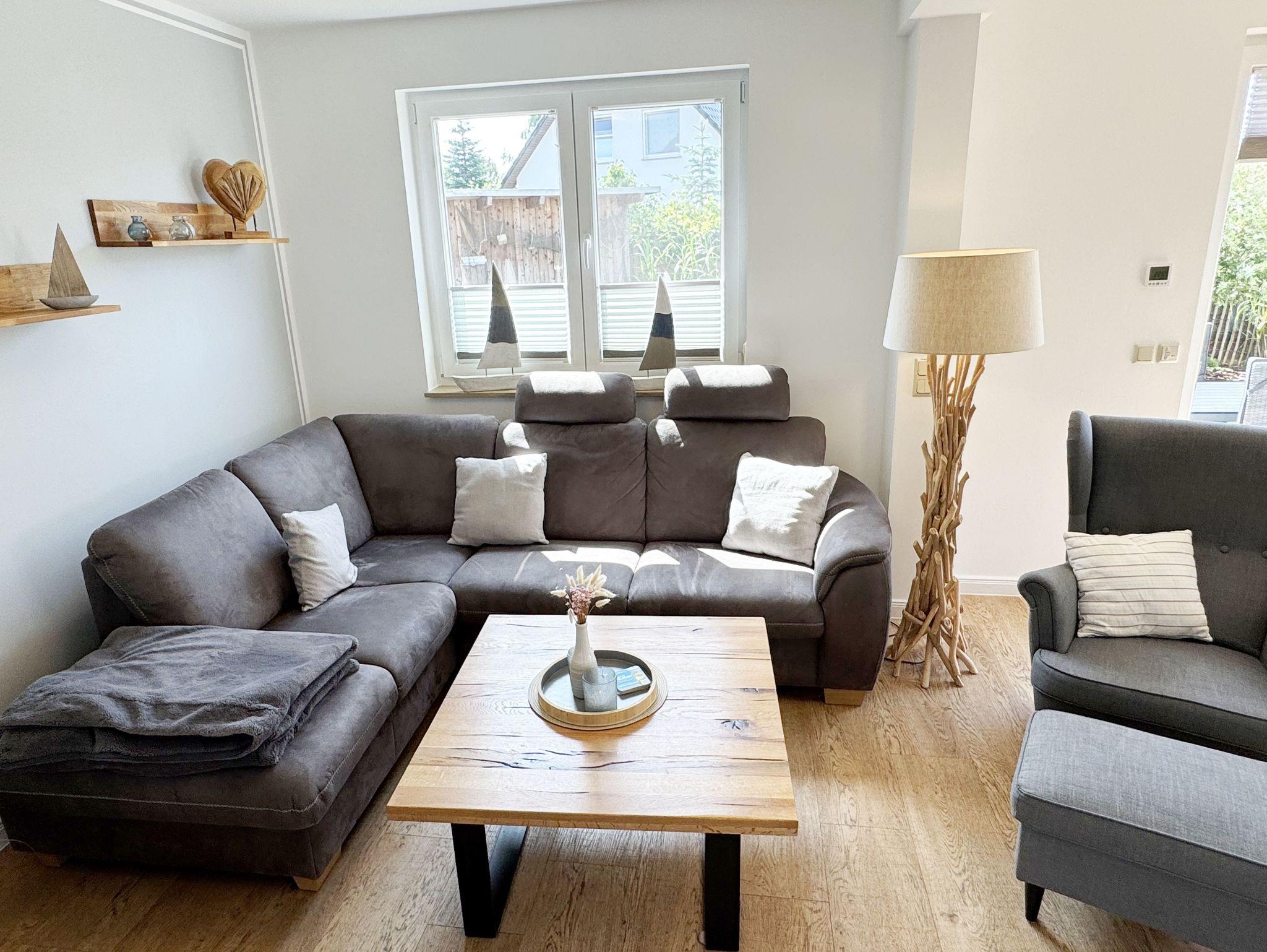 Willkommen im Ferienhaus „Uns lütt Hus“, im schönen und erholsamen Ostseebad Baabe. Das Nichtraucherferienhaus mit seinen ca. 95 m² erstreckt sich auf über 2 Etagen und bietet Ihnen Platz für max. 4 Erwachsene. Mit viel Liebe zum Detail wurde das Haus eingerichtet und bietet Ihnen auch in der kalten Jahreszeit einen angenehmen Rückzugsort, um Ihre Seele baumeln zulassen. Eine Sauna im Eingangsbereich ziert das Haus und bietet Ihnen eine kleine aber feine Wellnessoase. Der großzügige Koch-, Ess- und Wohnbereich mit seinen ca. 39 m² lässt keine Wünsche offen. Die offene Küchenzeile ist mit einem modernen Pyrolyse Backofen, Glaskeramikkochfeld, Dunstabzugshaube, Granitspüle, Einbau-Kühl-Gefrierkombination, Kaffeemaschine, Pad-Maschine (Dolce Gusto), Heißluftfriteuse (Ninja), Wasserkocher, Toaster, Eierkocher, Mixer und vielen weiteren kleinen Küchenhelfern ausgestattet. Angrenzend an den Küchenbereich schließt sich der großzügige Wildeichenholzesstisch mit seinen 4 Lederstühlen und Highboard an. Der Wohnbereich mit seiner gemütlichen Eckcouch und dazugehörigem Couchtisch, Leselampe, TV-Bord mit LED Smart-TV mit Sky (Auswahl von Sport, Film, Dokumentation), Blu Ray Player und einem Teufel Heimkinosystem laden für gemütliche und erholsame Stunden ein. Abgerundet wird dieser Bereich durch einen Ohrensessel mit Hocker und Blick auf den Kamin, welcher in der kalten Jahreszeit für eine angenehme Wärme sorgt. Kaminholz ist für Sie inklusive. Eine kleine Auswahl an Gesellschaftsspielen, Urlaubslektüren und DVDs stehen Ihnen außerdem zur Verfügung. Der technische Bereich wird zusätzlich durch einen WLAN Zugang (100 Mbit/S) abgerundet. Das erste der Tageslichtduschbäder befindet sich im Erdgeschoss und ist mit einer ebenerdigen Klarglasdusche der Firma Sprinz und einer XXL Regendusche ausgestattet. Weiterhin finden Sie ein WC, einen Waschtisch, einen Handtuchtrockner und einen Fön im Bad. Vom Wohn-/Essbereich gelangen Sie auf Ihre südausgerichtete Terrasse, die mit bequemen und verstellbaren Terrassenstühlen und einer elektrischen Markise sowie 2 Sonnenliegen ausgestattet ist. Auch ein Holzkohlegrill der Firma Weber lässt den Abend auf der Terrasse bei einem guten Essen und einem Gläschen Wein ausklingen. Vom Flur erreichen Sie durch eine etwas steile Holztreppe Ihre beiden Schlafzimmer sowie ein weiteres Tageslichtbad. Das große Schlafzimmer verfügt über ein Doppelbett (1,80 m x 2,00 m) mit Gel-Kaltschaummatratzen (0,90 m x 2,00 m), verstellbare Lattenroste am Kopf und Fußende, Nachttischablagen, DAB-Radio Wecker von Teufel, LED TV, einen Ohrensessel mit Hocker, einen Safe, einen Elektrokamin sowie einen großzügigen Einbau-Kleiderschrank. Das kleinere der Schlafzimmer wurde mit einem Doppelbett (1,60 m x 2,00 m) und Gel-Kaltschaummatratzen (0,80 m x 2,00 m), verstellbare Lattenroste am Kopf und Fußende, Nachttischablagen, DAB-Radio Wecker von Teufel sowie einer kleinen Sitzecke bestehend aus einem Sessel mit Ablagen, ausgestattet. Für einen ruhigen und erholsamen Schlaf sorgen zusätzlich Verdunklungs-Plissees, elektrische Rollläden sowie Insektenschutzgitter. Das zweite Tageslichtbad im Obergeschoss verfügt wie das Duschbad im Erdgeschoss über eine ebenerdige Klarglasdusche der Firma Sprinz und eine XXL Regendusche. Ein WC, ein Waschtisch, ein Kosmetikspiegel und ein Handtuchtrockner runden das Bad ab. Alle Räumlichkeiten im Ferienhaus sind mit einer Fußbodenheizung und Vinylfußbodenbelag im Holz Look versehen. Nicht nur im Schlafzimmer finden Sie elektrische Rollläden und Insektenschutzgitter! Diese sind im gesamten Haus vorhanden. Im Hauswirtschaftsraum finden Sie eine Waschmaschine mit Trocknerfunktion, einen Staubsauger, Reinigungsutensilien, ein Bügelbrett sowie ein Bügeleisen. Um den sehr kalkhaltigen Wasser auf der Insel Rügen entgegenzuwirken, finden Sie eine Enthärtungsanlage im Haus, die das Wasser enthärtet. Für unsere kleinen Gäste steht ein Hochstuhl sowie ein Kinderreisebett (ohne Bettinlett/mit Zusatzmatratze) und ein Treppenschutz zur Verfügung. Auch ein 4-Beiner ist mit seinem eigenen Schlafplatz gegen eine Gebühr ein gern gesehener Gast. 2 PKW-Stellplätze befinden sich direkt vor dem Haus sowie eine Ladestation für Elektrofahrzeuge (Abrechnung über Nebenkostenpauschale). Auch der vorhandene Carport am Haus bietet Schutz für einen PKW. Ihre geliehenen oder auch mitgebrachten Fahrräder können Sie im großzügigen Schuppen unterstellen. Hier gibt es auch die Möglichkeit, Ihre E-Bikes aufzuladen. Zur Erkundung der Umgebung stehen Ihnen zusätzlich 2 Trekking Räder der Firma Victoria mit Gangschaltung zur Verfügung sowie ein Damenrad der Firma Hartje mit Gangschaltung (kein Vertragsbestandteil). Auf dem kleinen Grundstück finden Sie auch eine Wäschespinne, um Ihre Handtücher nach dem Baden in der Ostsee aufzuhängen. Die Erstausstattung eines Wäschepaketes (komplette Bettwäsche, 1 Duschhandtuch, 2 kleine Handtücher) können Sie bis 14 Tage vor Anreise gegen einen Aufpreis dazu buchen oder durch eigene ergänzen. Ab 2 gebuchten Paketen erhalten Sie einmalig 1 Geschirrhandtuch und 1 Duschvorleger hinzu.