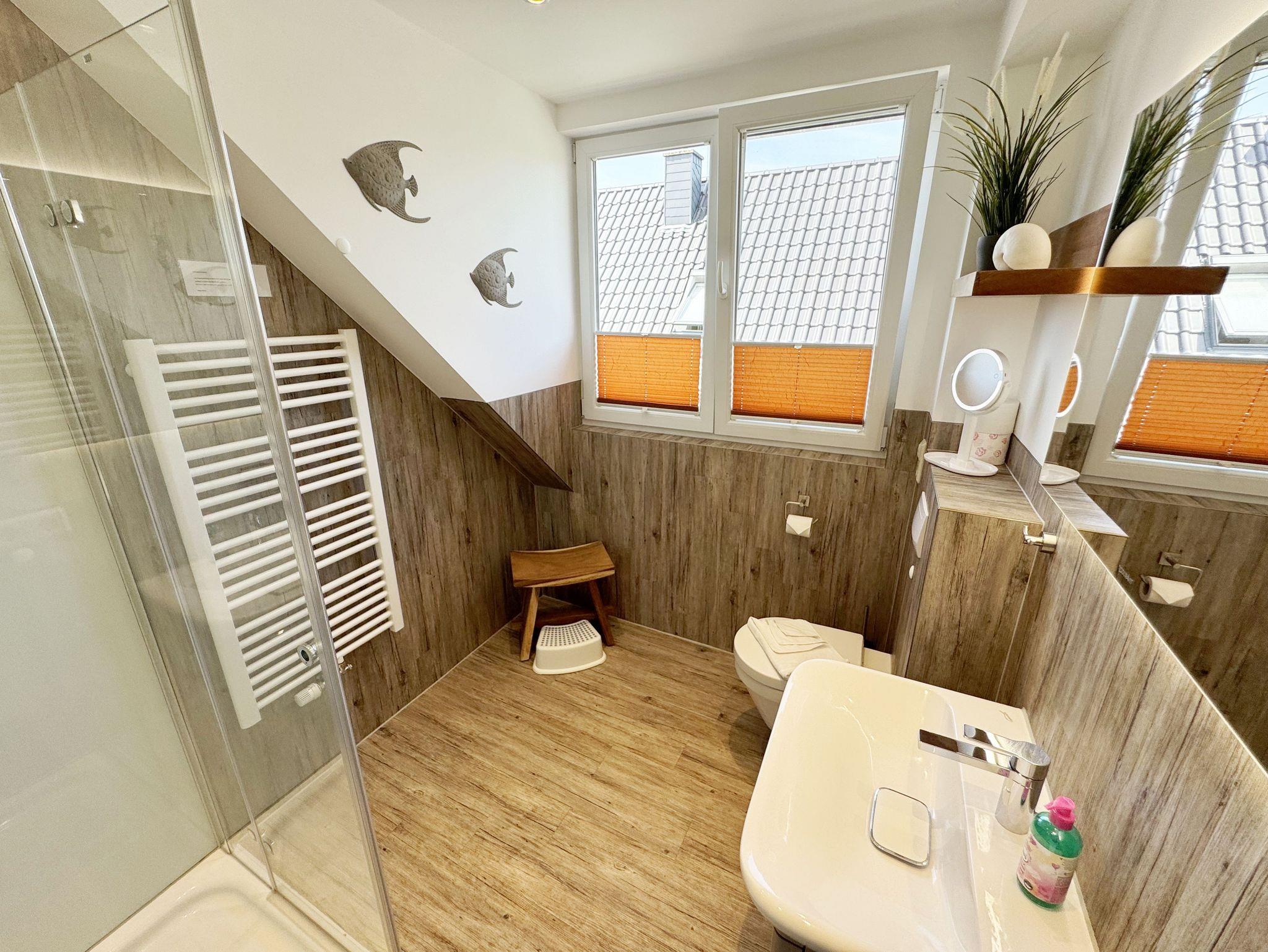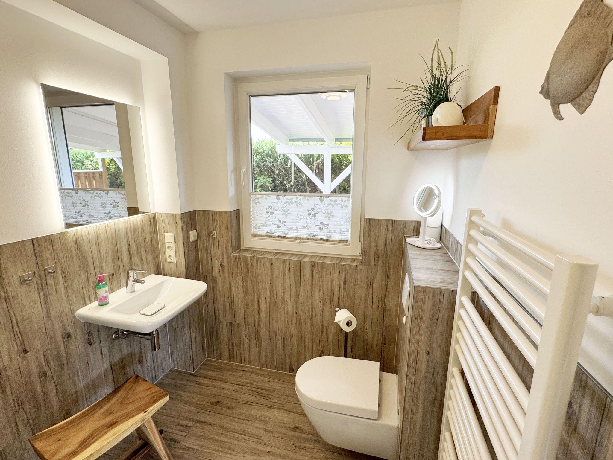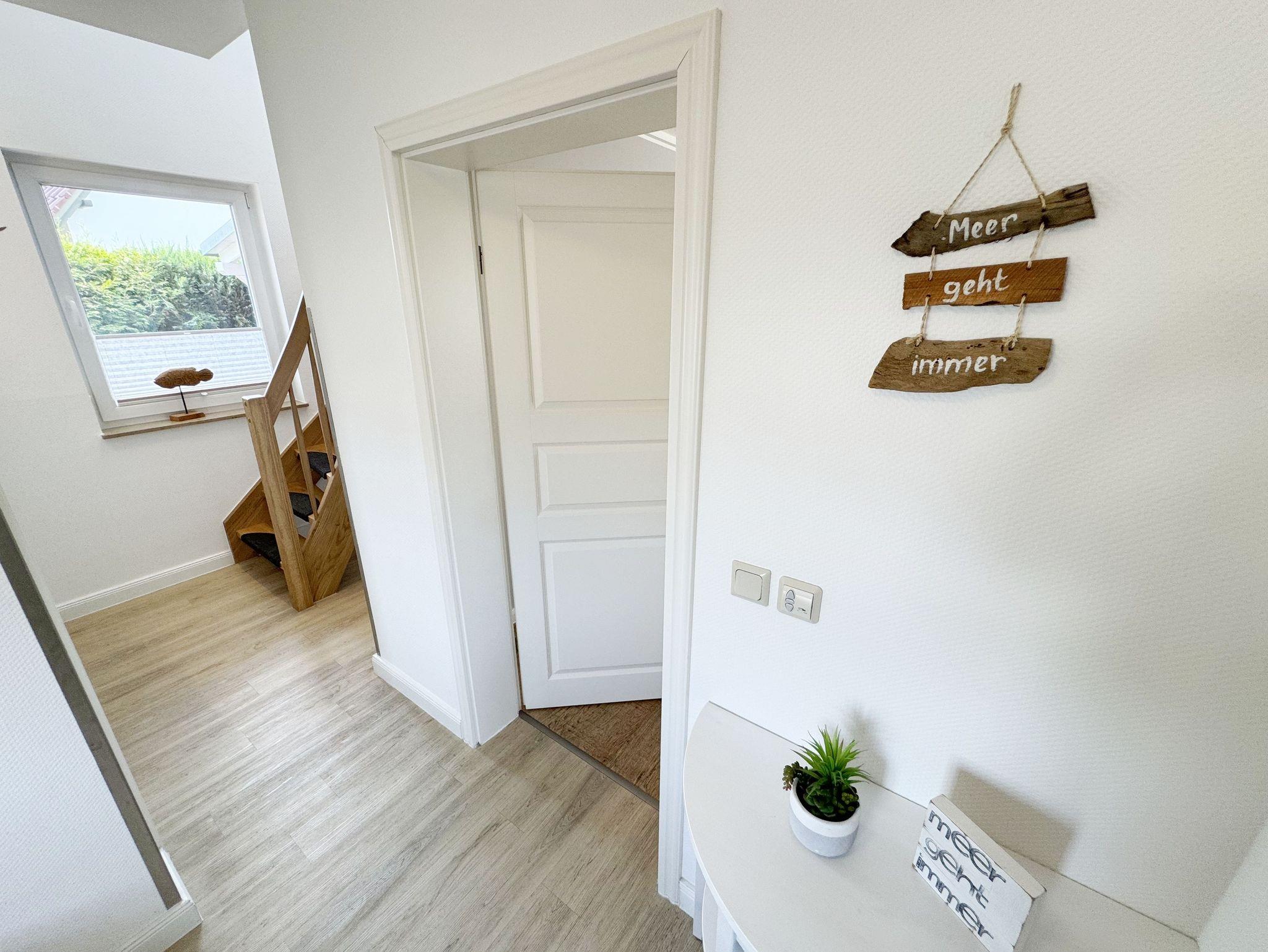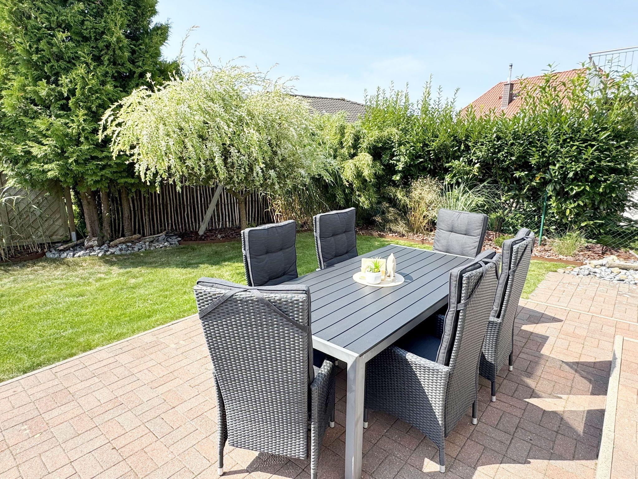 Willkommen im Ferienhaus „Uns lütt Hus“, im schönen und erholsamen Ostseebad Baabe. Das Nichtraucherferienhaus mit seinen ca. 95 m² erstreckt sich auf über 2 Etagen und bietet Ihnen Platz für max. 4 Erwachsene. Mit viel Liebe zum Detail wurde das Haus eingerichtet und bietet Ihnen auch in der kalten Jahreszeit einen angenehmen Rückzugsort, um Ihre Seele baumeln zulassen. Eine Sauna im Eingangsbereich ziert das Haus und bietet Ihnen eine kleine aber feine Wellnessoase. Der großzügige Koch-, Ess- und Wohnbereich mit seinen ca. 39 m² lässt keine Wünsche offen. Die offene Küchenzeile ist mit einem modernen Pyrolyse Backofen, Glaskeramikkochfeld, Dunstabzugshaube, Granitspüle, Einbau-Kühl-Gefrierkombination, Kaffeemaschine, Pad-Maschine (Dolce Gusto), Heißluftfriteuse (Ninja), Wasserkocher, Toaster, Eierkocher, Mixer und vielen weiteren kleinen Küchenhelfern ausgestattet. Angrenzend an den Küchenbereich schließt sich der großzügige Wildeichenholzesstisch mit seinen 4 Lederstühlen und Highboard an. Der Wohnbereich mit seiner gemütlichen Eckcouch und dazugehörigem Couchtisch, Leselampe, TV-Bord mit LED Smart-TV mit Sky (Auswahl von Sport, Film, Dokumentation), Blu Ray Player und einem Teufel Heimkinosystem laden für gemütliche und erholsame Stunden ein. Abgerundet wird dieser Bereich durch einen Ohrensessel mit Hocker und Blick auf den Kamin, welcher in der kalten Jahreszeit für eine angenehme Wärme sorgt. Kaminholz ist für Sie inklusive. Eine kleine Auswahl an Gesellschaftsspielen, Urlaubslektüren und DVDs stehen Ihnen außerdem zur Verfügung. Der technische Bereich wird zusätzlich durch einen WLAN Zugang (100 Mbit/S) abgerundet. Das erste der Tageslichtduschbäder befindet sich im Erdgeschoss und ist mit einer ebenerdigen Klarglasdusche der Firma Sprinz und einer XXL Regendusche ausgestattet. Weiterhin finden Sie ein WC, einen Waschtisch, einen Handtuchtrockner und einen Fön im Bad. Vom Wohn-/Essbereich gelangen Sie auf Ihre südausgerichtete Terrasse, die mit bequemen und verstellbaren Terrassenstühlen und einer elektrischen Markise sowie 2 Sonnenliegen ausgestattet ist. Auch ein Holzkohlegrill der Firma Weber lässt den Abend auf der Terrasse bei einem guten Essen und einem Gläschen Wein ausklingen. Vom Flur erreichen Sie durch eine etwas steile Holztreppe Ihre beiden Schlafzimmer sowie ein weiteres Tageslichtbad. Das große Schlafzimmer verfügt über ein Doppelbett (1,80 m x 2,00 m) mit Gel-Kaltschaummatratzen (0,90 m x 2,00 m), verstellbare Lattenroste am Kopf und Fußende, Nachttischablagen, DAB-Radio Wecker von Teufel, LED TV, einen Ohrensessel mit Hocker, einen Safe, einen Elektrokamin sowie einen großzügigen Einbau-Kleiderschrank. Das kleinere der Schlafzimmer wurde mit einem Doppelbett (1,60 m x 2,00 m) und Gel-Kaltschaummatratzen (0,80 m x 2,00 m), verstellbare Lattenroste am Kopf und Fußende, Nachttischablagen, DAB-Radio Wecker von Teufel sowie einer kleinen Sitzecke bestehend aus einem Sessel mit Ablagen, ausgestattet. Für einen ruhigen und erholsamen Schlaf sorgen zusätzlich Verdunklungs-Plissees, elektrische Rollläden sowie Insektenschutzgitter. Das zweite Tageslichtbad im Obergeschoss verfügt wie das Duschbad im Erdgeschoss über eine ebenerdige Klarglasdusche der Firma Sprinz und eine XXL Regendusche. Ein WC, ein Waschtisch, ein Kosmetikspiegel und ein Handtuchtrockner runden das Bad ab. Alle Räumlichkeiten im Ferienhaus sind mit einer Fußbodenheizung und Vinylfußbodenbelag im Holz Look versehen. Nicht nur im Schlafzimmer finden Sie elektrische Rollläden und Insektenschutzgitter! Diese sind im gesamten Haus vorhanden. Im Hauswirtschaftsraum finden Sie eine Waschmaschine mit Trocknerfunktion, einen Staubsauger, Reinigungsutensilien, ein Bügelbrett sowie ein Bügeleisen. Um den sehr kalkhaltigen Wasser auf der Insel Rügen entgegenzuwirken, finden Sie eine Enthärtungsanlage im Haus, die das Wasser enthärtet. Für unsere kleinen Gäste steht ein Hochstuhl sowie ein Kinderreisebett (ohne Bettinlett/mit Zusatzmatratze) und ein Treppenschutz zur Verfügung. Auch ein 4-Beiner ist mit seinem eigenen Schlafplatz gegen eine Gebühr ein gern gesehener Gast. 2 PKW-Stellplätze befinden sich direkt vor dem Haus sowie eine Ladestation für Elektrofahrzeuge (Abrechnung über Nebenkostenpauschale). Auch der vorhandene Carport am Haus bietet Schutz für einen PKW. Ihre geliehenen oder auch mitgebrachten Fahrräder können Sie im großzügigen Schuppen unterstellen. Hier gibt es auch die Möglichkeit, Ihre E-Bikes aufzuladen. Zur Erkundung der Umgebung stehen Ihnen zusätzlich 2 Trekking Räder der Firma Victoria mit Gangschaltung zur Verfügung sowie ein Damenrad der Firma Hartje mit Gangschaltung (kein Vertragsbestandteil). Auf dem kleinen Grundstück finden Sie auch eine Wäschespinne, um Ihre Handtücher nach dem Baden in der Ostsee aufzuhängen. Die Erstausstattung eines Wäschepaketes (komplette Bettwäsche, 1 Duschhandtuch, 2 kleine Handtücher) können Sie bis 14 Tage vor Anreise gegen einen Aufpreis dazu buchen oder durch eigene ergänzen. Ab 2 gebuchten Paketen erhalten Sie einmalig 1 Geschirrhandtuch und 1 Duschvorleger hinzu.