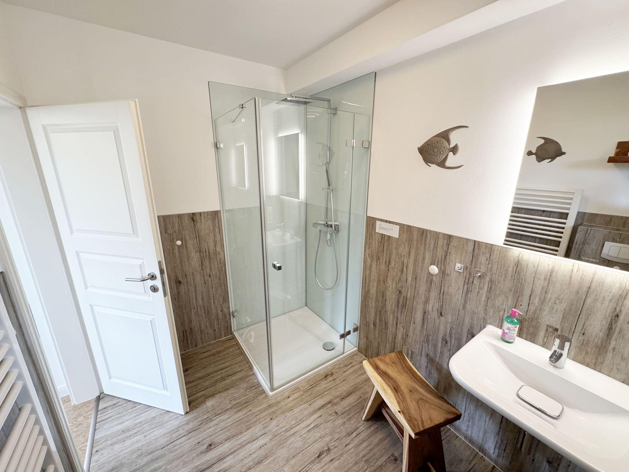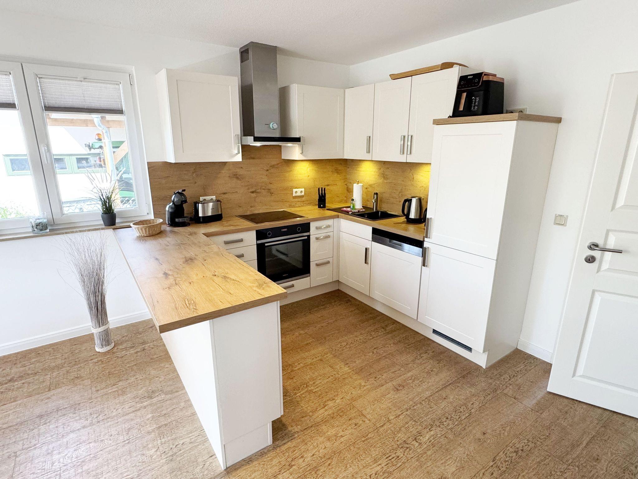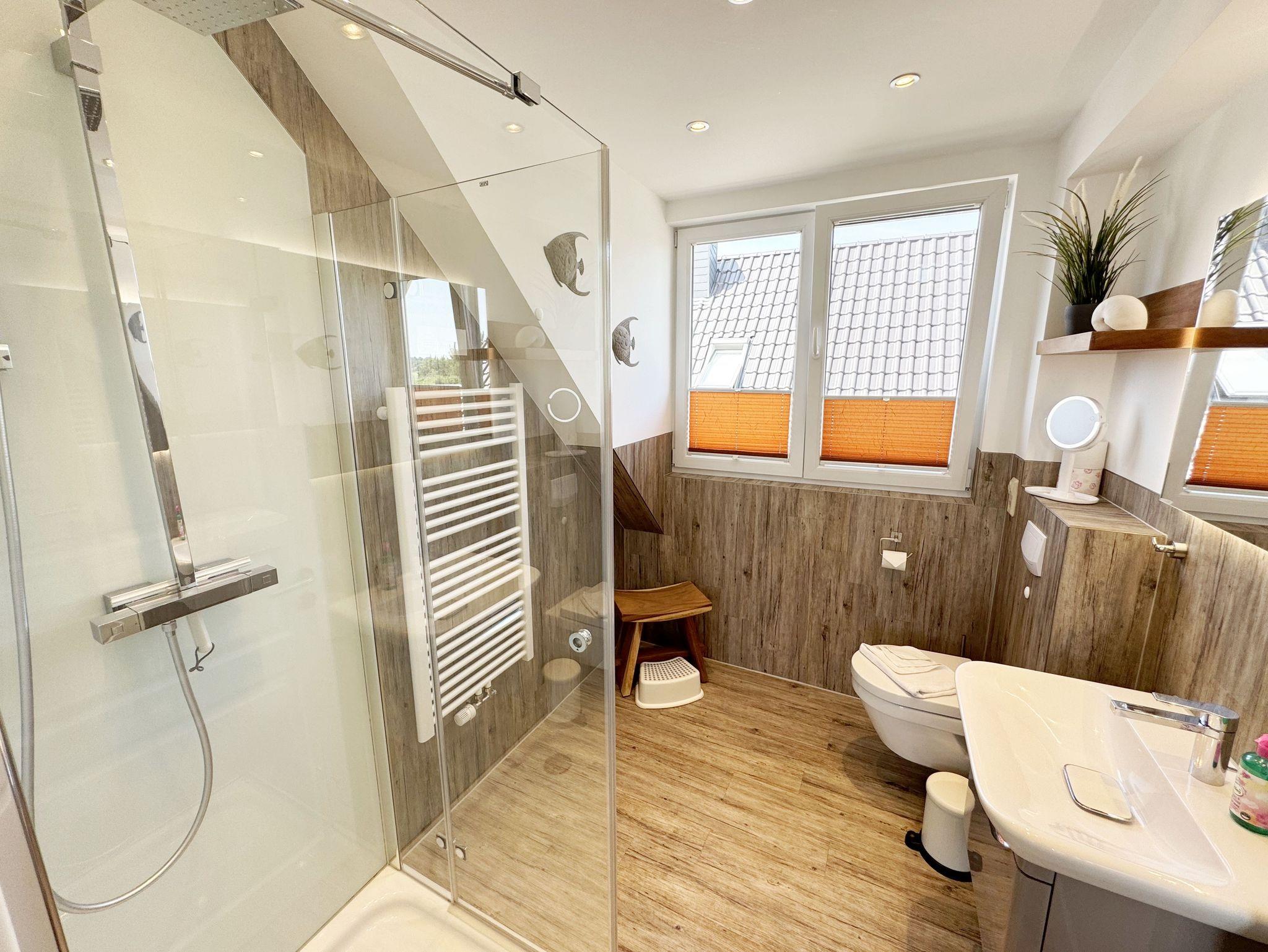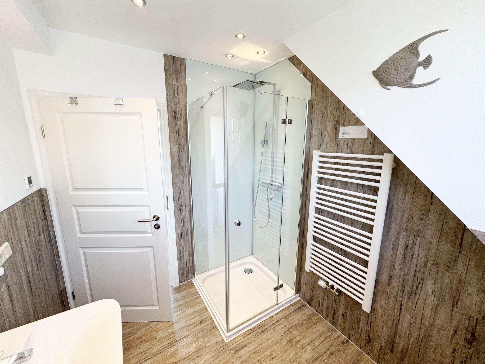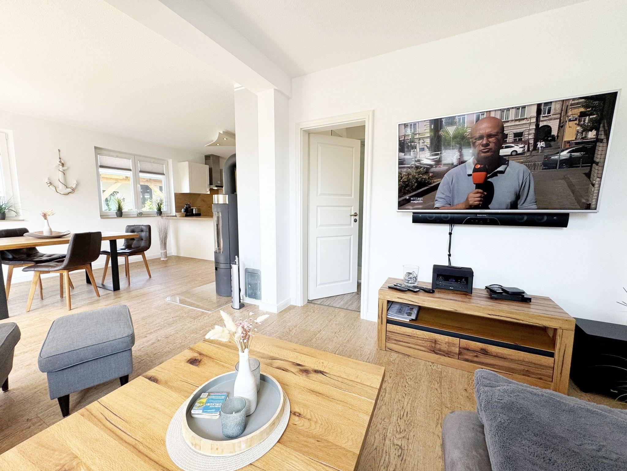 Willkommen im Ferienhaus „Uns lütt Hus“, im schönen und erholsamen Ostseebad Baabe. Das Nichtraucherferienhaus mit seinen ca. 95 m² erstreckt sich auf über 2 Etagen und bietet Ihnen Platz für max. 4 Erwachsene. Mit viel Liebe zum Detail wurde das Haus eingerichtet und bietet Ihnen auch in der kalten Jahreszeit einen angenehmen Rückzugsort, um Ihre Seele baumeln zulassen. Eine Sauna im Eingangsbereich ziert das Haus und bietet Ihnen eine kleine aber feine Wellnessoase. Der großzügige Koch-, Ess- und Wohnbereich mit seinen ca. 39 m² lässt keine Wünsche offen. Die offene Küchenzeile ist mit einem modernen Pyrolyse Backofen, Glaskeramikkochfeld, Dunstabzugshaube, Granitspüle, Einbau-Kühl-Gefrierkombination, Kaffeemaschine, Pad-Maschine (Dolce Gusto), Heißluftfriteuse (Ninja), Wasserkocher, Toaster, Eierkocher, Mixer und vielen weiteren kleinen Küchenhelfern ausgestattet. Angrenzend an den Küchenbereich schließt sich der großzügige Wildeichenholzesstisch mit seinen 4 Lederstühlen und Highboard an. Der Wohnbereich mit seiner gemütlichen Eckcouch und dazugehörigem Couchtisch, Leselampe, TV-Bord mit LED Smart-TV mit Sky (Auswahl von Sport, Film, Dokumentation), Blu Ray Player und einem Teufel Heimkinosystem laden für gemütliche und erholsame Stunden ein. Abgerundet wird dieser Bereich durch einen Ohrensessel mit Hocker und Blick auf den Kamin, welcher in der kalten Jahreszeit für eine angenehme Wärme sorgt. Kaminholz ist für Sie inklusive. Eine kleine Auswahl an Gesellschaftsspielen, Urlaubslektüren und DVDs stehen Ihnen außerdem zur Verfügung. Der technische Bereich wird zusätzlich durch einen WLAN Zugang (100 Mbit/S) abgerundet. Das erste der Tageslichtduschbäder befindet sich im Erdgeschoss und ist mit einer ebenerdigen Klarglasdusche der Firma Sprinz und einer XXL Regendusche ausgestattet. Weiterhin finden Sie ein WC, einen Waschtisch, einen Handtuchtrockner und einen Fön im Bad. Vom Wohn-/Essbereich gelangen Sie auf Ihre südausgerichtete Terrasse, die mit bequemen und verstellbaren Terrassenstühlen und einer elektrischen Markise sowie 2 Sonnenliegen ausgestattet ist. Auch ein Holzkohlegrill der Firma Weber lässt den Abend auf der Terrasse bei einem guten Essen und einem Gläschen Wein ausklingen. Vom Flur erreichen Sie durch eine etwas steile Holztreppe Ihre beiden Schlafzimmer sowie ein weiteres Tageslichtbad. Das große Schlafzimmer verfügt über ein Doppelbett (1,80 m x 2,00 m) mit Gel-Kaltschaummatratzen (0,90 m x 2,00 m), verstellbare Lattenroste am Kopf und Fußende, Nachttischablagen, DAB-Radio Wecker von Teufel, LED TV, einen Ohrensessel mit Hocker, einen Safe, einen Elektrokamin sowie einen großzügigen Einbau-Kleiderschrank. Das kleinere der Schlafzimmer wurde mit einem Doppelbett (1,60 m x 2,00 m) und Gel-Kaltschaummatratzen (0,80 m x 2,00 m), verstellbare Lattenroste am Kopf und Fußende, Nachttischablagen, DAB-Radio Wecker von Teufel sowie einer kleinen Sitzecke bestehend aus einem Sessel mit Ablagen, ausgestattet. Für einen ruhigen und erholsamen Schlaf sorgen zusätzlich Verdunklungs-Plissees, elektrische Rollläden sowie Insektenschutzgitter. Das zweite Tageslichtbad im Obergeschoss verfügt wie das Duschbad im Erdgeschoss über eine ebenerdige Klarglasdusche der Firma Sprinz und eine XXL Regendusche. Ein WC, ein Waschtisch, ein Kosmetikspiegel und ein Handtuchtrockner runden das Bad ab. Alle Räumlichkeiten im Ferienhaus sind mit einer Fußbodenheizung und Vinylfußbodenbelag im Holz Look versehen. Nicht nur im Schlafzimmer finden Sie elektrische Rollläden und Insektenschutzgitter! Diese sind im gesamten Haus vorhanden. Im Hauswirtschaftsraum finden Sie eine Waschmaschine mit Trocknerfunktion, einen Staubsauger, Reinigungsutensilien, ein Bügelbrett sowie ein Bügeleisen. Um den sehr kalkhaltigen Wasser auf der Insel Rügen entgegenzuwirken, finden Sie eine Enthärtungsanlage im Haus, die das Wasser enthärtet. Für unsere kleinen Gäste steht ein Hochstuhl sowie ein Kinderreisebett (ohne Bettinlett/mit Zusatzmatratze) und ein Treppenschutz zur Verfügung. Auch ein 4-Beiner ist mit seinem eigenen Schlafplatz gegen eine Gebühr ein gern gesehener Gast. 2 PKW-Stellplätze befinden sich direkt vor dem Haus sowie eine Ladestation für Elektrofahrzeuge (Abrechnung über Nebenkostenpauschale). Auch der vorhandene Carport am Haus bietet Schutz für einen PKW. Ihre geliehenen oder auch mitgebrachten Fahrräder können Sie im großzügigen Schuppen unterstellen. Hier gibt es auch die Möglichkeit, Ihre E-Bikes aufzuladen. Zur Erkundung der Umgebung stehen Ihnen zusätzlich 2 Trekking Räder der Firma Victoria mit Gangschaltung zur Verfügung sowie ein Damenrad der Firma Hartje mit Gangschaltung (kein Vertragsbestandteil). Auf dem kleinen Grundstück finden Sie auch eine Wäschespinne, um Ihre Handtücher nach dem Baden in der Ostsee aufzuhängen. Die Erstausstattung eines Wäschepaketes (komplette Bettwäsche, 1 Duschhandtuch, 2 kleine Handtücher) können Sie bis 14 Tage vor Anreise gegen einen Aufpreis dazu buchen oder durch eigene ergänzen. Ab 2 gebuchten Paketen erhalten Sie einmalig 1 Geschirrhandtuch und 1 Duschvorleger hinzu.