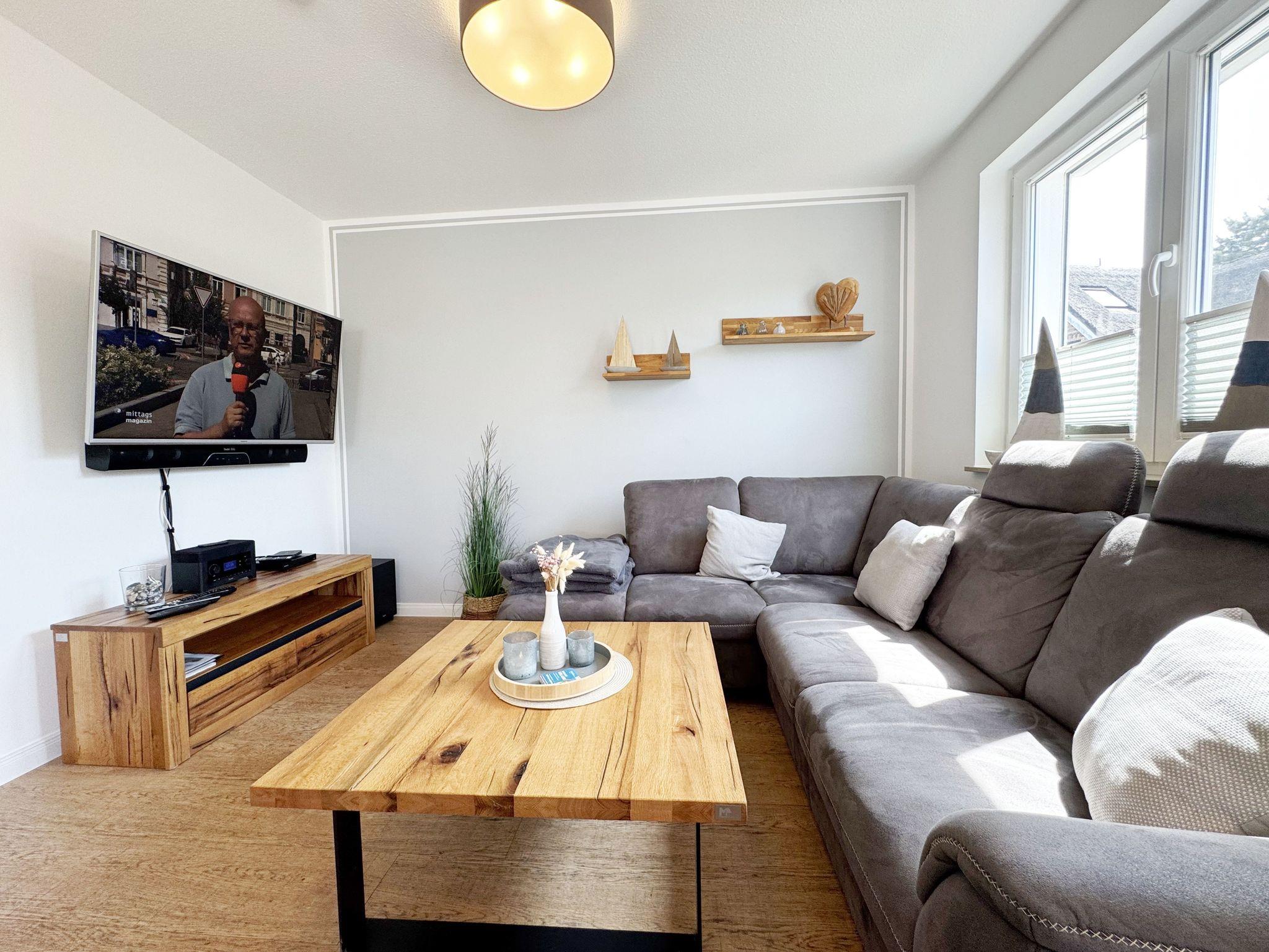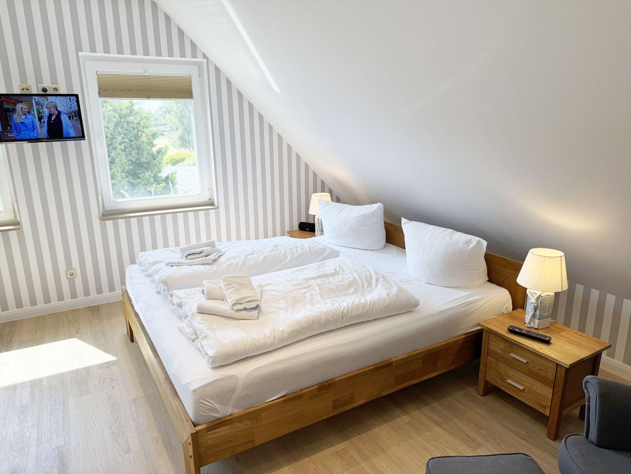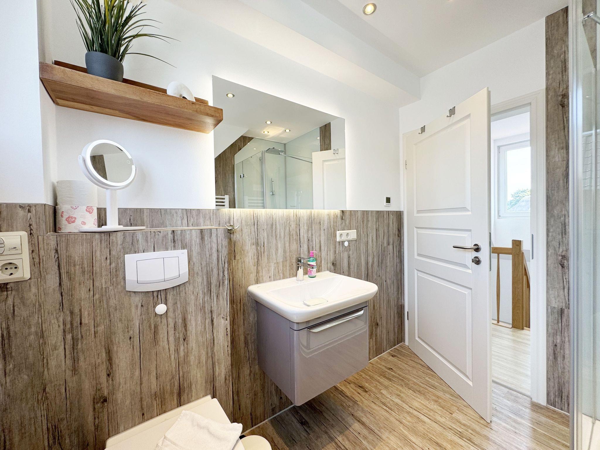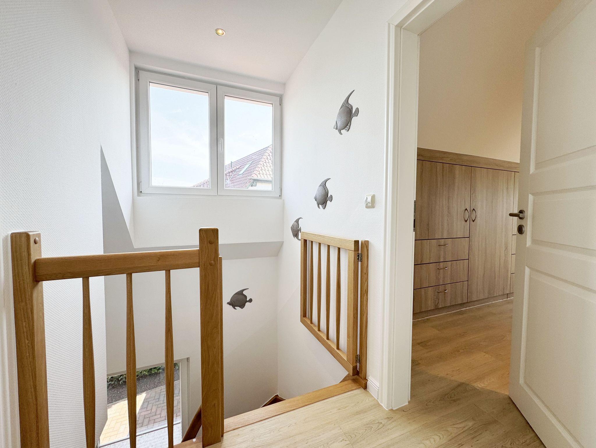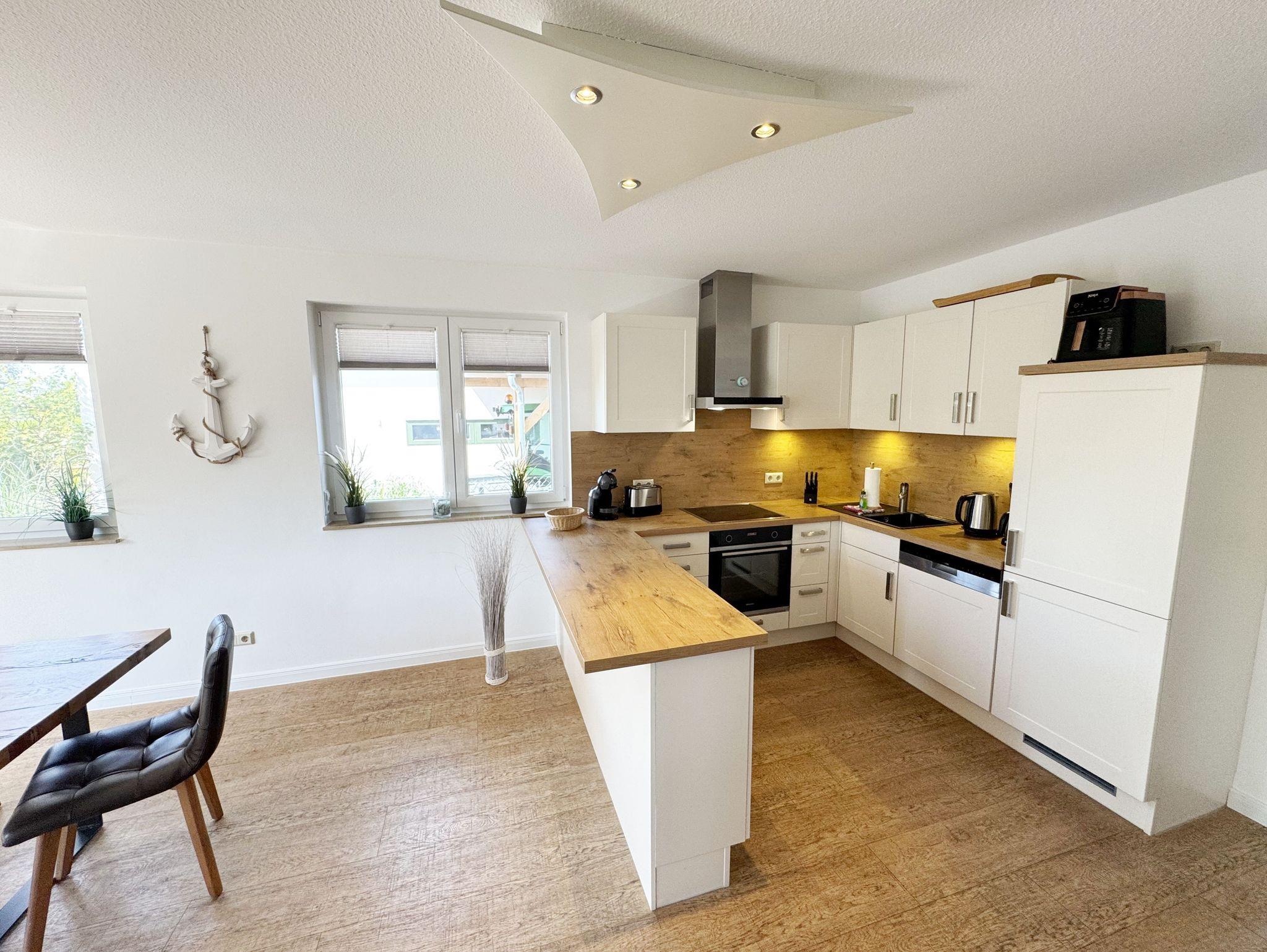 Willkommen im Ferienhaus „Uns lütt Hus“, im schönen und erholsamen Ostseebad Baabe. Das Nichtraucherferienhaus mit seinen ca. 95 m² erstreckt sich auf über 2 Etagen und bietet Ihnen Platz für max. 4 Erwachsene. Mit viel Liebe zum Detail wurde das Haus eingerichtet und bietet Ihnen auch in der kalten Jahreszeit einen angenehmen Rückzugsort, um Ihre Seele baumeln zulassen. Eine Sauna im Eingangsbereich ziert das Haus und bietet Ihnen eine kleine aber feine Wellnessoase. Der großzügige Koch-, Ess- und Wohnbereich mit seinen ca. 39 m² lässt keine Wünsche offen. Die offene Küchenzeile ist mit einem modernen Pyrolyse Backofen, Glaskeramikkochfeld, Dunstabzugshaube, Granitspüle, Einbau-Kühl-Gefrierkombination, Kaffeemaschine, Pad-Maschine (Dolce Gusto), Heißluftfriteuse (Ninja), Wasserkocher, Toaster, Eierkocher, Mixer und vielen weiteren kleinen Küchenhelfern ausgestattet. Angrenzend an den Küchenbereich schließt sich der großzügige Wildeichenholzesstisch mit seinen 4 Lederstühlen und Highboard an. Der Wohnbereich mit seiner gemütlichen Eckcouch und dazugehörigem Couchtisch, Leselampe, TV-Bord mit LED Smart-TV mit Sky (Auswahl von Sport, Film, Dokumentation), Blu Ray Player und einem Teufel Heimkinosystem laden für gemütliche und erholsame Stunden ein. Abgerundet wird dieser Bereich durch einen Ohrensessel mit Hocker und Blick auf den Kamin, welcher in der kalten Jahreszeit für eine angenehme Wärme sorgt. Kaminholz ist für Sie inklusive. Eine kleine Auswahl an Gesellschaftsspielen, Urlaubslektüren und DVDs stehen Ihnen außerdem zur Verfügung. Der technische Bereich wird zusätzlich durch einen WLAN Zugang (100 Mbit/S) abgerundet. Das erste der Tageslichtduschbäder befindet sich im Erdgeschoss und ist mit einer ebenerdigen Klarglasdusche der Firma Sprinz und einer XXL Regendusche ausgestattet. Weiterhin finden Sie ein WC, einen Waschtisch, einen Handtuchtrockner und einen Fön im Bad. Vom Wohn-/Essbereich gelangen Sie auf Ihre südausgerichtete Terrasse, die mit bequemen und verstellbaren Terrassenstühlen und einer elektrischen Markise sowie 2 Sonnenliegen ausgestattet ist. Auch ein Holzkohlegrill der Firma Weber lässt den Abend auf der Terrasse bei einem guten Essen und einem Gläschen Wein ausklingen. Vom Flur erreichen Sie durch eine etwas steile Holztreppe Ihre beiden Schlafzimmer sowie ein weiteres Tageslichtbad. Das große Schlafzimmer verfügt über ein Doppelbett (1,80 m x 2,00 m) mit Gel-Kaltschaummatratzen (0,90 m x 2,00 m), verstellbare Lattenroste am Kopf und Fußende, Nachttischablagen, DAB-Radio Wecker von Teufel, LED TV, einen Ohrensessel mit Hocker, einen Safe, einen Elektrokamin sowie einen großzügigen Einbau-Kleiderschrank. Das kleinere der Schlafzimmer wurde mit einem Doppelbett (1,60 m x 2,00 m) und Gel-Kaltschaummatratzen (0,80 m x 2,00 m), verstellbare Lattenroste am Kopf und Fußende, Nachttischablagen, DAB-Radio Wecker von Teufel sowie einer kleinen Sitzecke bestehend aus einem Sessel mit Ablagen, ausgestattet. Für einen ruhigen und erholsamen Schlaf sorgen zusätzlich Verdunklungs-Plissees, elektrische Rollläden sowie Insektenschutzgitter. Das zweite Tageslichtbad im Obergeschoss verfügt wie das Duschbad im Erdgeschoss über eine ebenerdige Klarglasdusche der Firma Sprinz und eine XXL Regendusche. Ein WC, ein Waschtisch, ein Kosmetikspiegel und ein Handtuchtrockner runden das Bad ab. Alle Räumlichkeiten im Ferienhaus sind mit einer Fußbodenheizung und Vinylfußbodenbelag im Holz Look versehen. Nicht nur im Schlafzimmer finden Sie elektrische Rollläden und Insektenschutzgitter! Diese sind im gesamten Haus vorhanden. Im Hauswirtschaftsraum finden Sie eine Waschmaschine mit Trocknerfunktion, einen Staubsauger, Reinigungsutensilien, ein Bügelbrett sowie ein Bügeleisen. Um den sehr kalkhaltigen Wasser auf der Insel Rügen entgegenzuwirken, finden Sie eine Enthärtungsanlage im Haus, die das Wasser enthärtet. Für unsere kleinen Gäste steht ein Hochstuhl sowie ein Kinderreisebett (ohne Bettinlett/mit Zusatzmatratze) und ein Treppenschutz zur Verfügung. Auch ein 4-Beiner ist mit seinem eigenen Schlafplatz gegen eine Gebühr ein gern gesehener Gast. 2 PKW-Stellplätze befinden sich direkt vor dem Haus sowie eine Ladestation für Elektrofahrzeuge (Abrechnung über Nebenkostenpauschale). Auch der vorhandene Carport am Haus bietet Schutz für einen PKW. Ihre geliehenen oder auch mitgebrachten Fahrräder können Sie im großzügigen Schuppen unterstellen. Hier gibt es auch die Möglichkeit, Ihre E-Bikes aufzuladen. Zur Erkundung der Umgebung stehen Ihnen zusätzlich 2 Trekking Räder der Firma Victoria mit Gangschaltung zur Verfügung sowie ein Damenrad der Firma Hartje mit Gangschaltung (kein Vertragsbestandteil). Auf dem kleinen Grundstück finden Sie auch eine Wäschespinne, um Ihre Handtücher nach dem Baden in der Ostsee aufzuhängen. Die Erstausstattung eines Wäschepaketes (komplette Bettwäsche, 1 Duschhandtuch, 2 kleine Handtücher) können Sie bis 14 Tage vor Anreise gegen einen Aufpreis dazu buchen oder durch eigene ergänzen. Ab 2 gebuchten Paketen erhalten Sie einmalig 1 Geschirrhandtuch und 1 Duschvorleger hinzu.