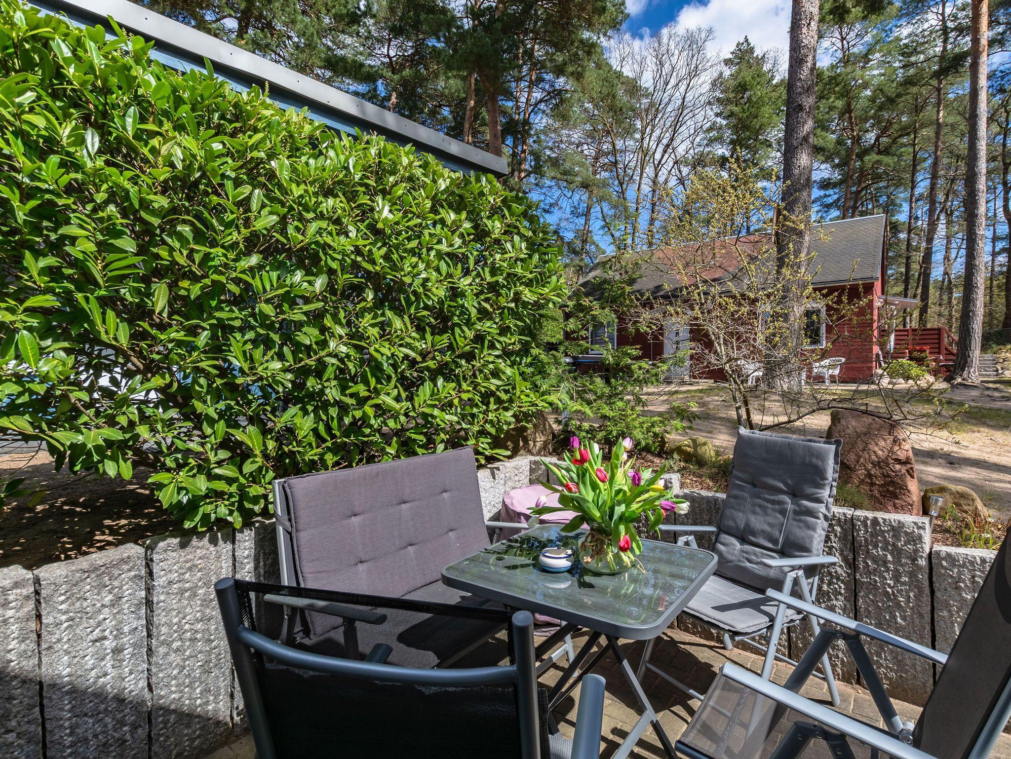 Auf einem 1.100 m² komplett umzäunten Grundstück, welches für alle Gäste der Anlage nutzbar ist, stehen 4 Ferienhäuser. Diese beherbergen die insgesamt 7 Wohnungen. Die gemütlichen Ferienwohnungen können 4, in einer Wohnung sogar 6 Personen beherbergen. Das Grundstück befindet sich im Kiefernwald mit viel Strandsand. Natur pur! Um die Natürlichkeit des Grundstücks zu erhalten, wurde auf Gehwegpflasterung so weit es ging verzichtet. Jede Wohnung hat eine eigene Terrasse mit Gartenmöbel und Holzkohlegrill. Für Fahrräder steht ein überdachter Fahrradständer bereit. Dort haben Sie die Möglichkeit, Ihr E-Bike kostenlos aufzuladen. Zu jeder Ferienwohnung stellen wir 1 PKW-Parkplatz kostenlos zur Verfügung. Diese befinden sich direkt vor dem Grundstück. Außerdem stellen wir kostenloses W-Lan zur Verfügung (dem Ort Baabe entsprechende Höchstleistung).