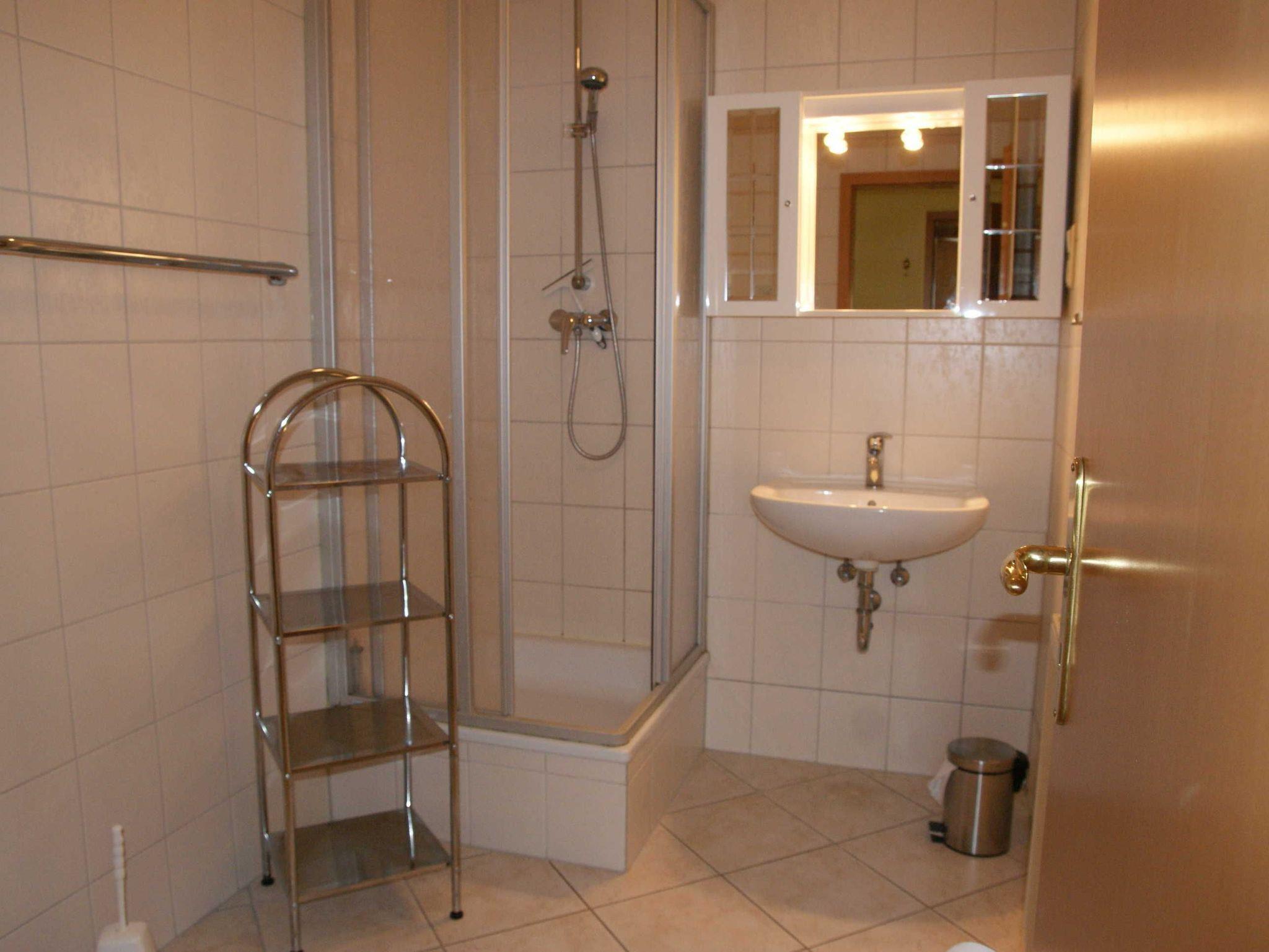 Bad mit Dusche, WC, Waschplatz und Fußbodenheizung