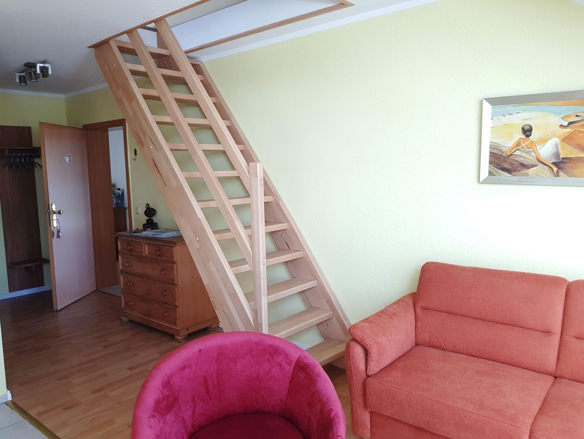 Die 3-Raum Maisonettenwohnung Strandburg(Nichtraucher)ca. 50 qm ausreichend Platz für 3 Personen. Kombinierter Wohn- und Essbereich mit komplett ausgestatteter Küchenzeile