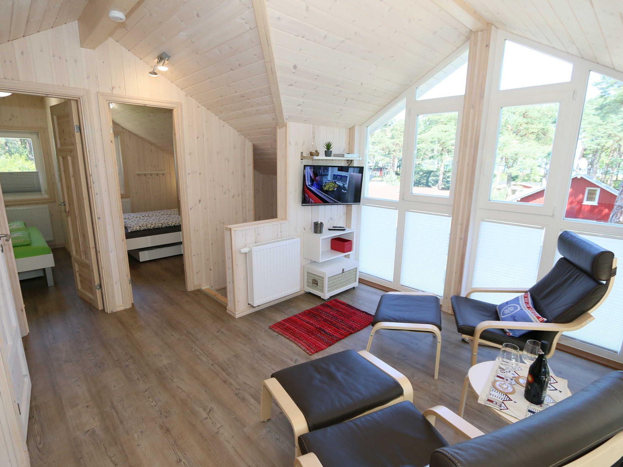 Im Erdgeschoss betreten Sie das ca. 80 qm große Nichtraucherhaus Traumzeit, für max. 4 Erwachsene und 1 Kleinkind bis 3 Jahre im Kinderreisebett, über einen kleinen Eingangsflur und gelangen zum Wohnbereich mit gemütlicher Sitzecke vor dem Kamin mit Leselampe, Mini-Stereo-Anlage mit DAB-Radio, Smart-TV und Blu Ray-Player. Dem Wohnbereich angeschlossen ist die Einbauküche, die mit allen Geräten ausgestattet ist, wie Sie sie von zu Hause kennen, Geschirrspüler, Kühlschrank mit Gefrierfach, Ceranherd mit Backofen, Mikrowelle, Kaffeemaschine, Senseo Padmaschine, Wasserkocher, Toaster und ambitionierte Hobbyköche finden eine große Auswahl an Küchenutensilien. Der große Esstisch bietet Platz für 4 Personen. Hier dominiert zudem die ca. 5 qm große Glasfront mit Terrassentür und der vorgelagerten überdachten und bestuhlten Terrasse, die es ermöglicht bei jedem Wetter im Freien unter Kiefern zu sitzen und dem Rauschen des Meeres zu lauschen. Das Bad im Erdgeschoss mit Dusche, Wellnesswanne und Sauna ist Ihr Wellnessbereich zum Verwöhnen! Auch ein Waschplatz, WC, Waschmaschine, Kosmetikspiegel und Fön gehören dazu. Wer es abends gern noch ein bisschen gemütlicher mag, der zündet den Kamin im Wohnraum an und lässt den Tag ausklingen. Eine Fußbodenheizung sorgt im unteren Bereich neben dem Kamin zusätzlich für angenehme Wärme. Über eine Kiefernholztreppe erreichen Sie das Obergeschoss mit 2 Schlafräumen, einem Bad und der offenen Galerie. Das erste Schlafzimmer ist ausgestattet mit einem Doppelbett (1,60 m x 2,00 m), verstellbare Lattenroste, Ablagen mit Leseleuchte und Kleiderschrank. Im zweiten Schlafzimmer finden Sie ein Doppelbett (1,40 m x 2,00 m), verstellbare Lattenroste, Ablagen mit Leseleuchte und Kleiderschrank. Ein weiteres Badezimmer mit Dusche, Waschplatz und WC steht Ihnen hier zur Verfügung. Die lichtdurchflutete Galerie ist mit einer Couch ausgestattet. Ein Smart-TV sorgt im Obergeschoss für Ihre Unterhaltung. Hier können Sie auch in bequemen Relax Sesseln die großartige Aussicht bis hin zum Meer genießen. In der Galerie haben wir auf Vorhänge verzichtet, um Ihnen das Gefühl zu geben, direkt in einem Kiefernwald unter dem Sternenhimmel zu schlafen. Auch im Urlaub brauchen Sie auf einen Internetzugang (WLAN) nicht zu verzichten. Dieser ist für Sie inklusive. Für die kleinen Gäste halten wir 1x Hochstuhl,1x Kinderreisebett (ohne Matratze/Bett-Inlett) und ein Treppenschutzgitter bereit. In den Schlafräumen und in den Bädern sind die Fenster mit Insektenschutzgitter versehen. Ein Parkplatz (Nr. 96) steht Ihnen in unmittelbarer Nähe des Hauses zur Verfügung. Ihre geliehenen oder mitgebrachten Fahrräder können Sie im verschließbaren Abstellraum unterbringen. 1 Haustier ist mit seinem eigenen Schlafplatz gegen eine Gebühr ein gern gesehener Gast. Die Erstausstattung eines Wäschepaketes (komplette Bettwäsche, 1 Duschhandtuch, 2 kleine Handtücher) können Sie bis 14 Tage vor Anreise gegen einen Aufpreis dazu buchen oder durch eigene ergänzen. Ab 2 gebuchten Paketen erhalten Sie einmalig 1 Geschirrhandtuch und 1 Duschvorleger dazu.