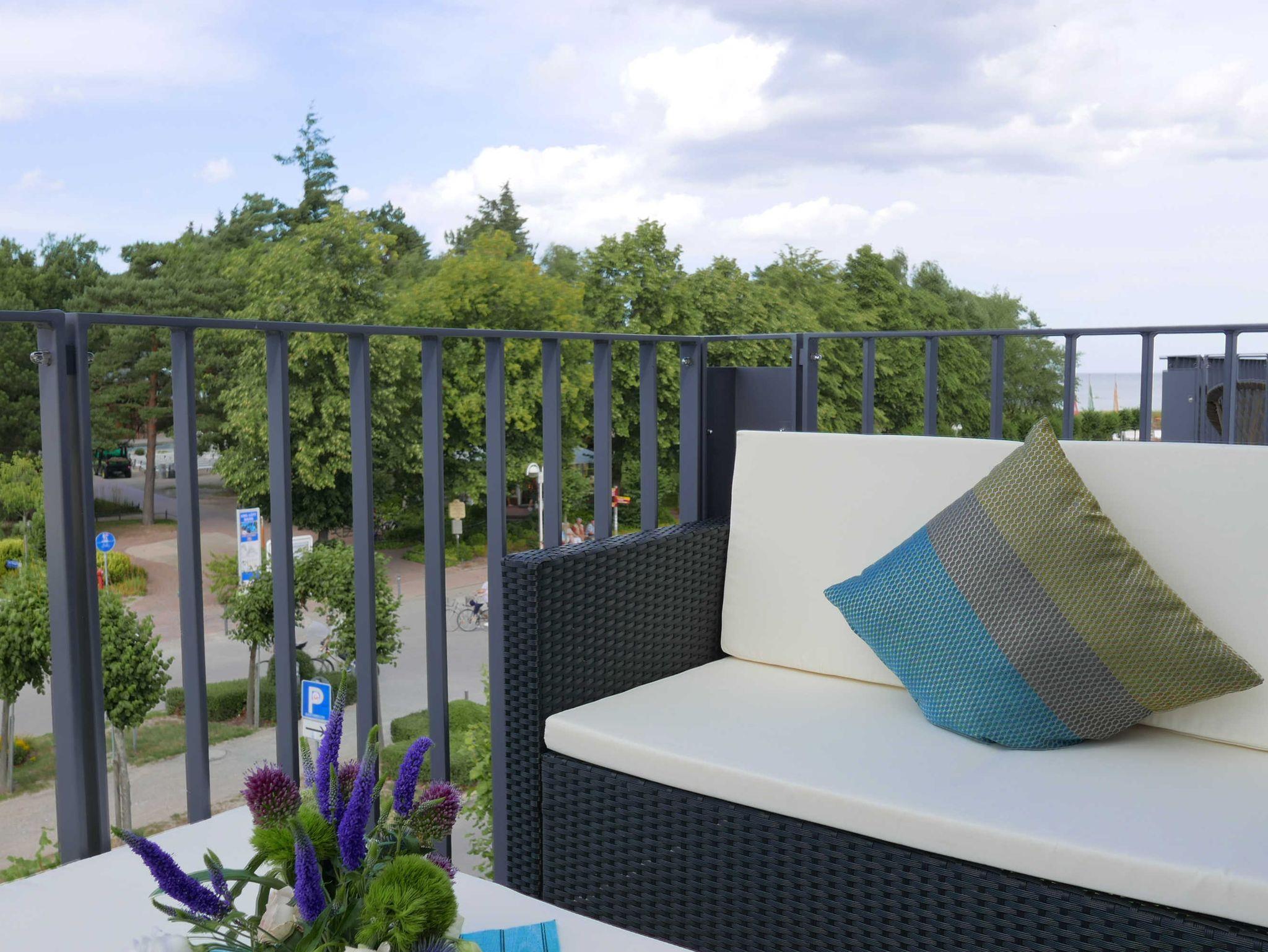 Näher zum Meer kann man in Baabe kaum wohnen. Direkt an der Promenade und gegenüber dem Kurpark, das Meer vis a vis liegt die 2 Zimmer-Ferienwohnung Baltic Pearl für 2 Personen mit Meerblick vom Balkon.