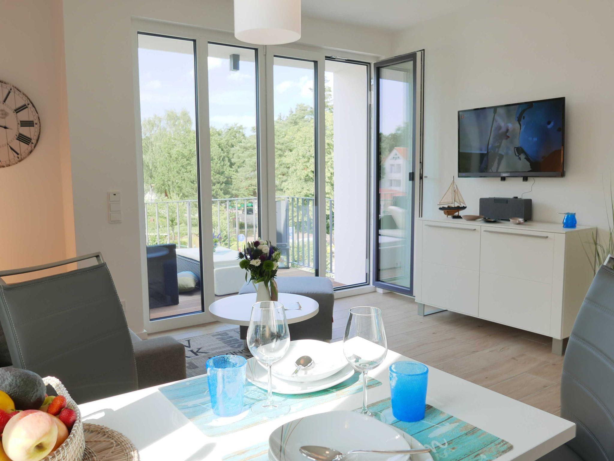 Exklusiv eingerichtete 2 Zimmer Ferienwohnung mit Premium-Ausstattung und schönem Meerblick in der 2. Etage des Haus Düne im 2019 eröffneten Villen-Ensemble Baabe.