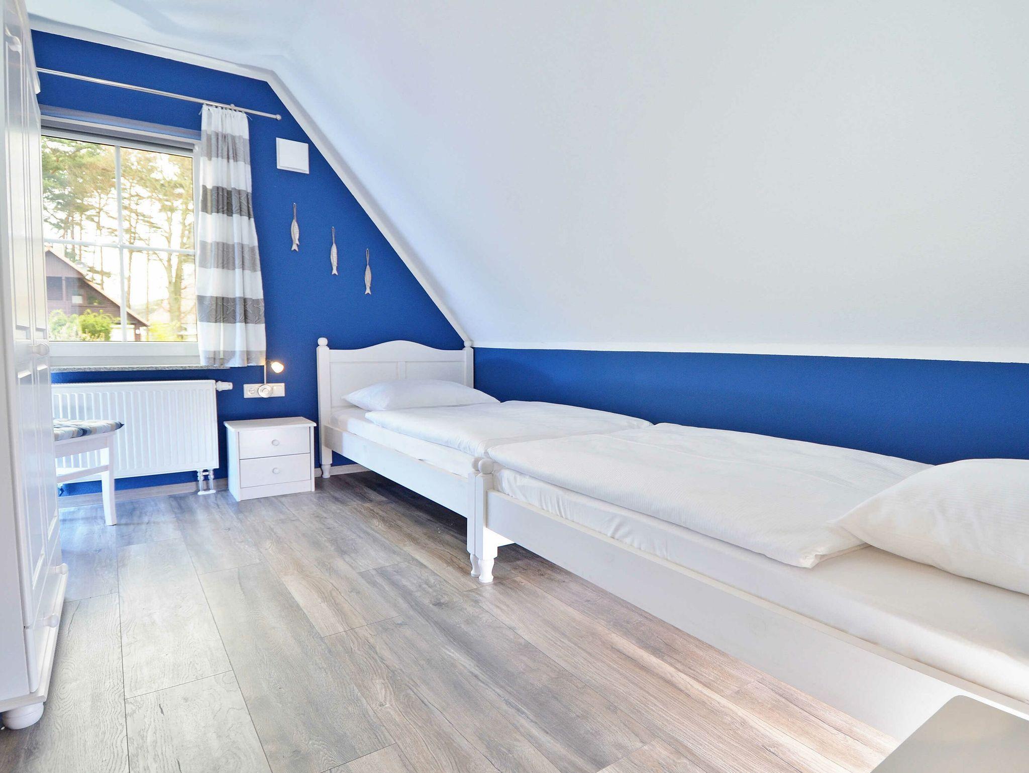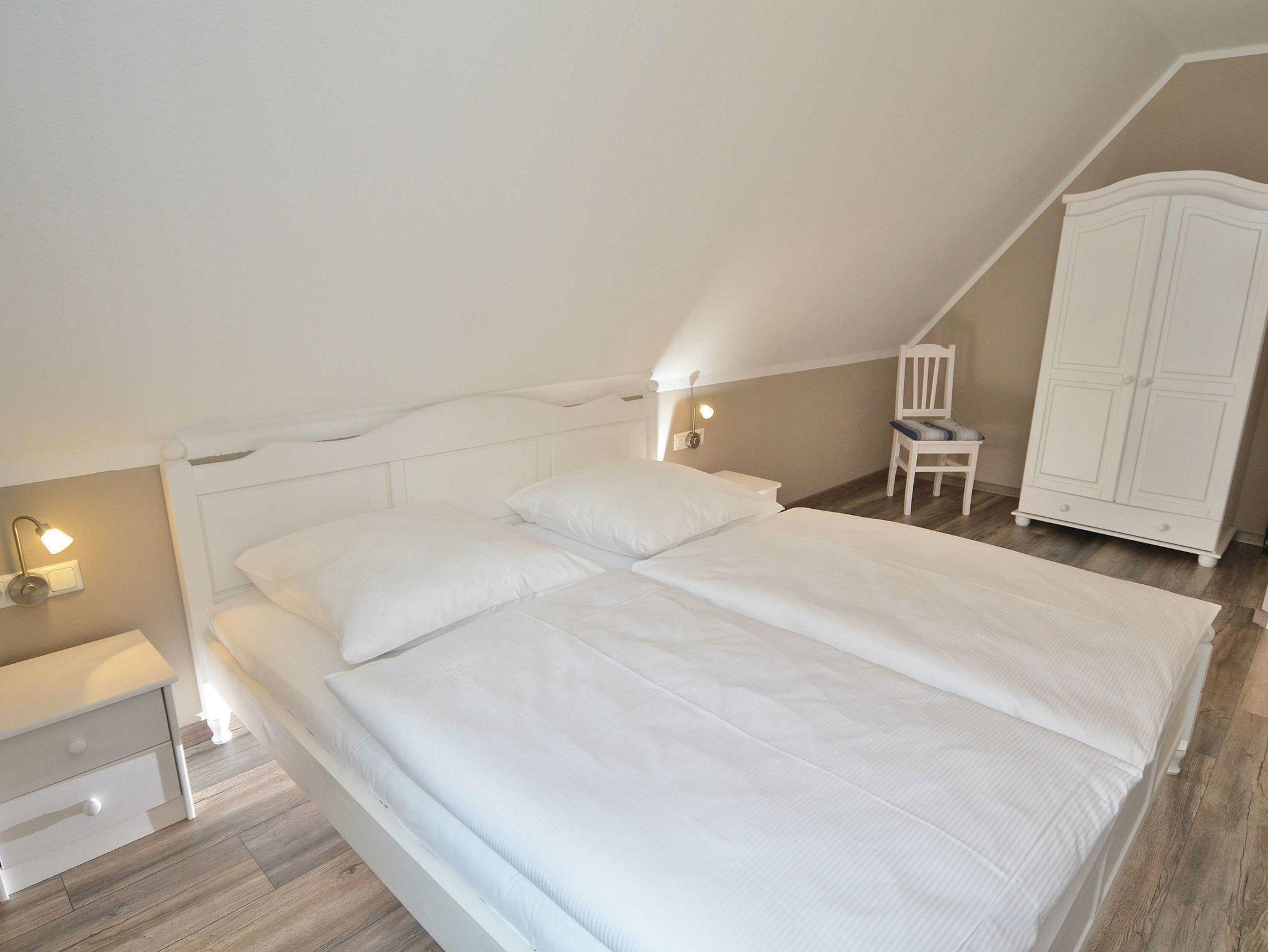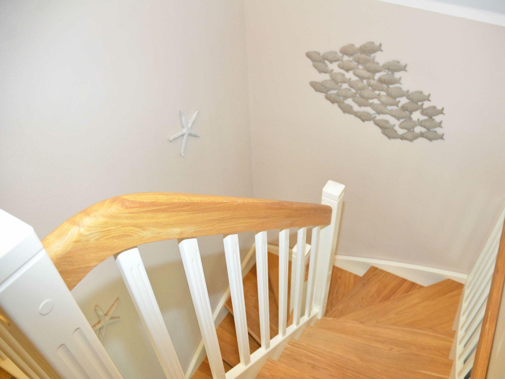 Über eine wunderschöne Eichentreppe gelangen Sie in das Obergeschoss des Hauses, wo sich drei weitere Schlafzimmer befinden. Zwei Schlafzimmer sind ausgestattet mit je einem Doppelbett (1,80 x 2,00m). Das dritte Schlafzimmer verfügt über zwei Einzelbetten. Zwei der Schlafzimmer sind mit einem weiteren Fernseher ausgestattet. Alle Schlafzimmer verfügen über ausreichend Platz für Ihre Garderobe sowie Verdunklungsrollos an den Fenstern.