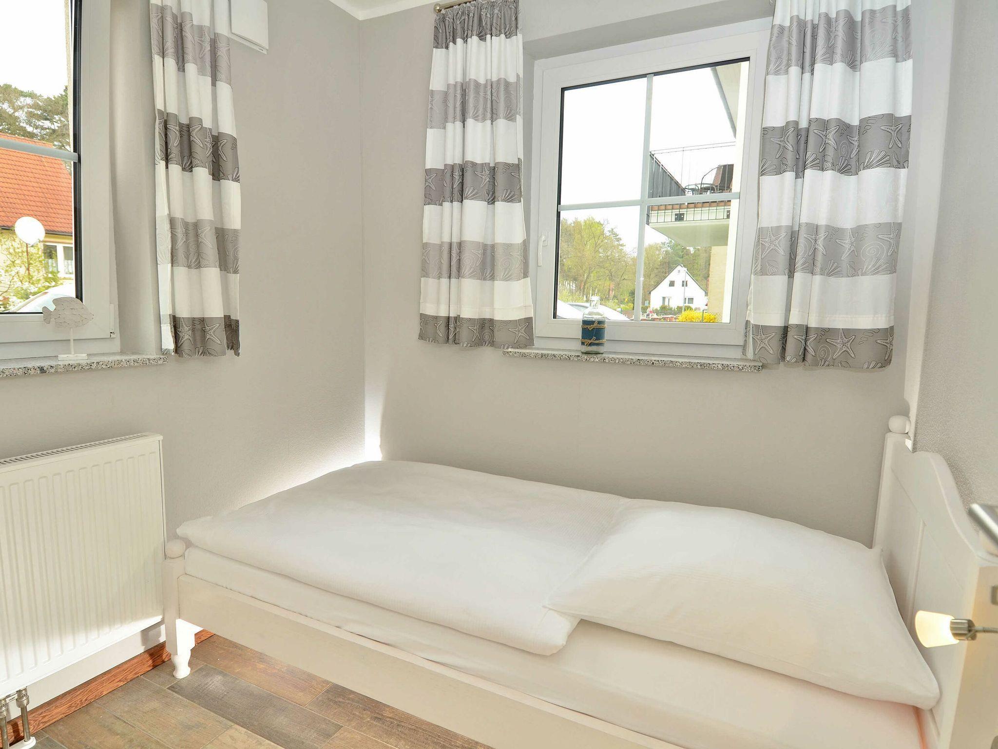 Eines der vier Schlafzimmer befindet sich im Erdgeschoss und ist mit einem Einzelbett ausgestattet, welches auch für Gäste mit Handicap (z. B. Rollstuhlfahrer) geeignet ist. Ein modernes Duschbad mit eigener Sauna und Fußbodenheizung befindet sich ebenfalls im Erdgeschoss.