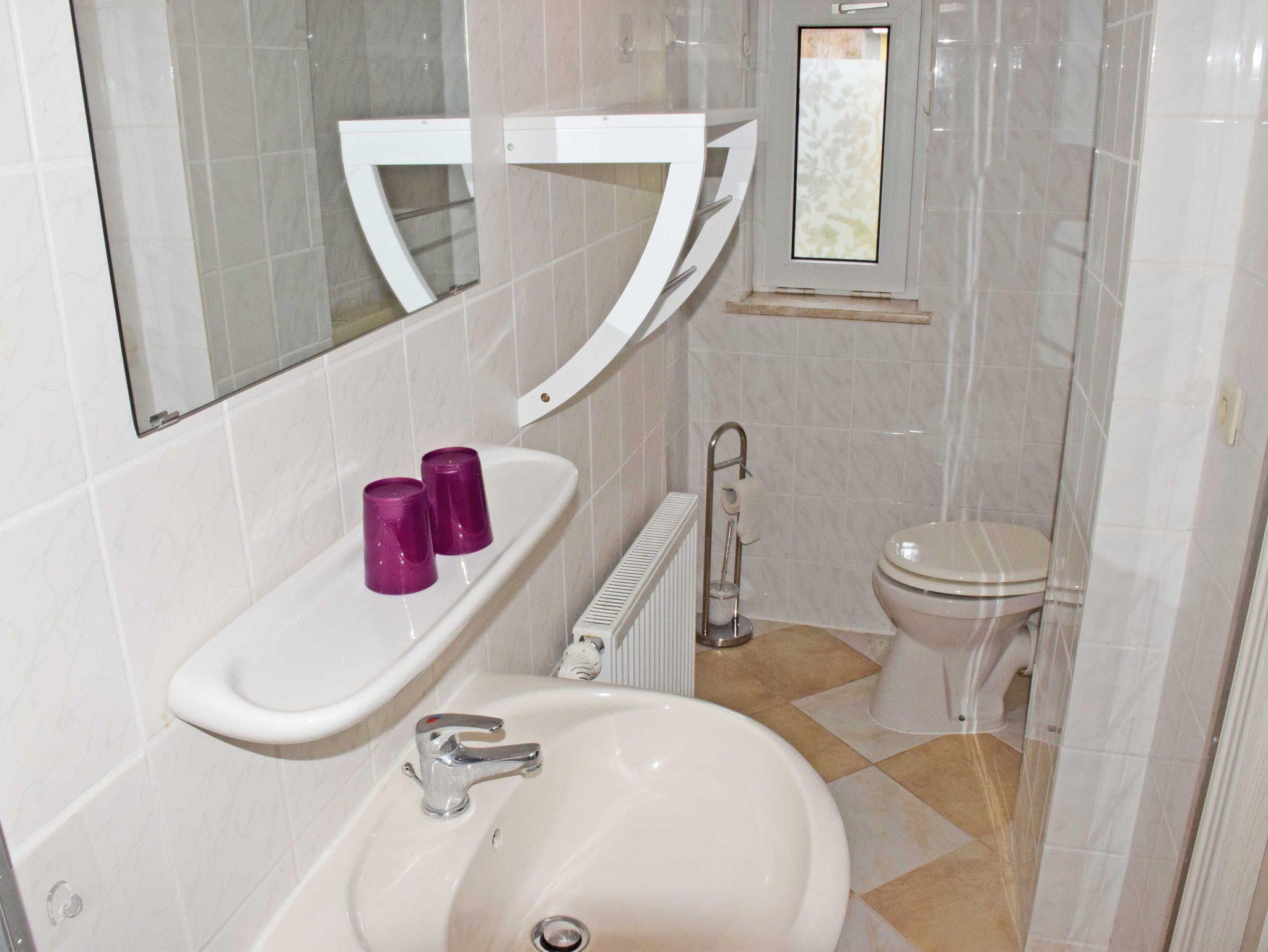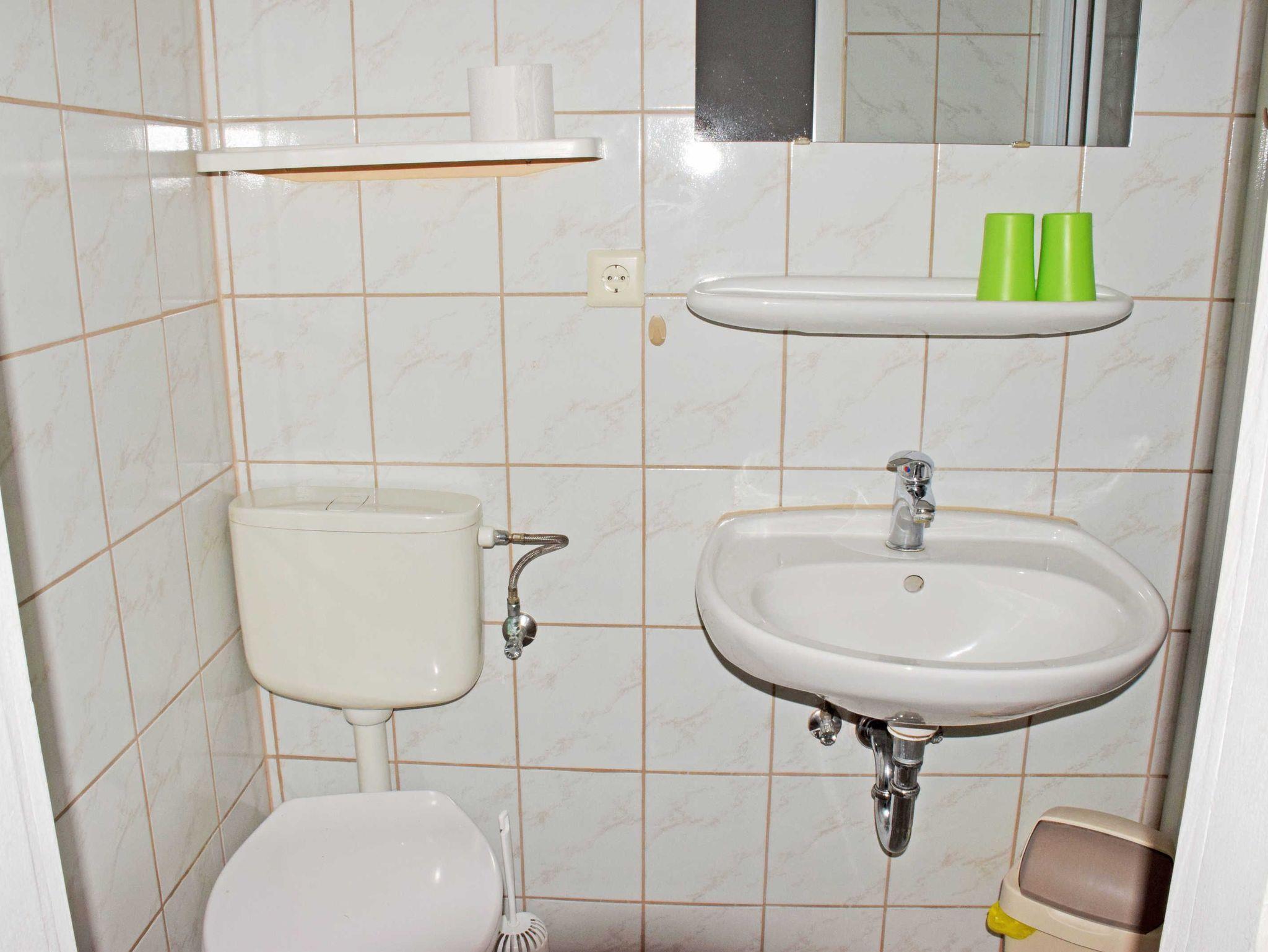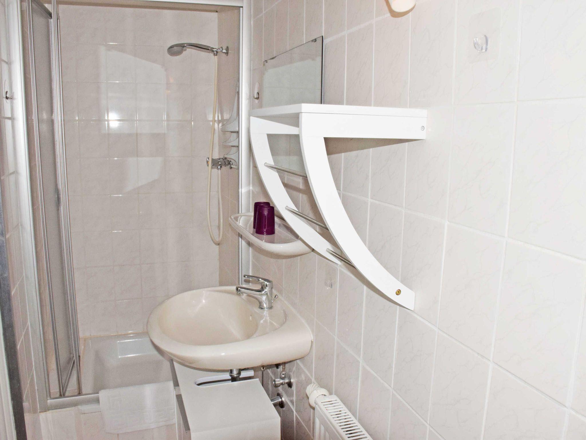 Gegen Aufpreis können Wäschepakete dazu gebucht werden. Das moderne Bad ist mit Dusche, WC und Waschtisch ausgestattet und verfügt über Tageslicht (nur Zimmer 01).
